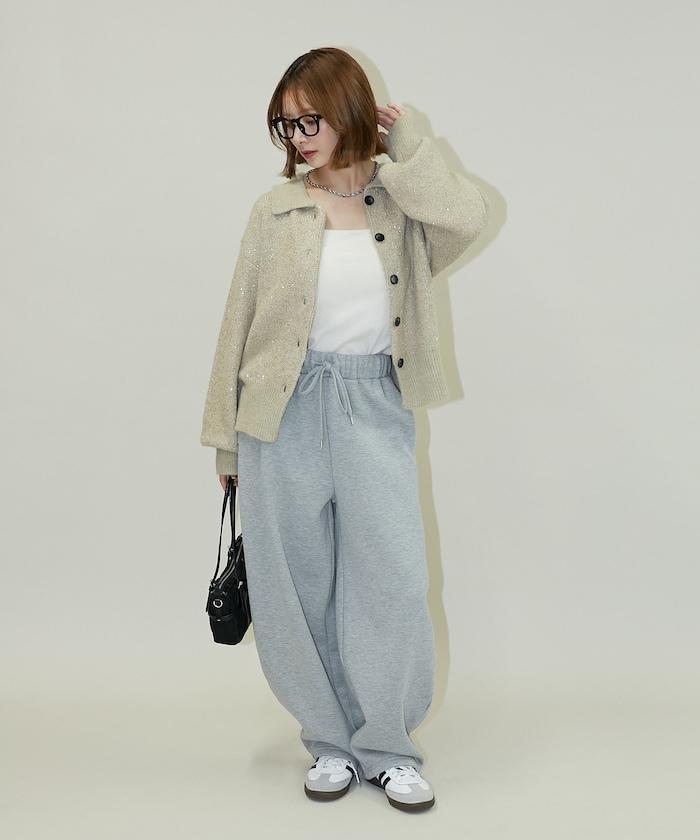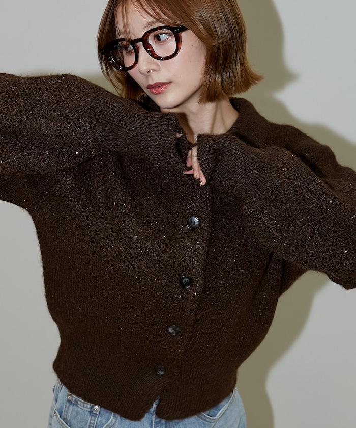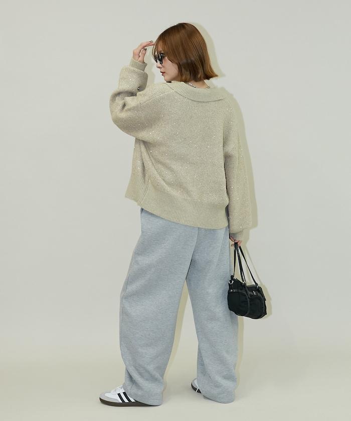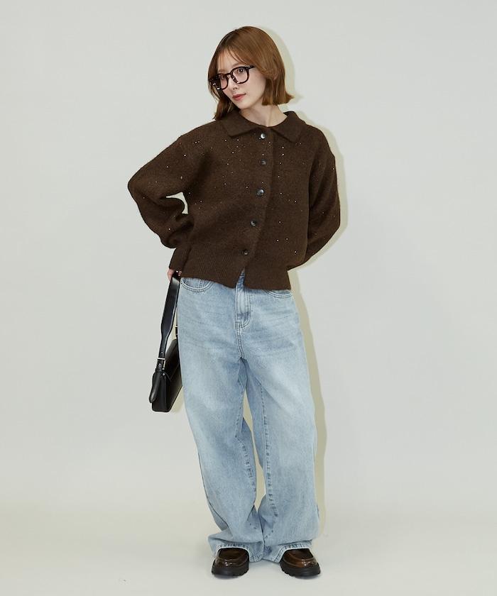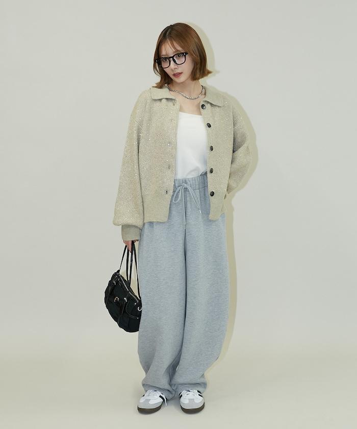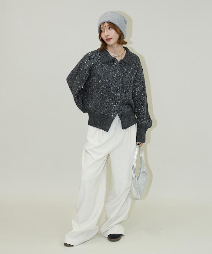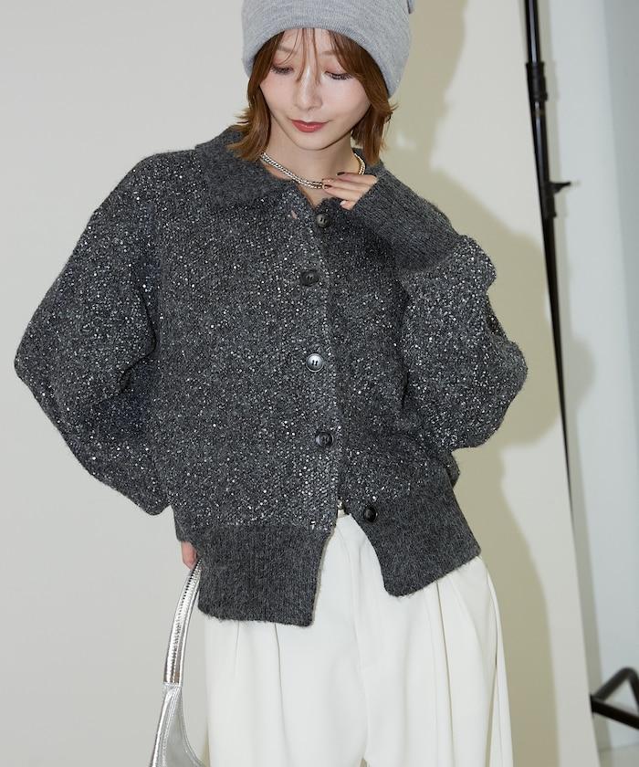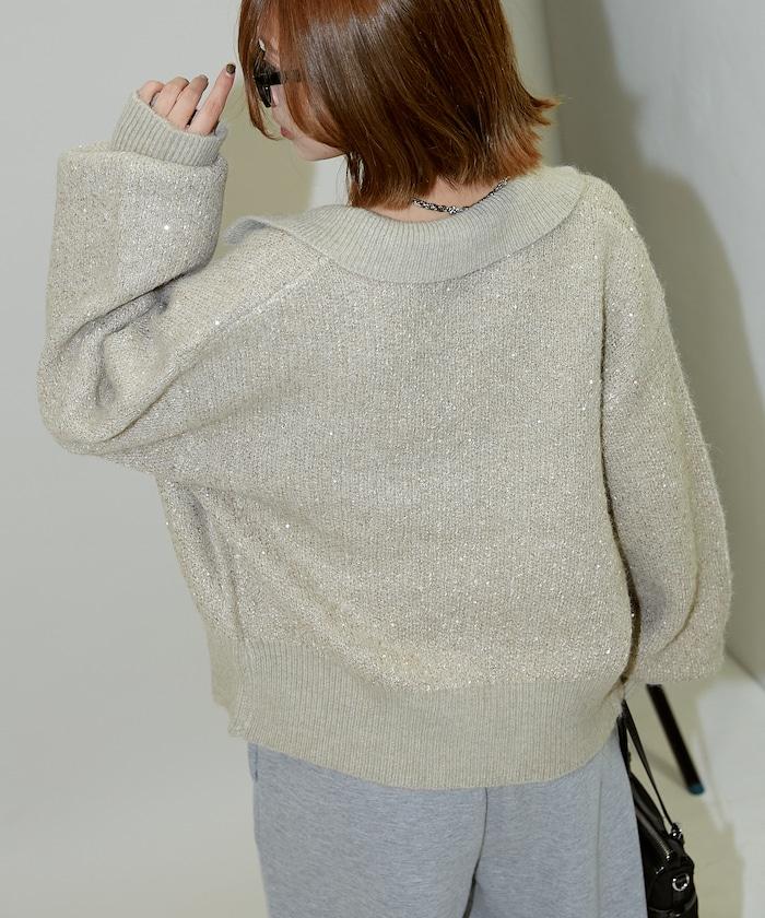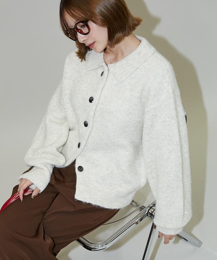 鑲嵌亮片的 polo 開衫閃耀著優雅的光芒。