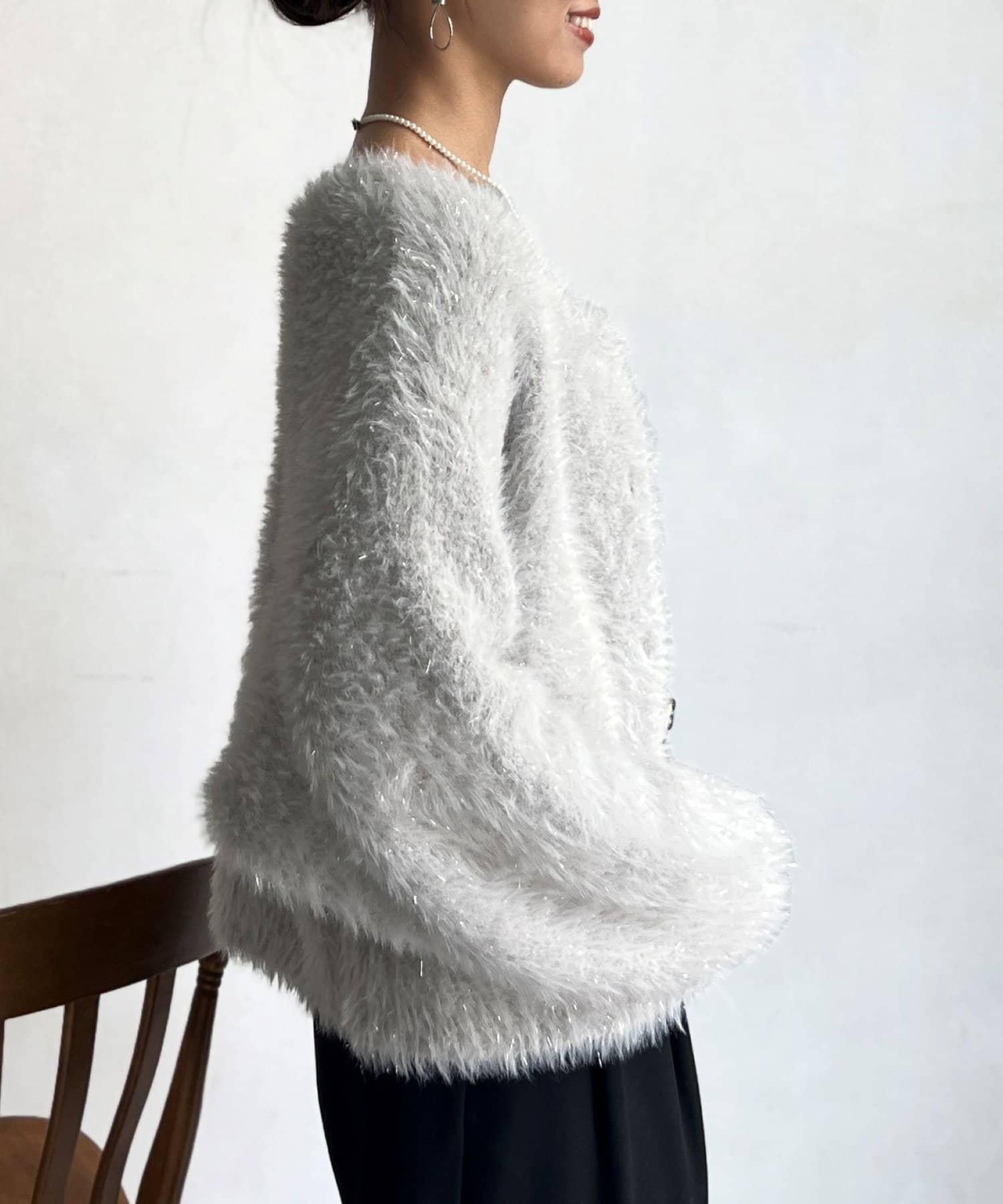 這款蓬鬆的羽毛開衫是本季的焦點。