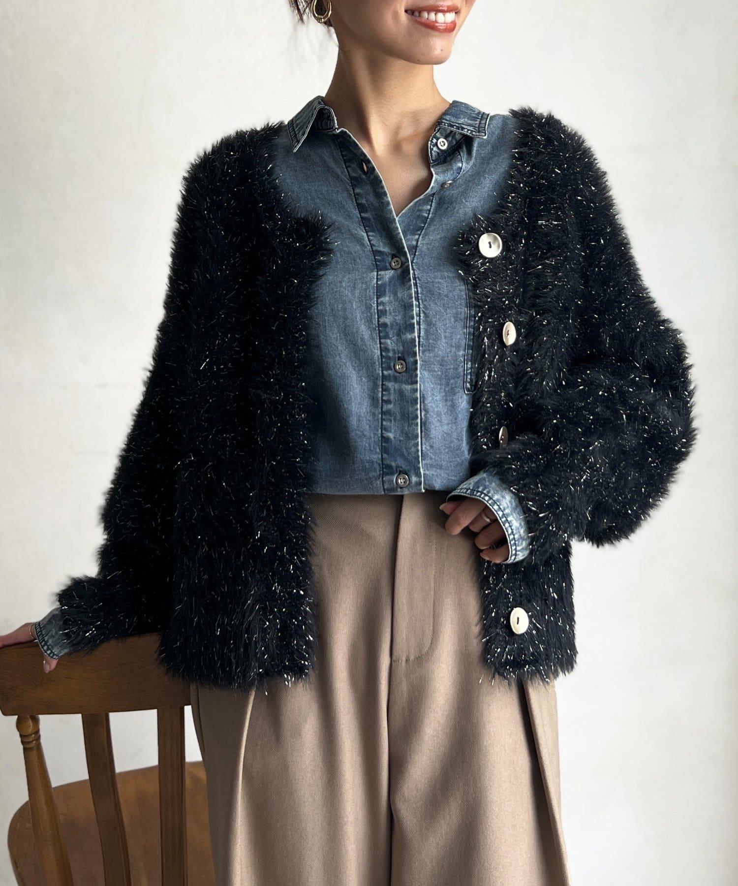預約商品亮片羽毛兩用開衫