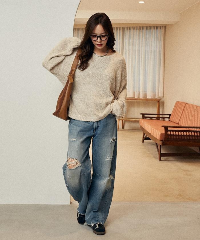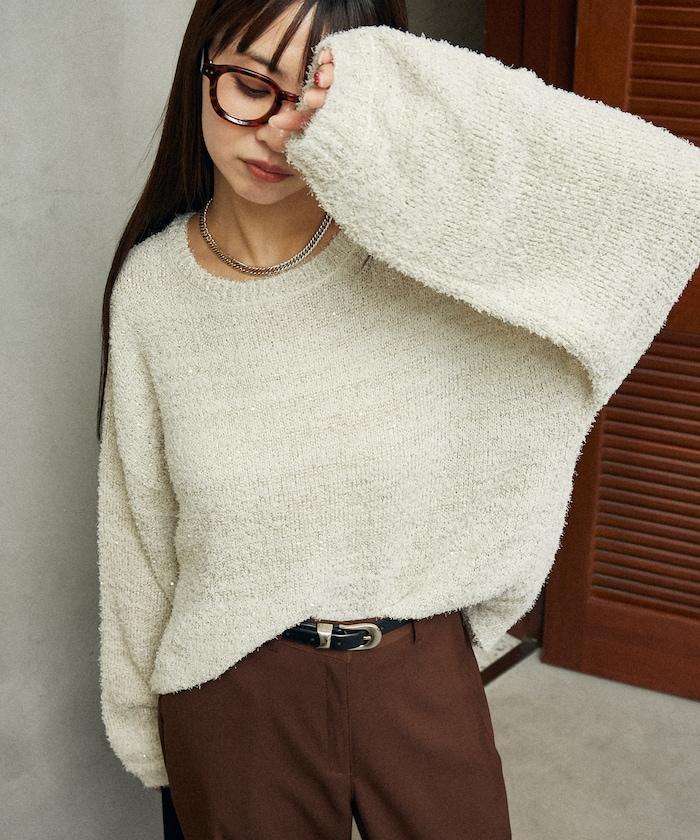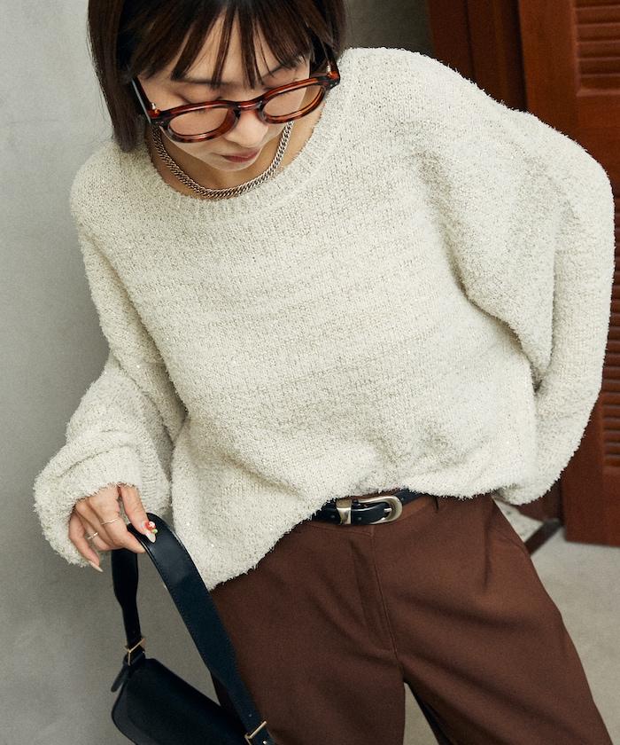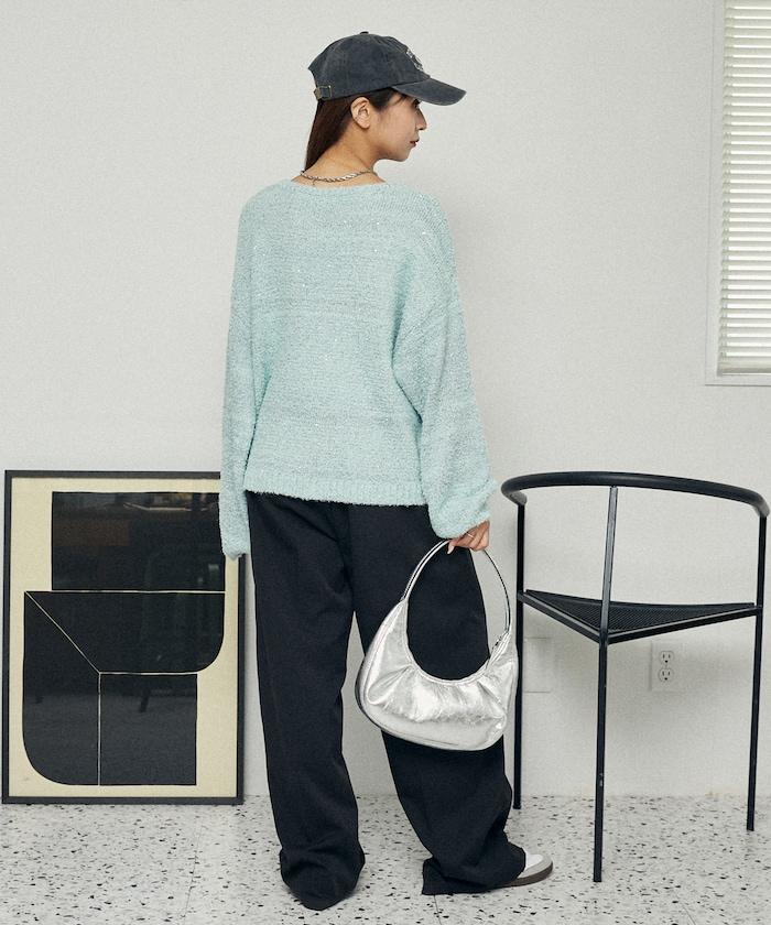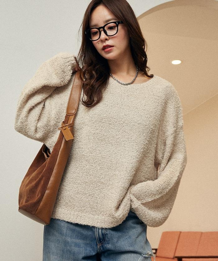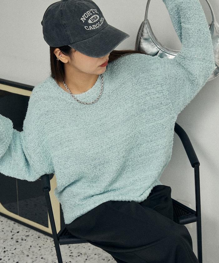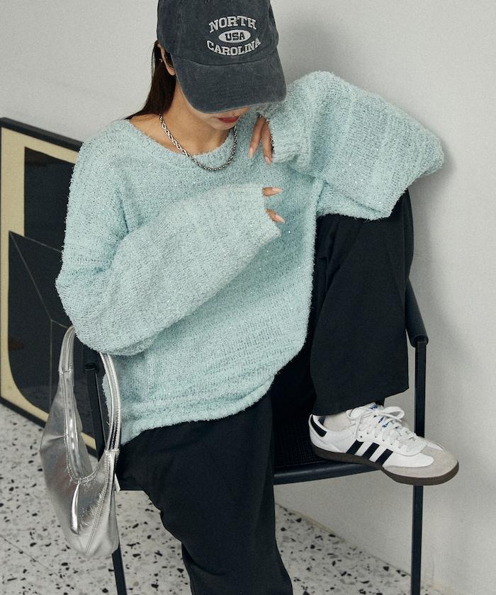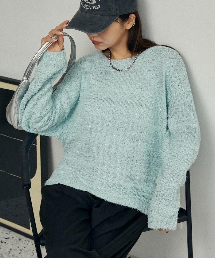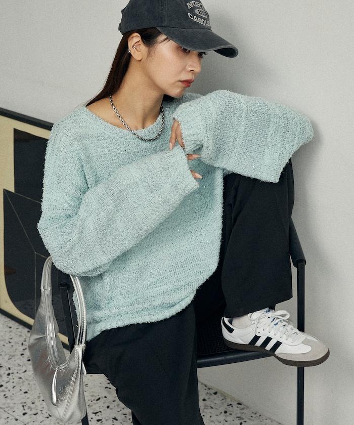 亮片羽毛寬鬆針織衫