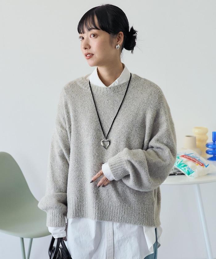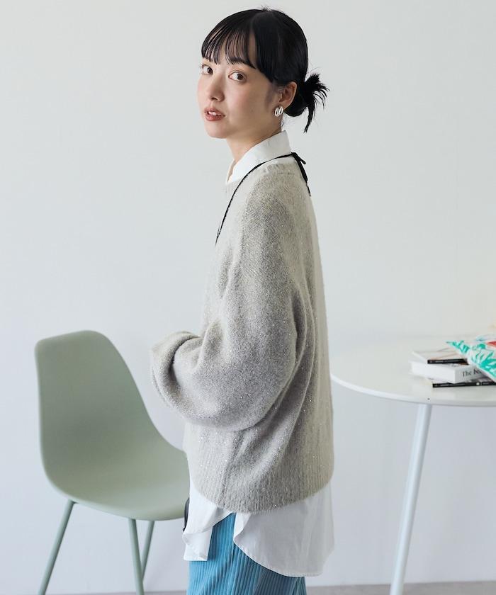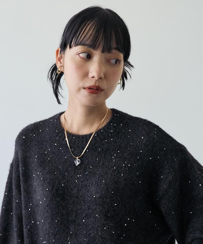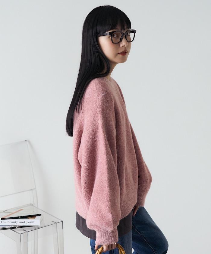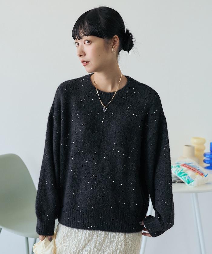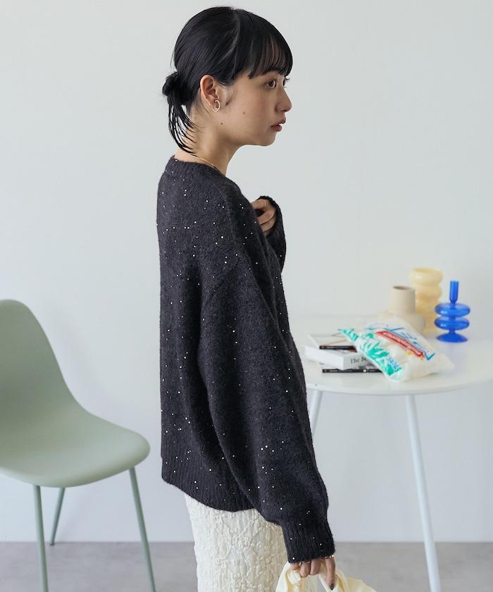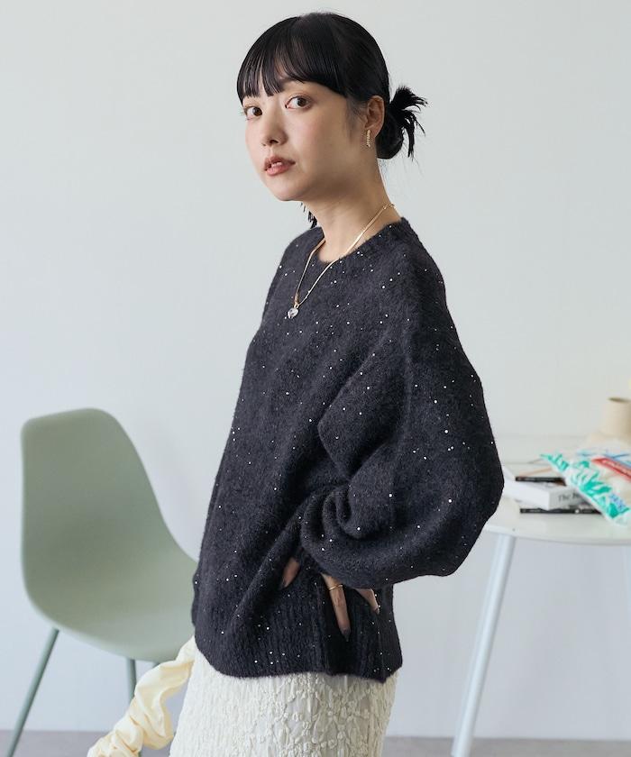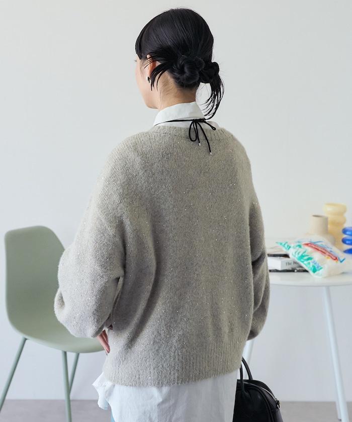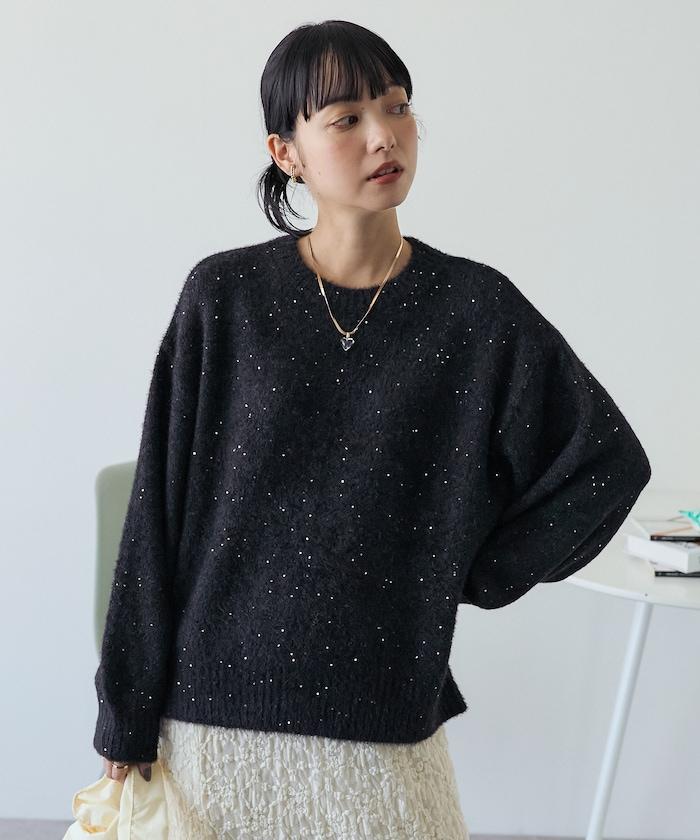 一款女性化的套頭針織衫,閃爍著微妙的亮片和薄片。