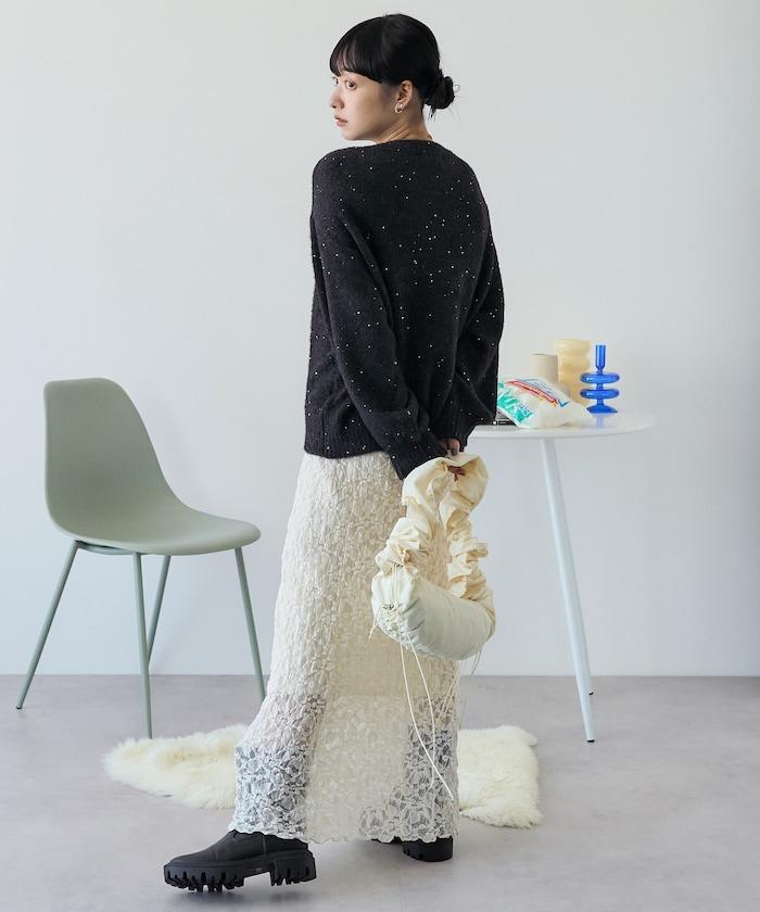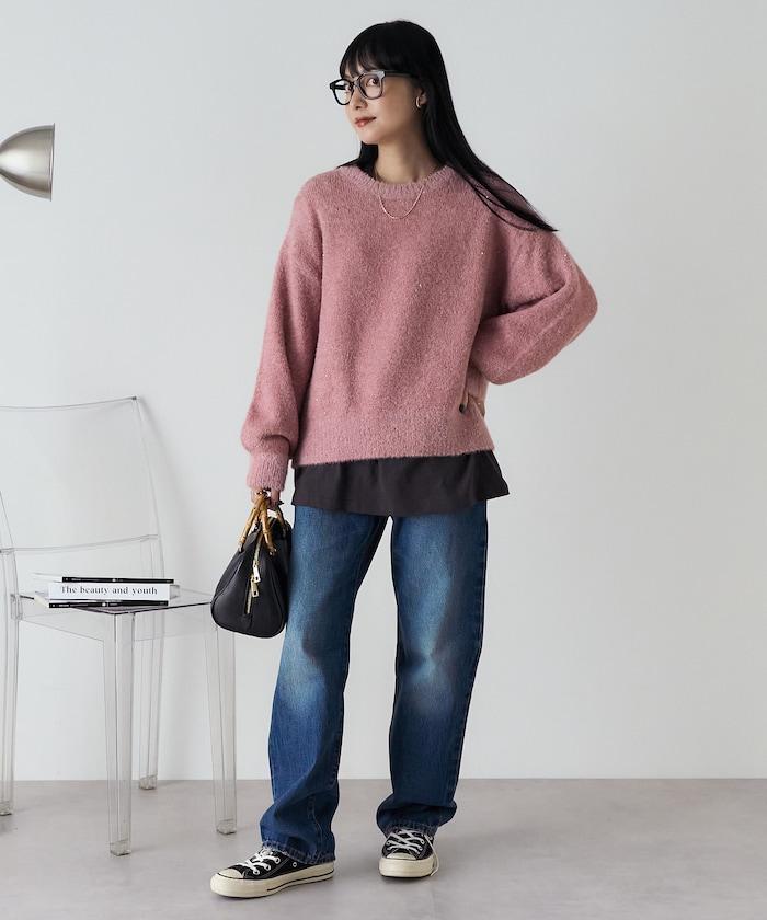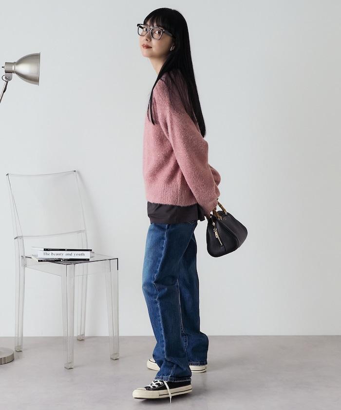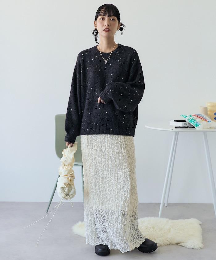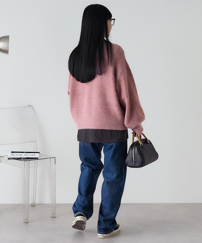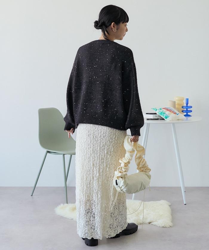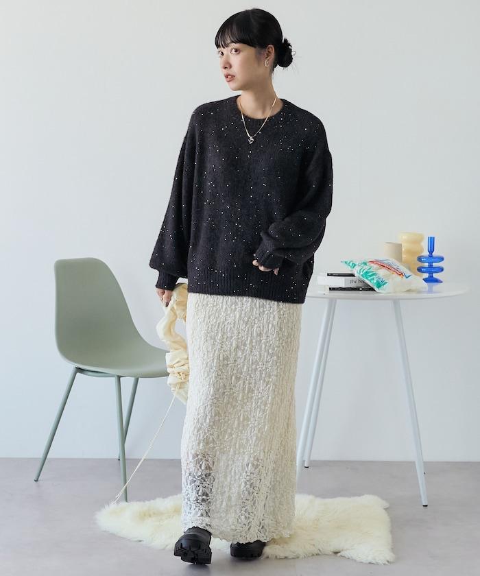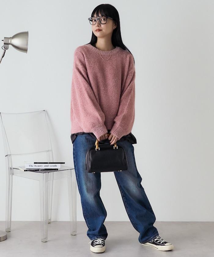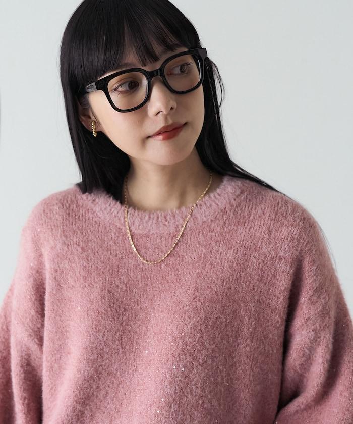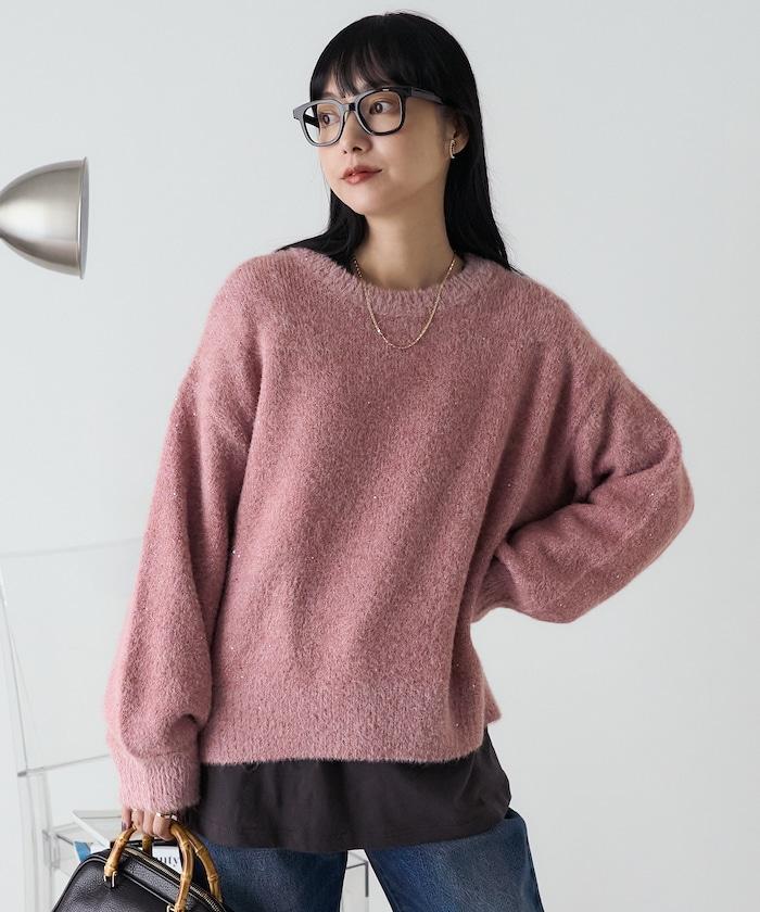 一款女性化的套頭針織衫,閃爍著微妙的亮片和薄片。
