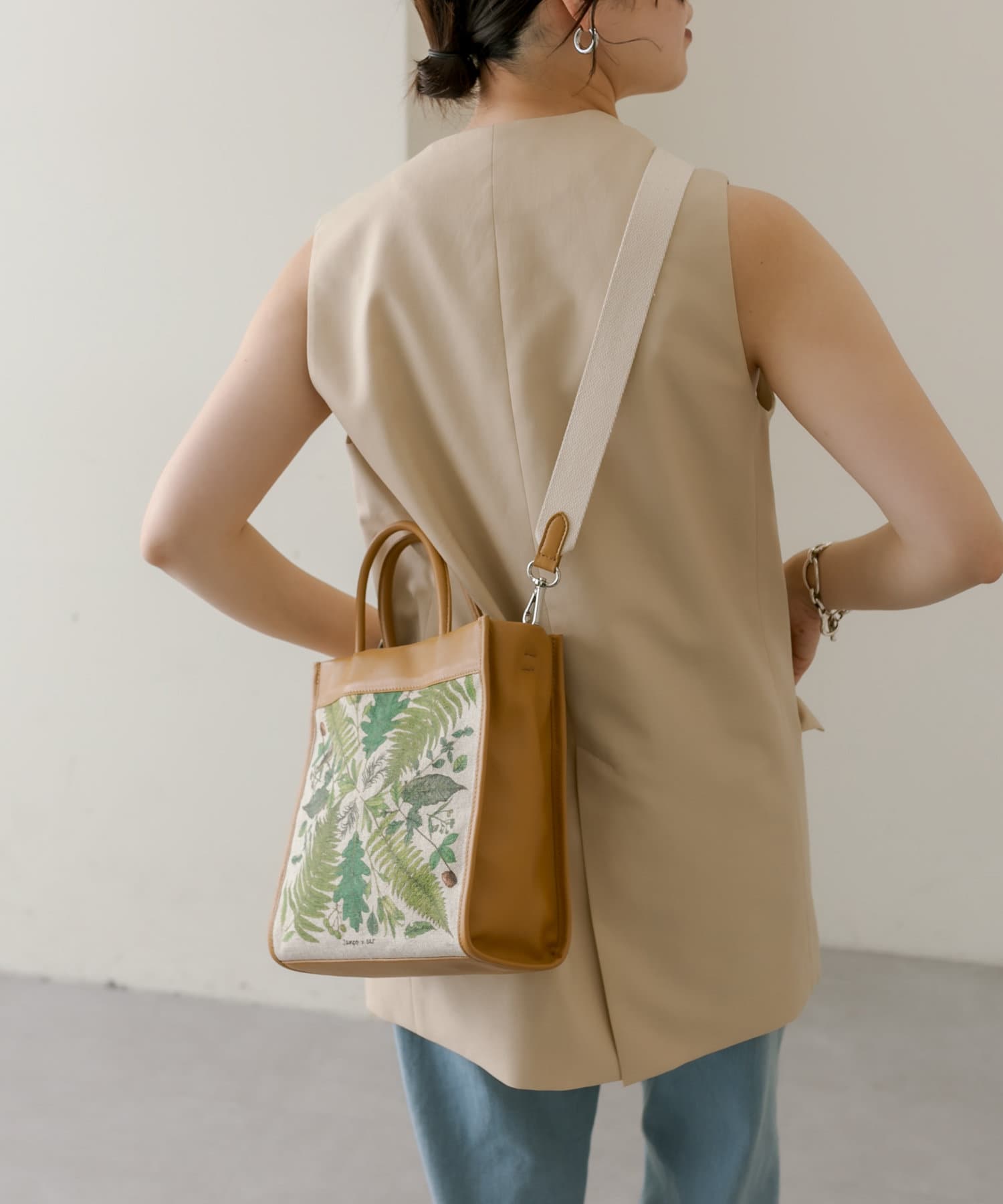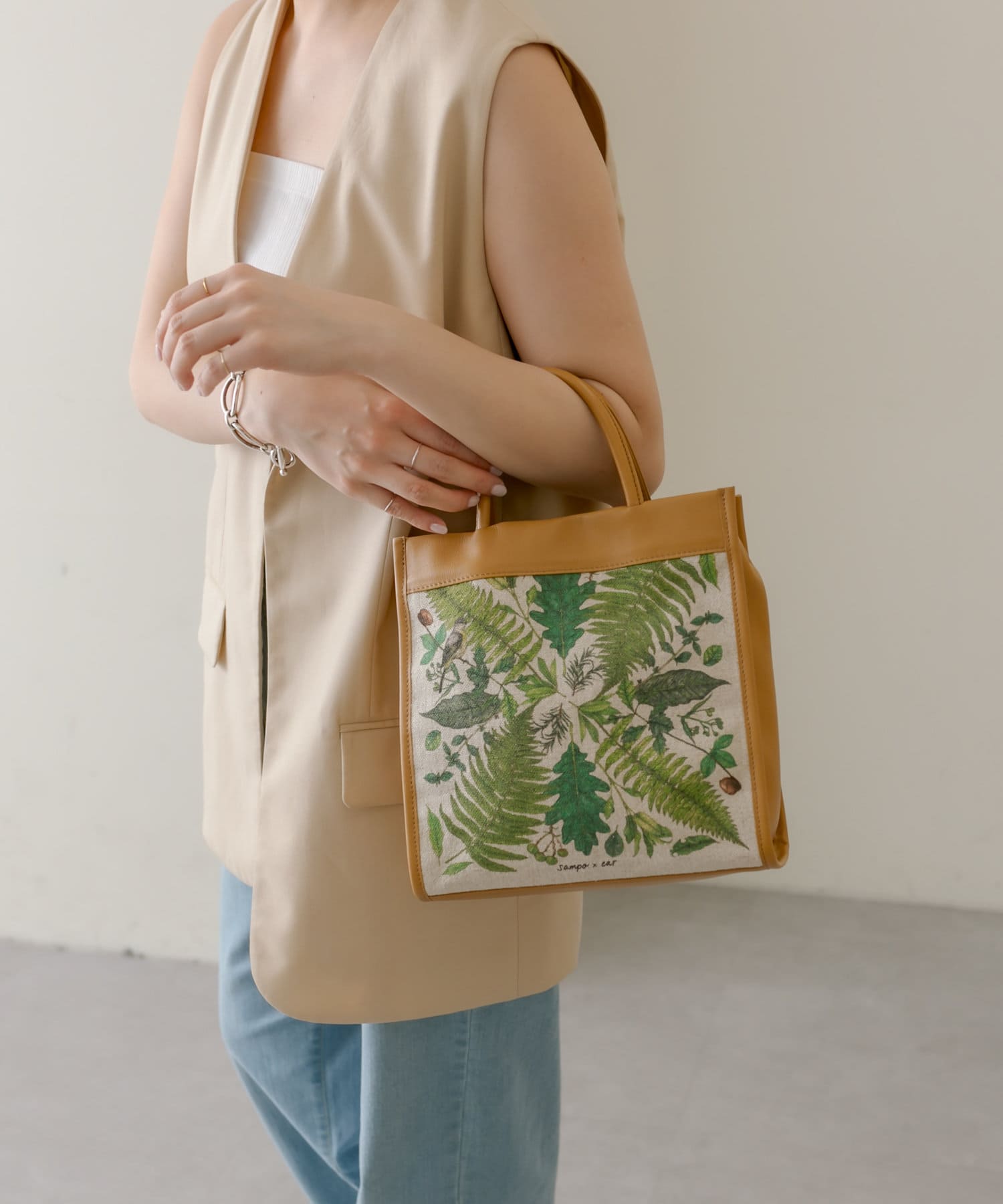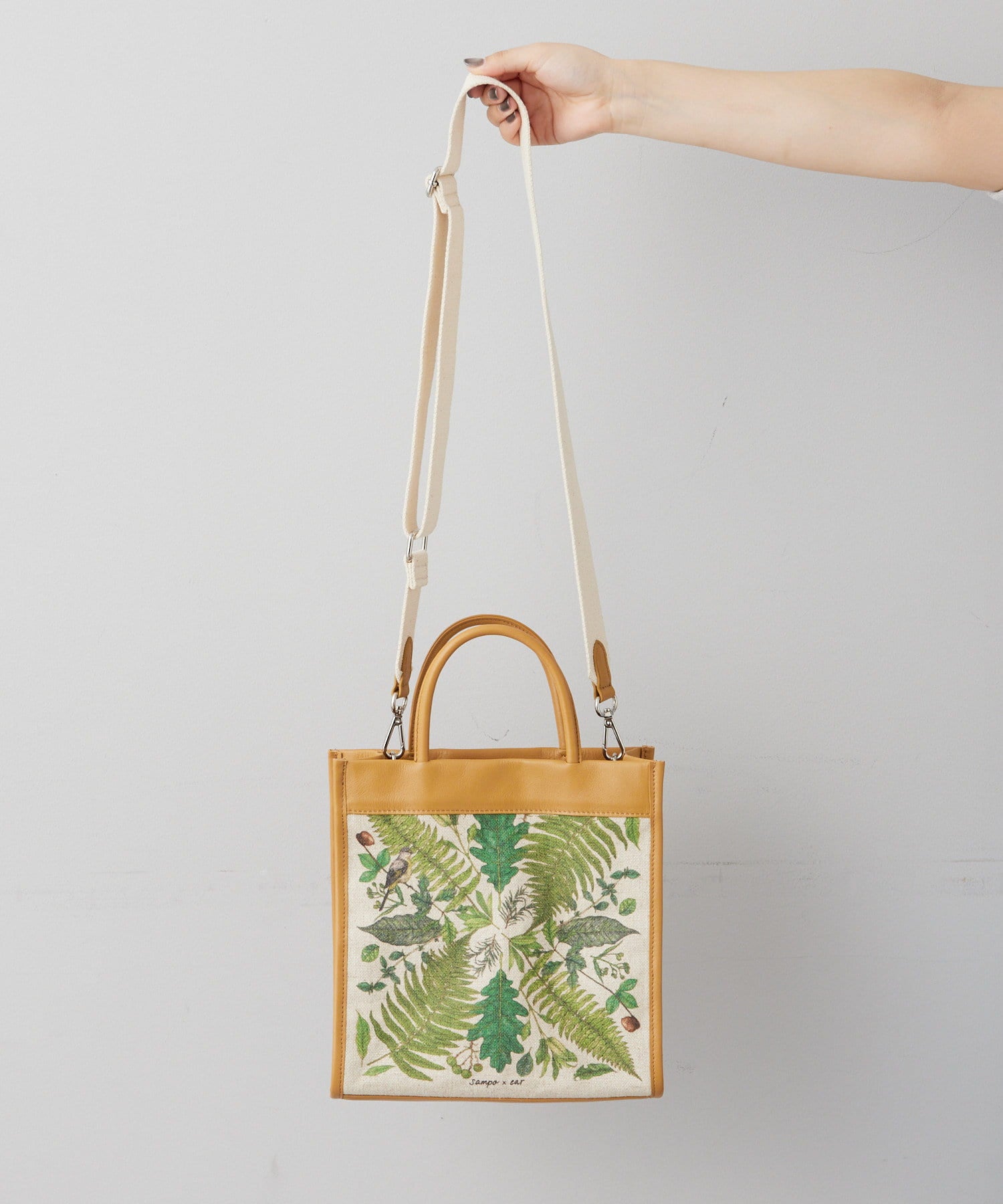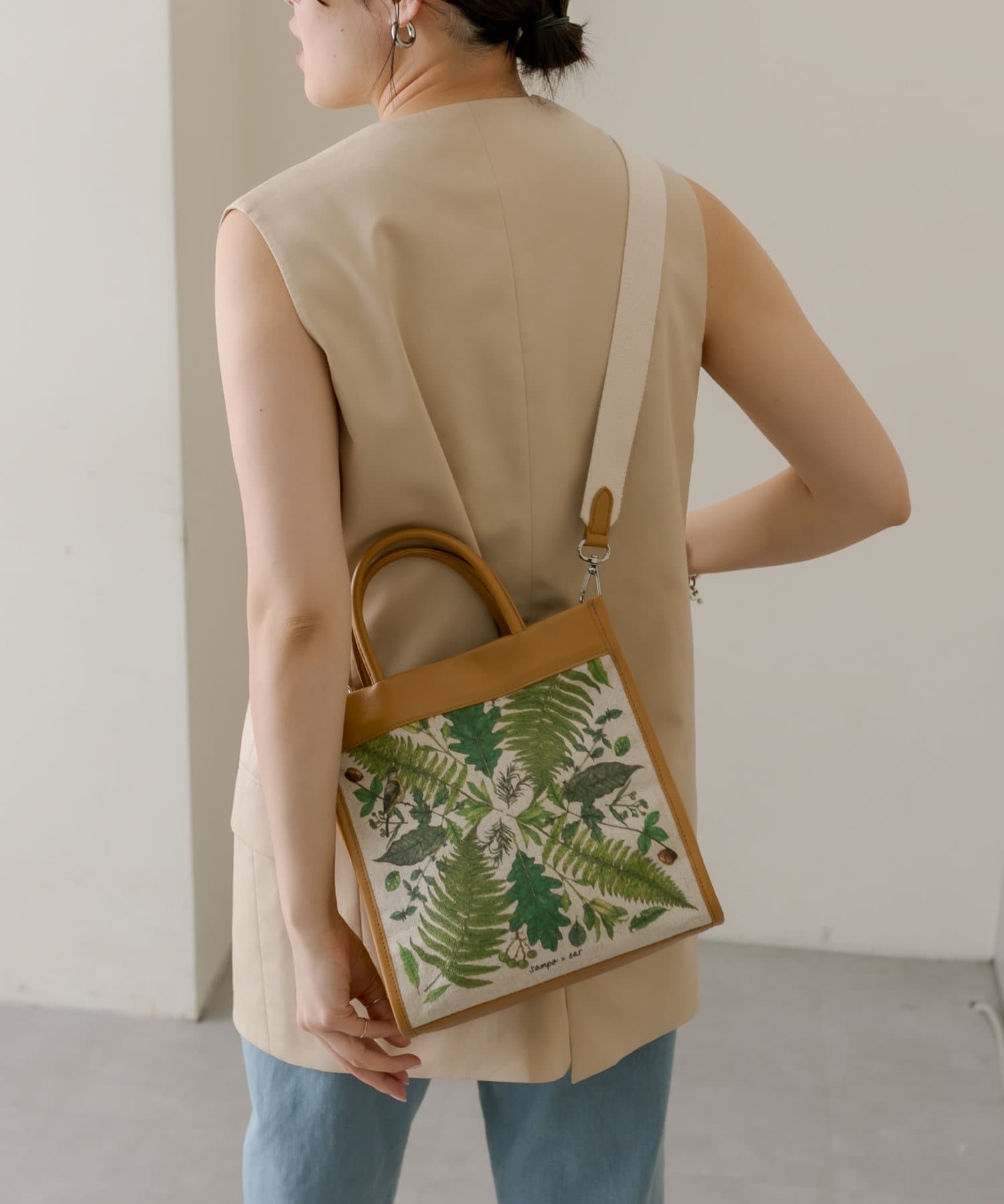 《人氣合作第二彈!/真皮》sampo×ear葉子圖案帶肩帶手提包