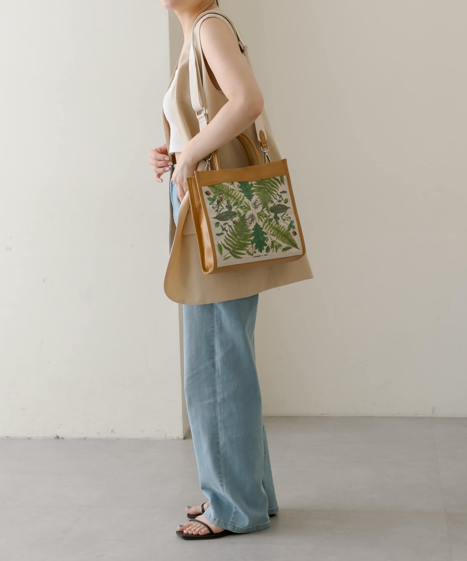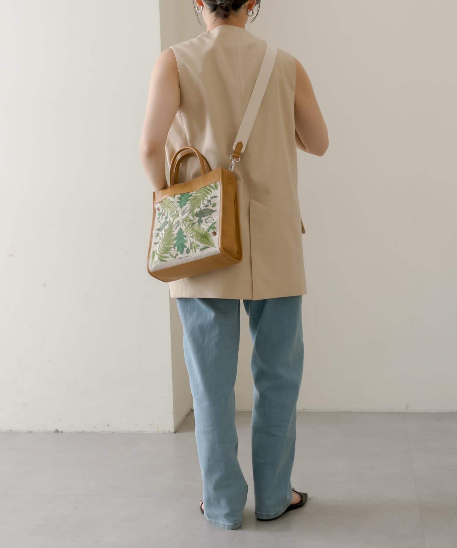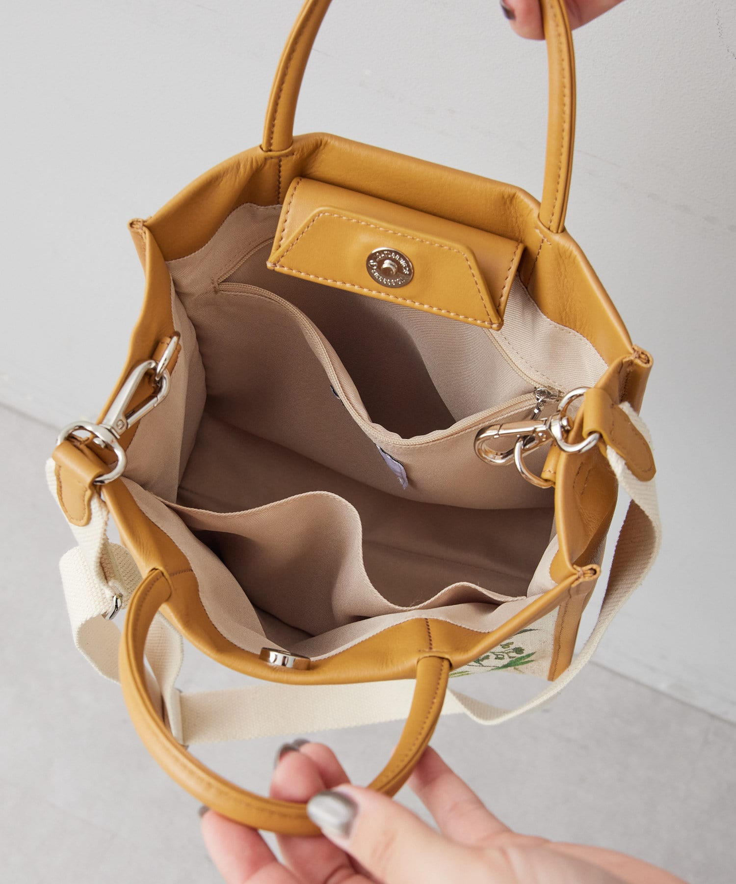 《人氣合作第二彈!/真皮》sampo×ear葉子圖案帶肩帶手提包