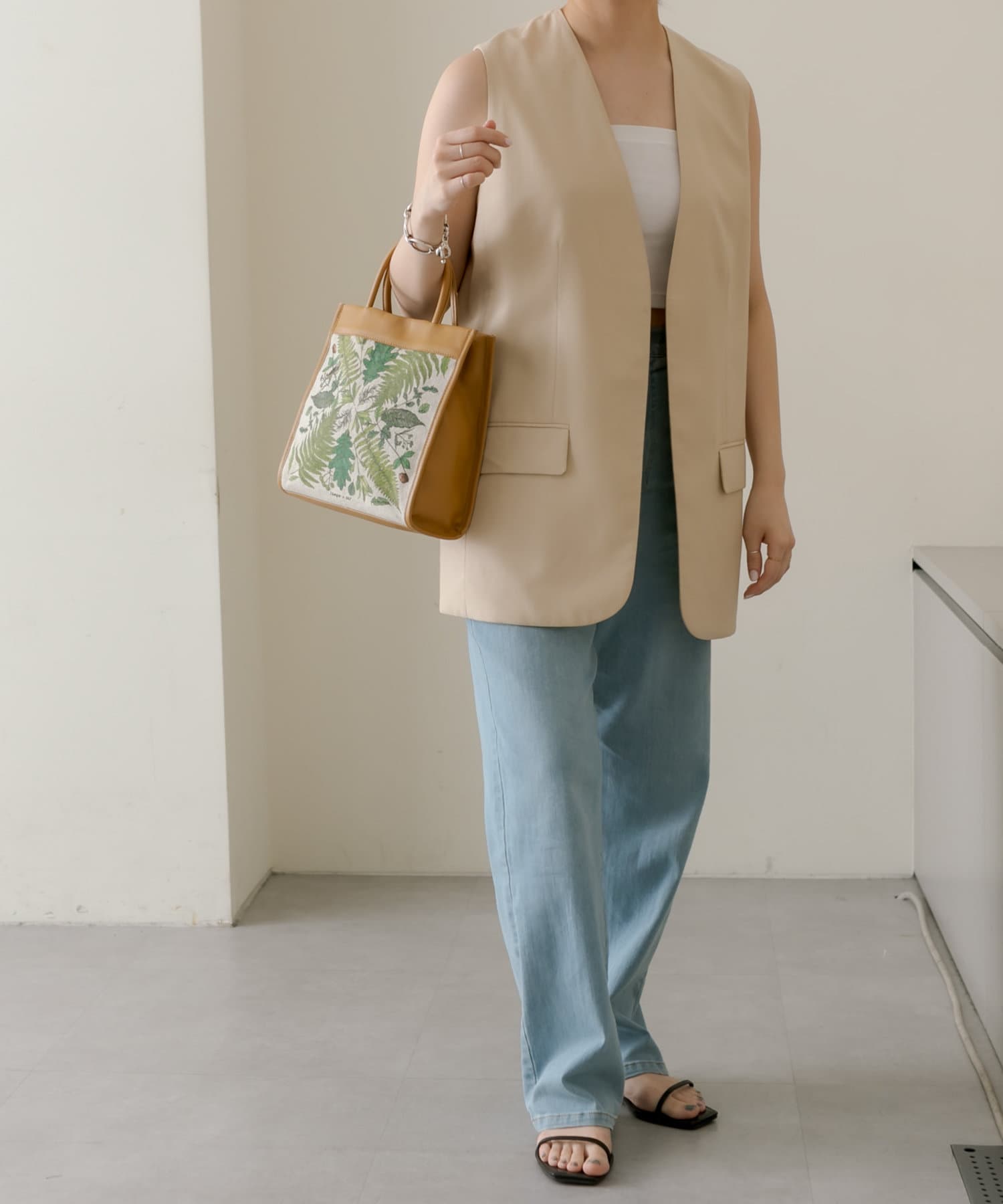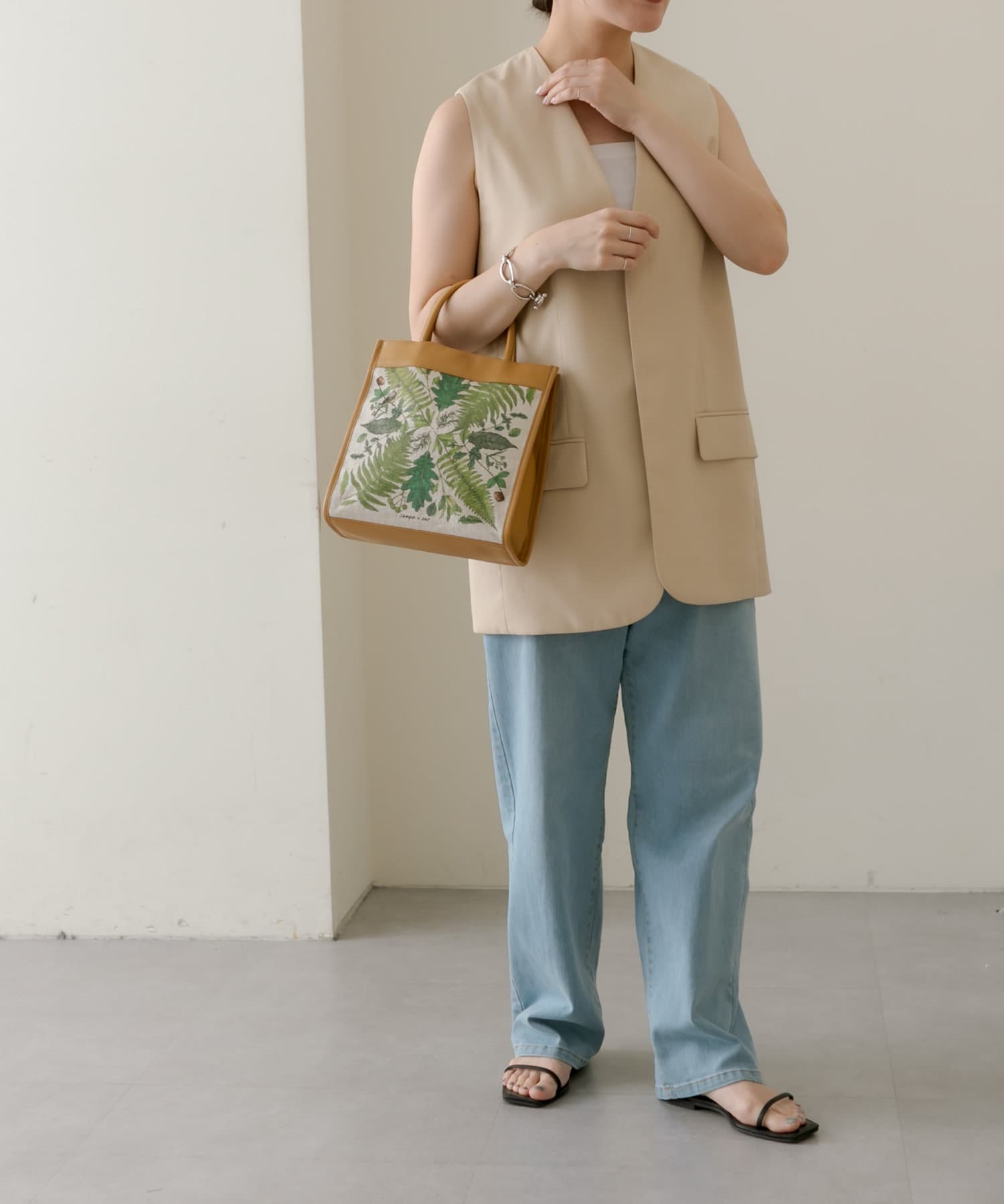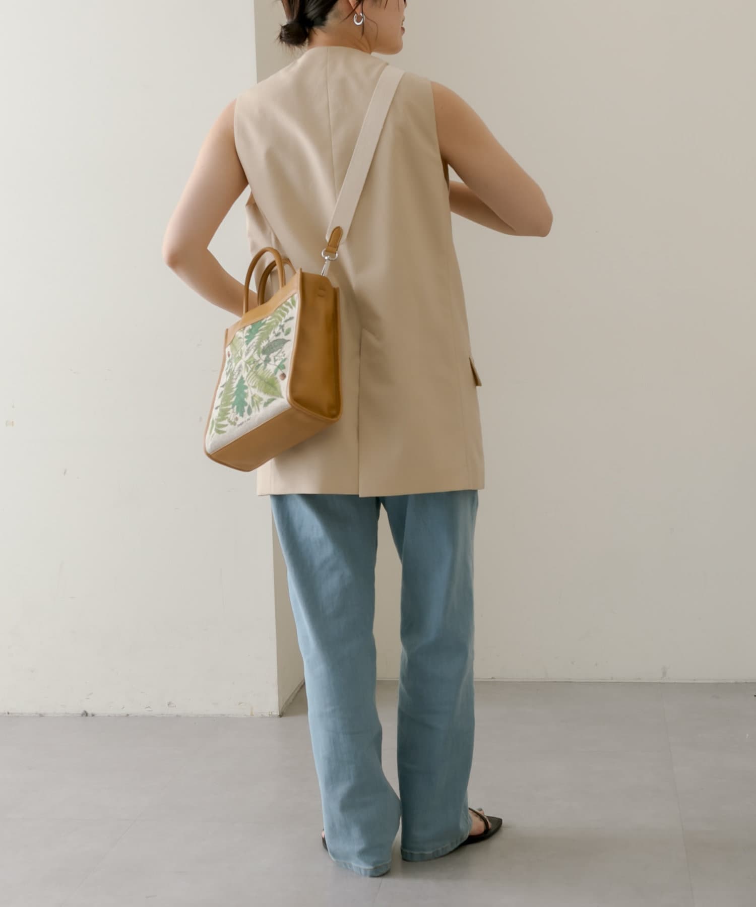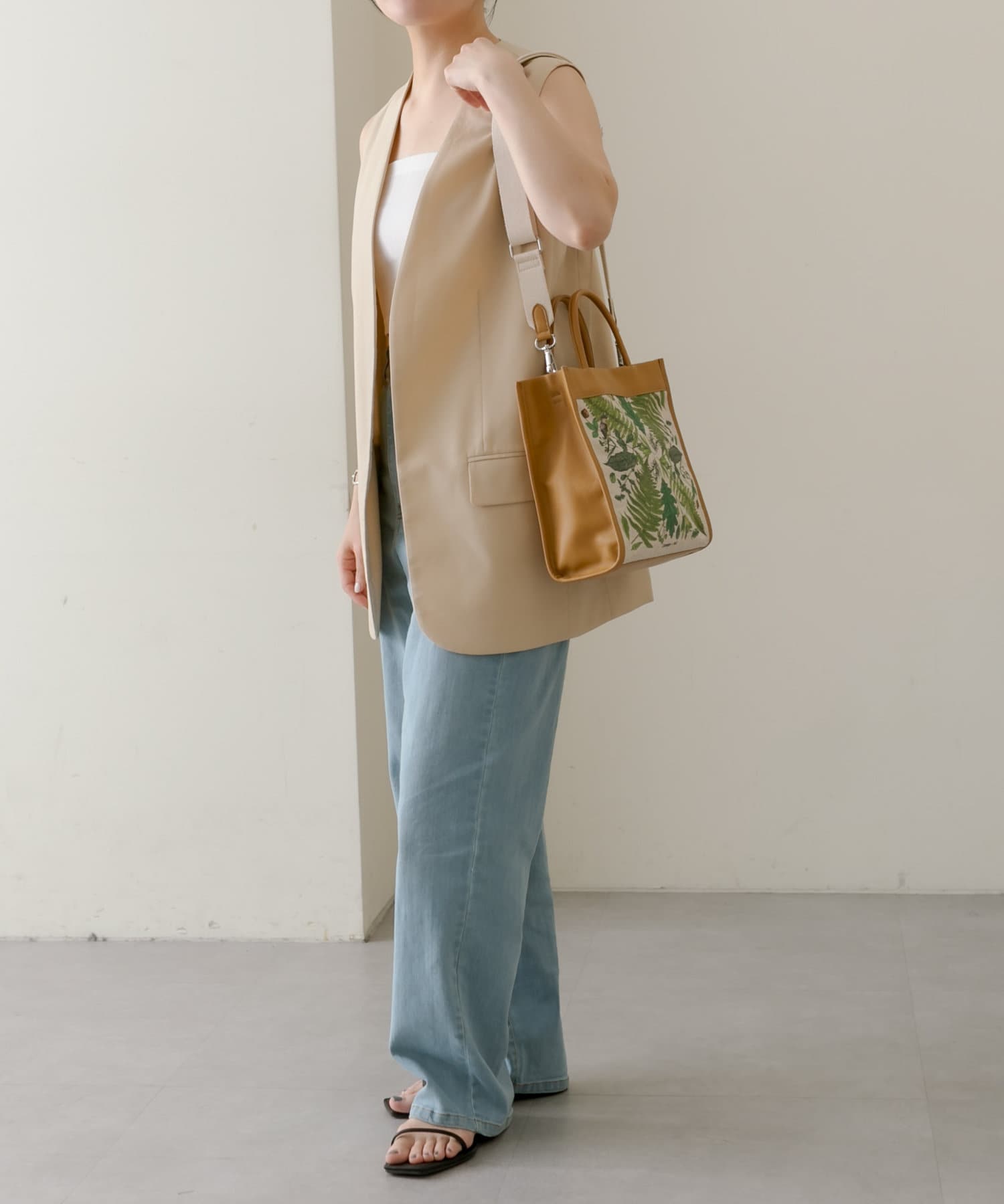 《人氣合作第二彈!/真皮》sampo×ear葉子圖案帶肩帶手提包