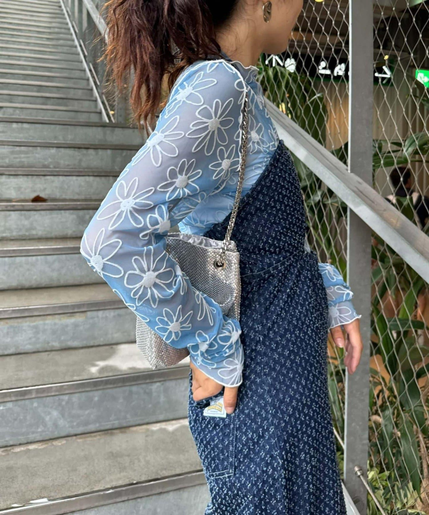 整齊的寬度使其非常適合搭配透視上衣和龜甲針織衫。