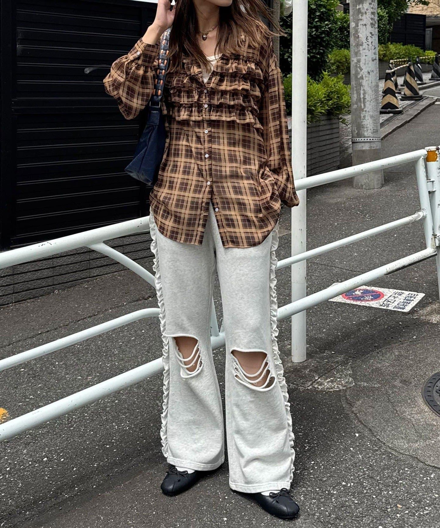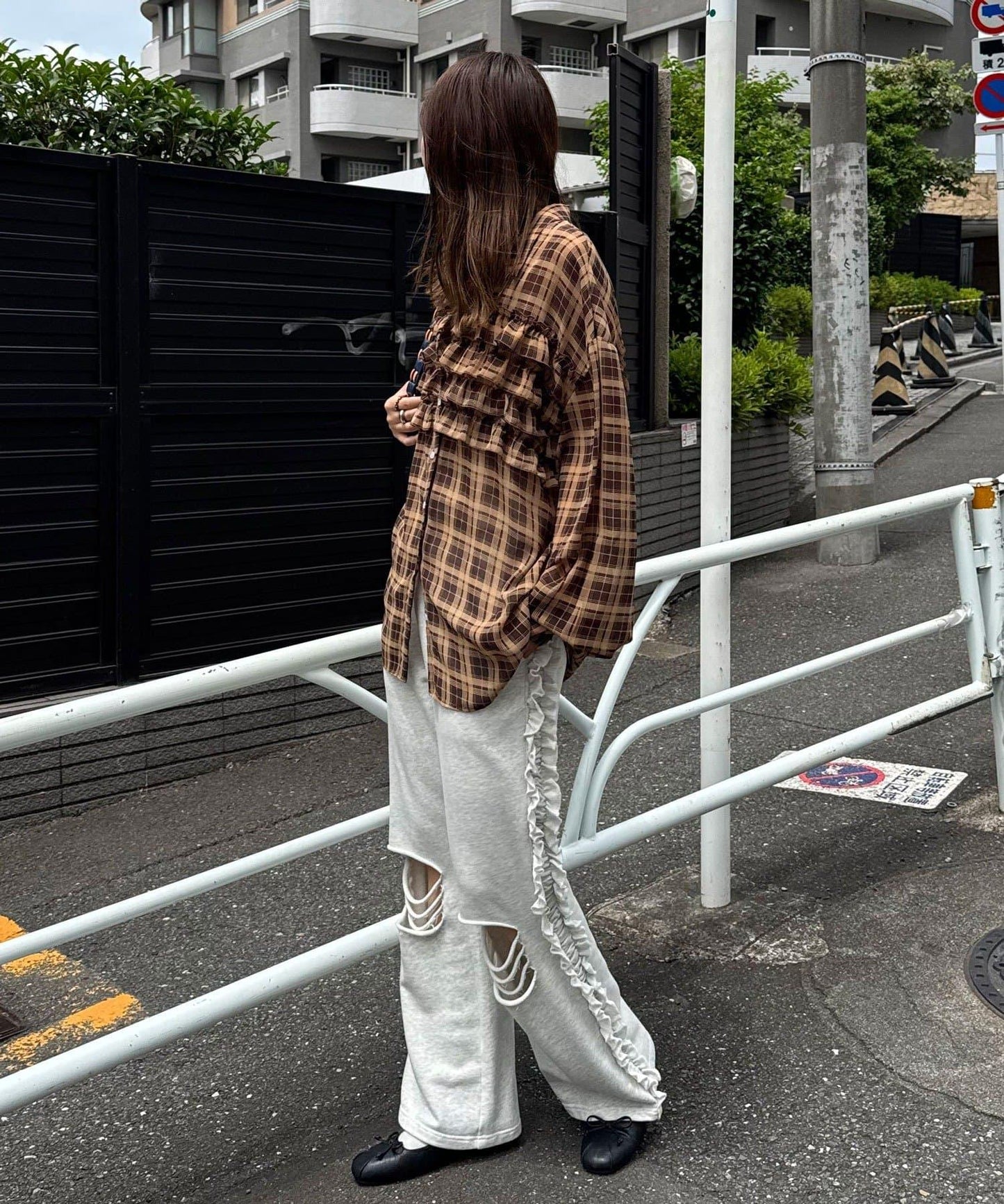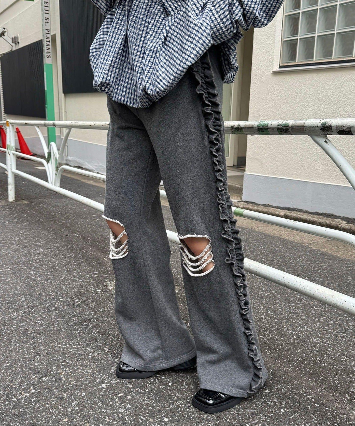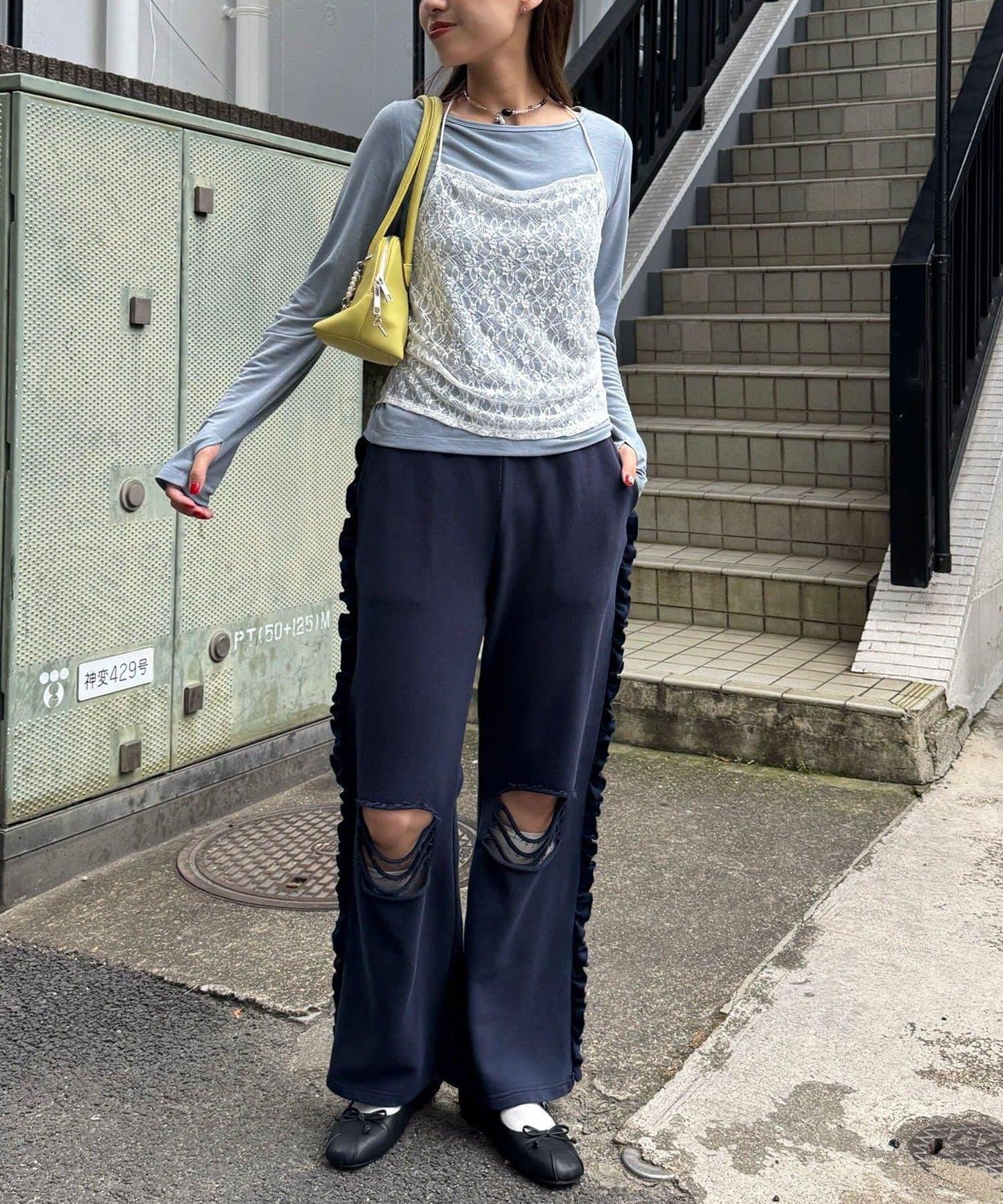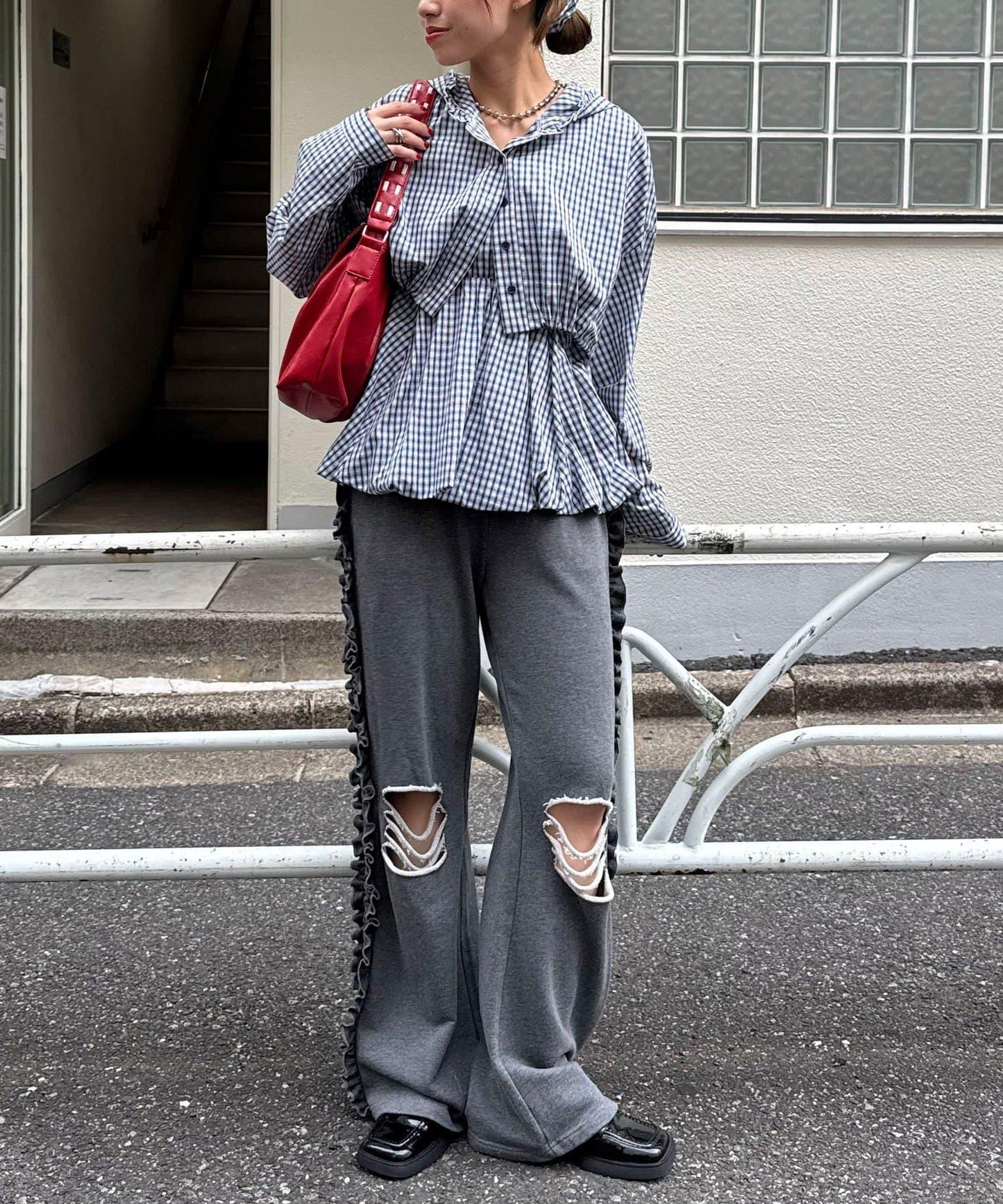 設計運動褲,褶邊帶來甜美感,破損處理帶來寬鬆感。