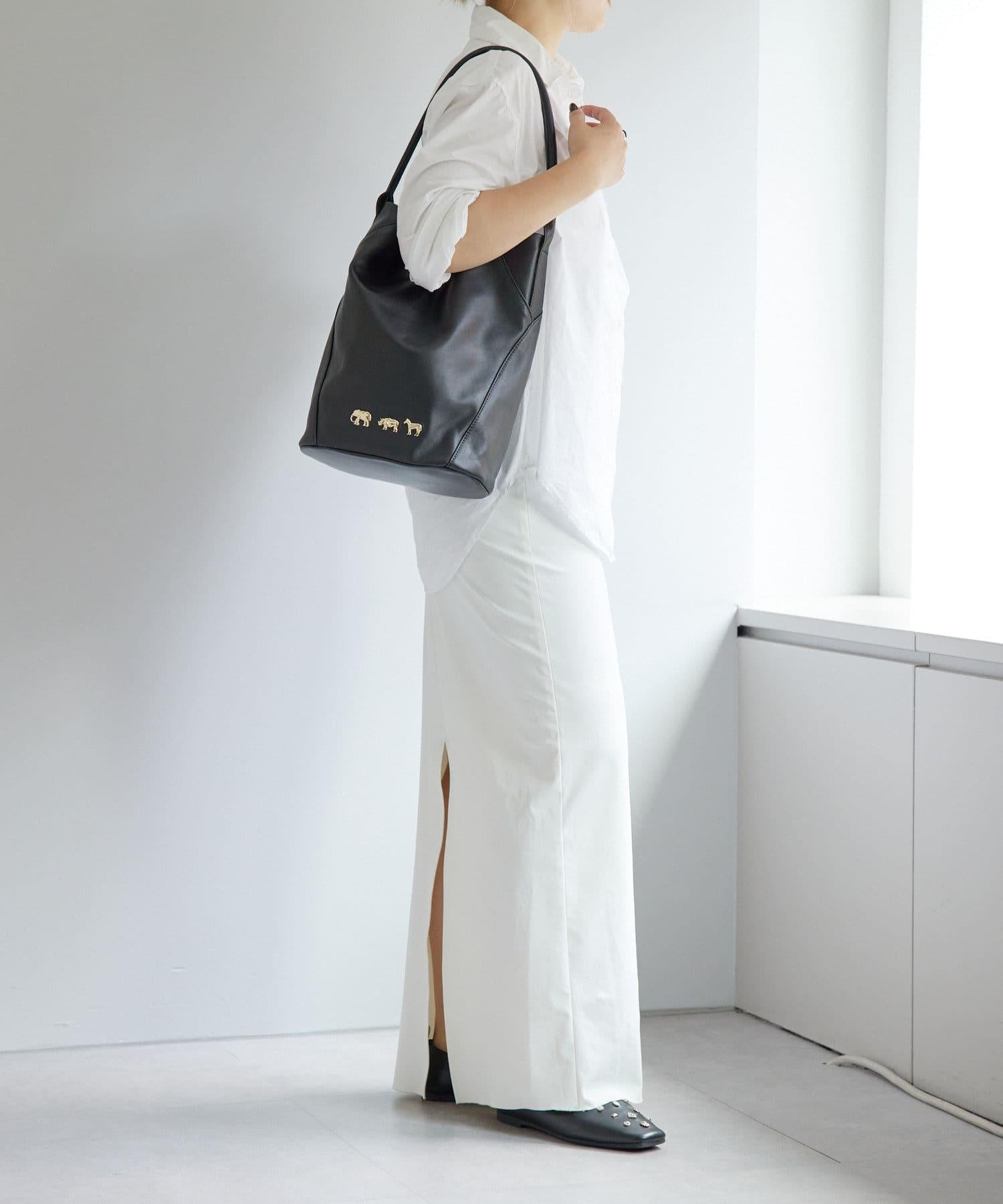 大象、犀牛和斑馬依次排列。 單手柄包飾有金屬部件。