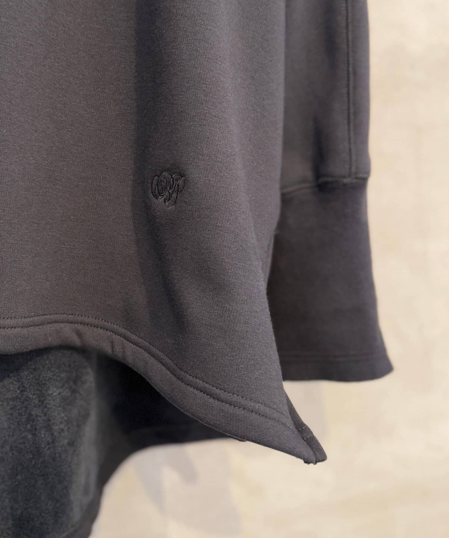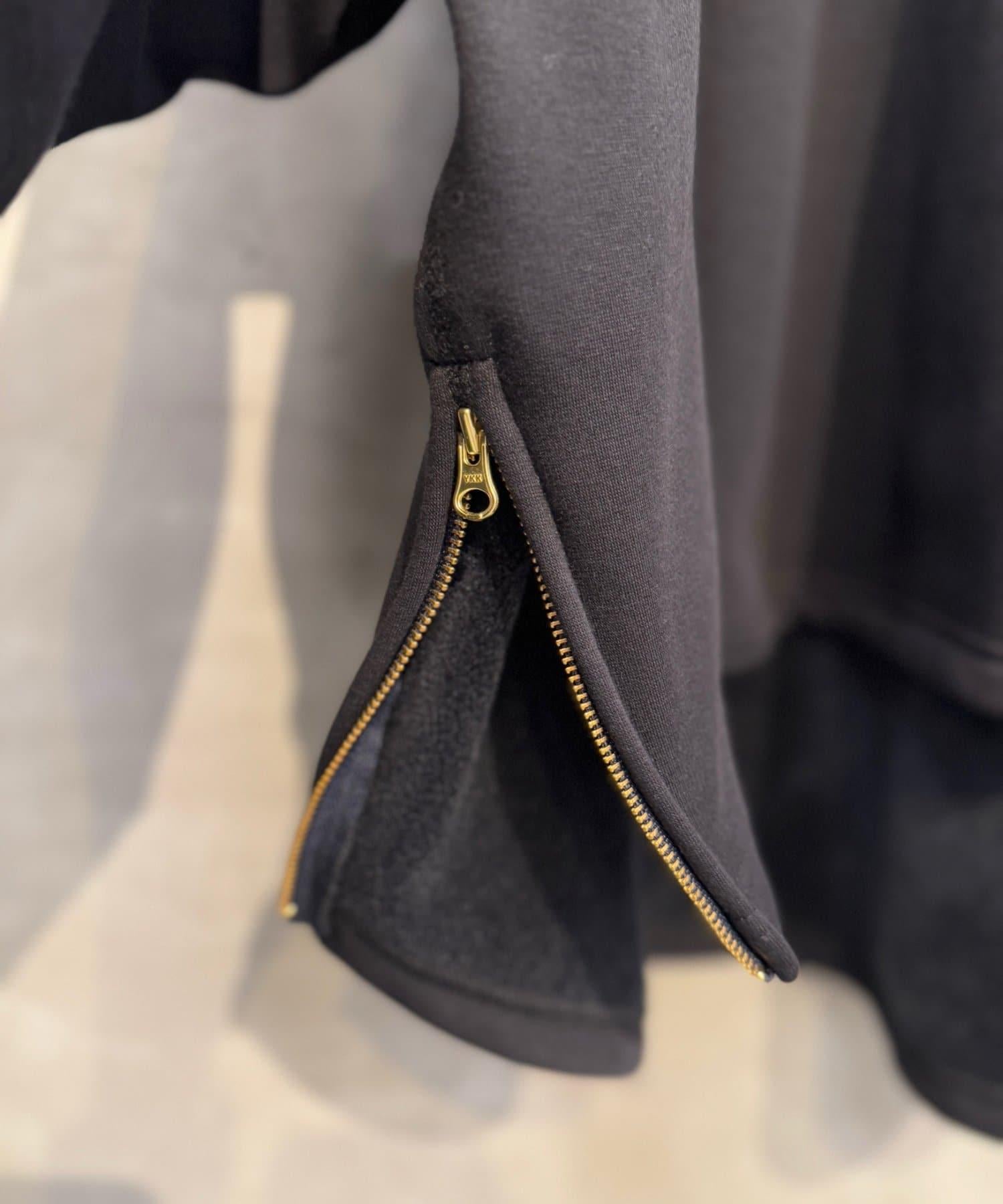 下襬為圓形剪裁,兩側有金色拉鍊,開衩可調節,非常適合疊穿。