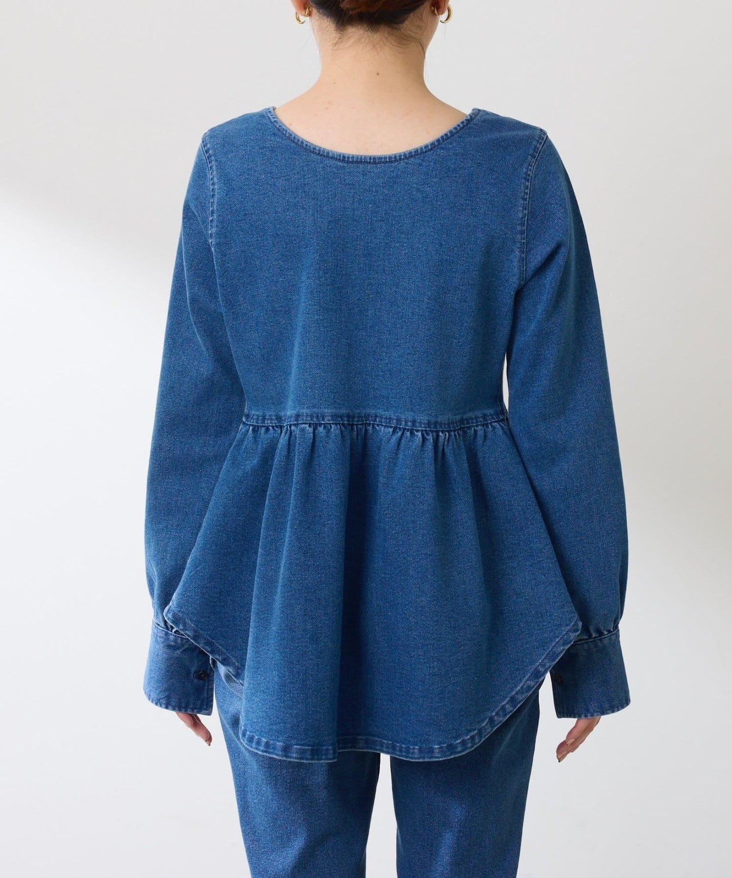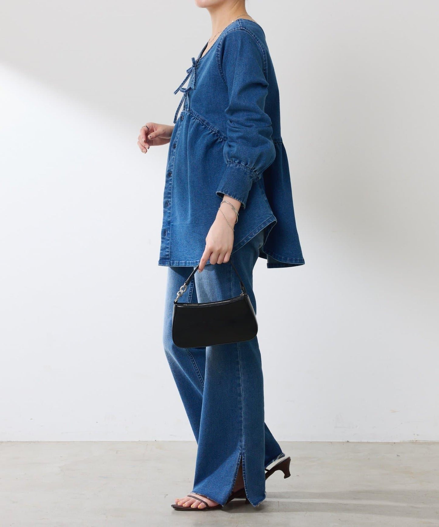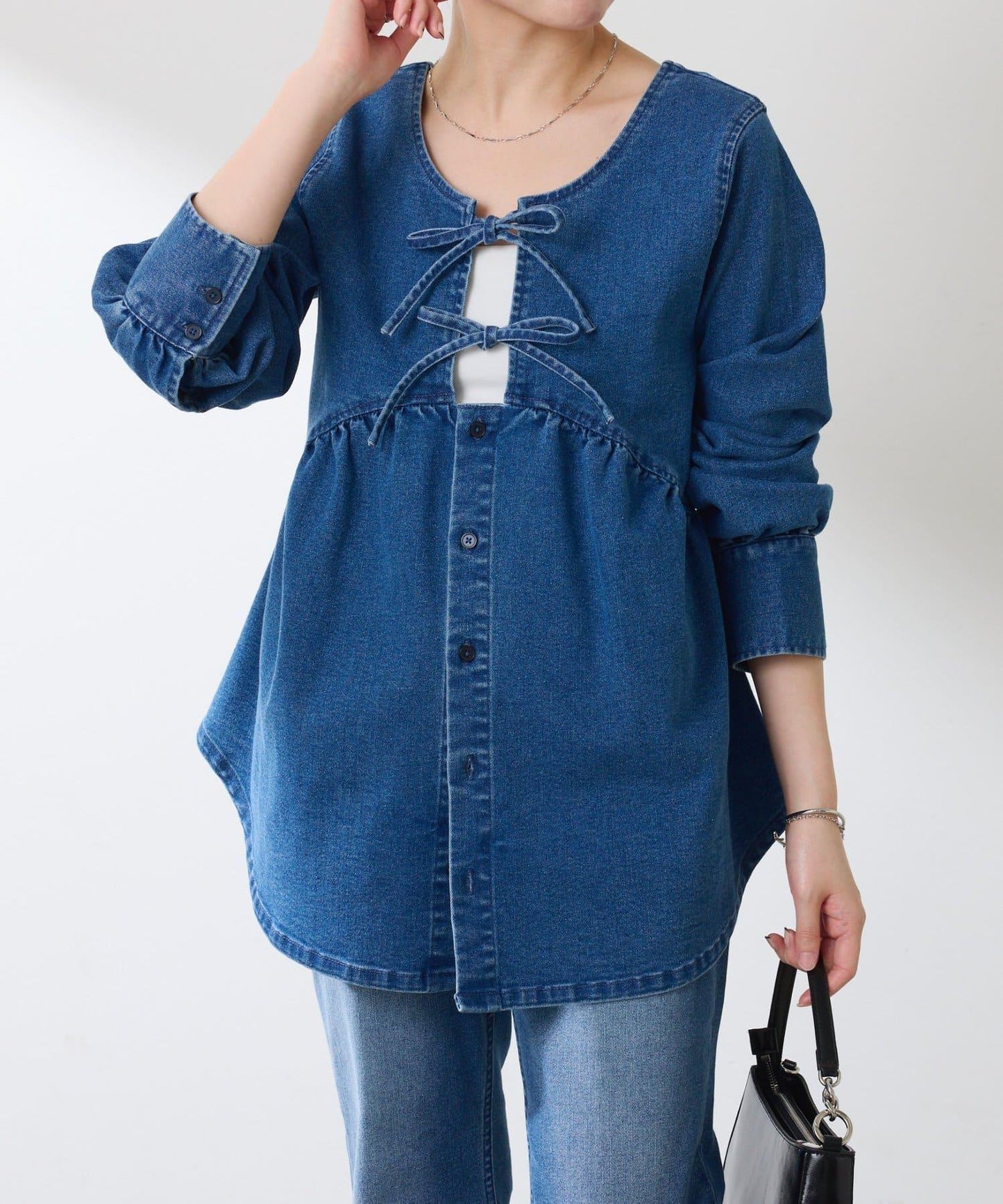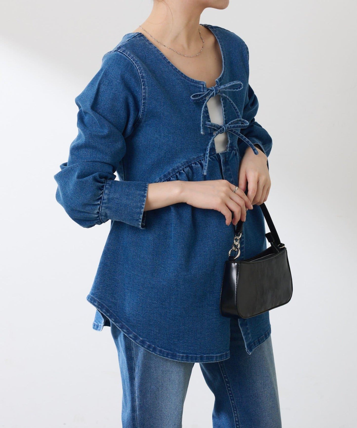 廓形很女性化,但牛仔布料給人的感覺不會太甜美。