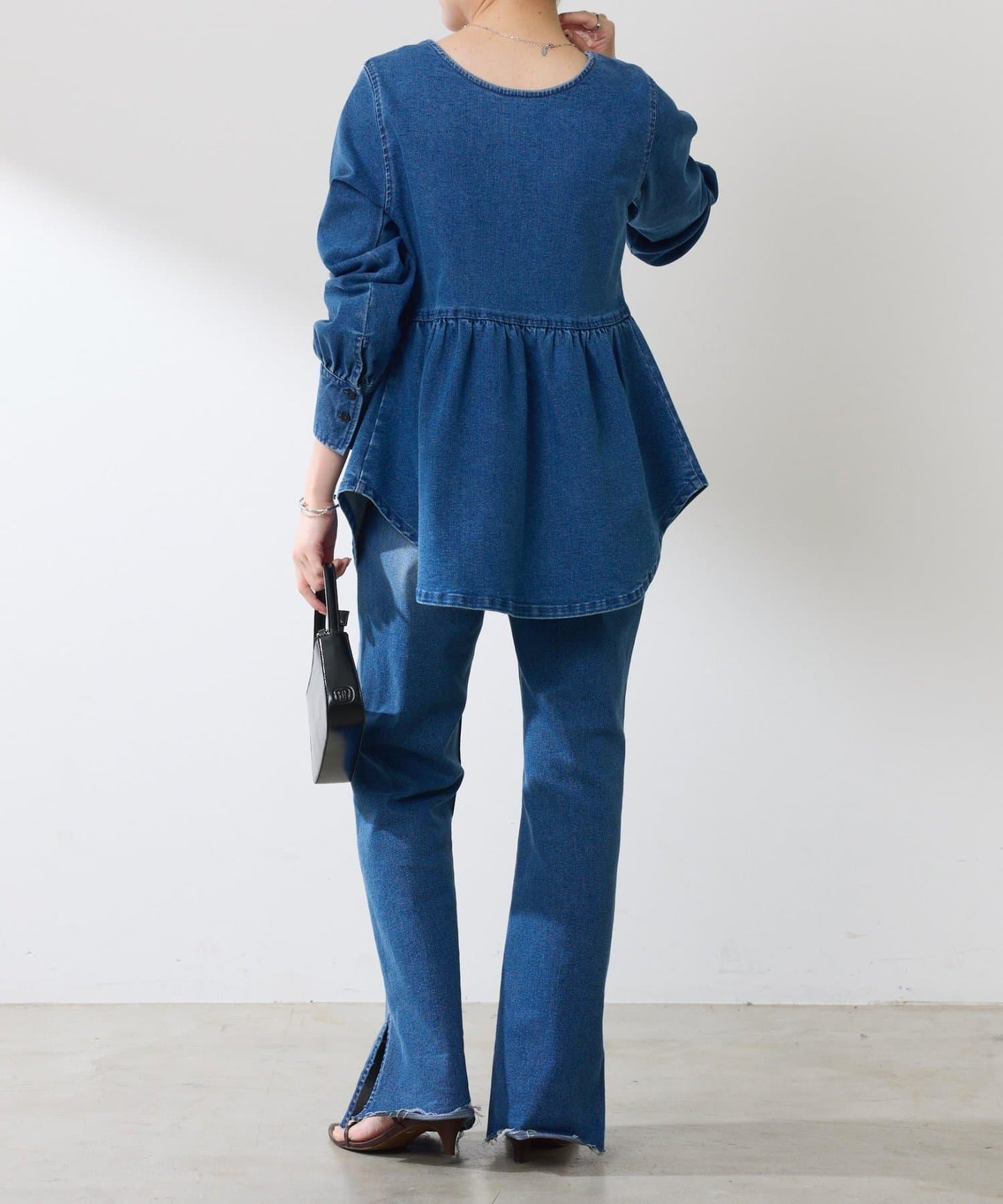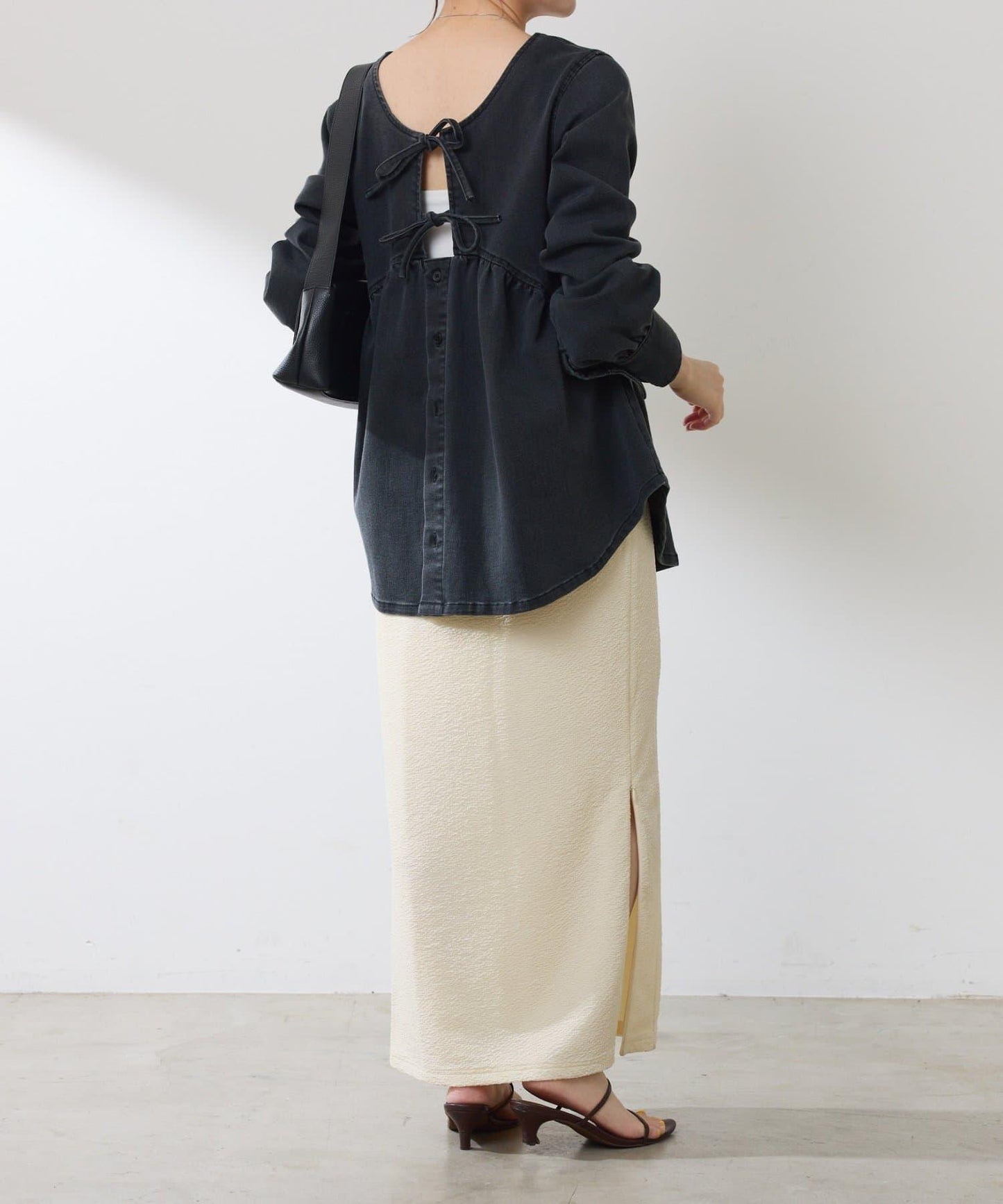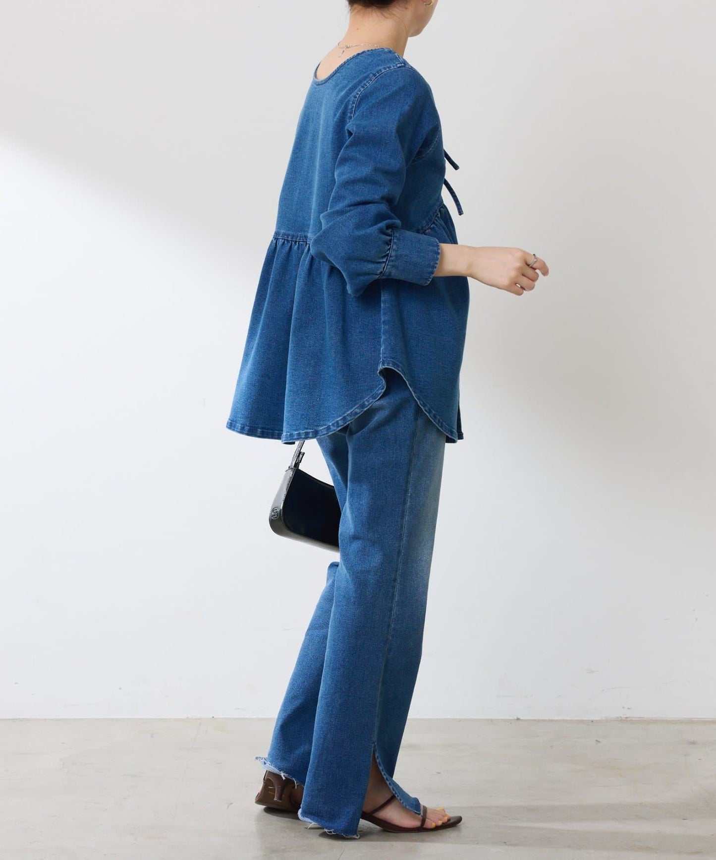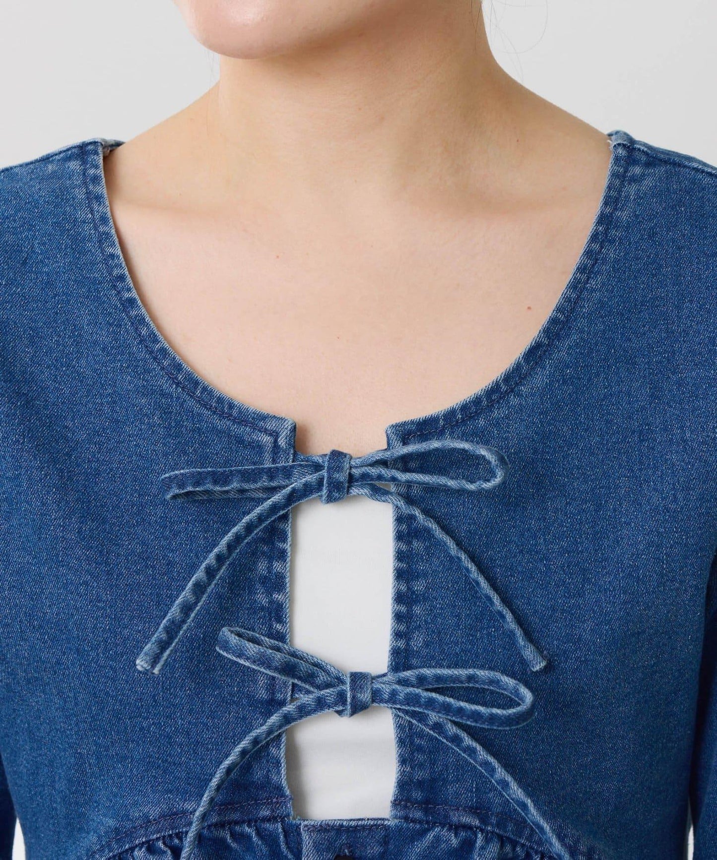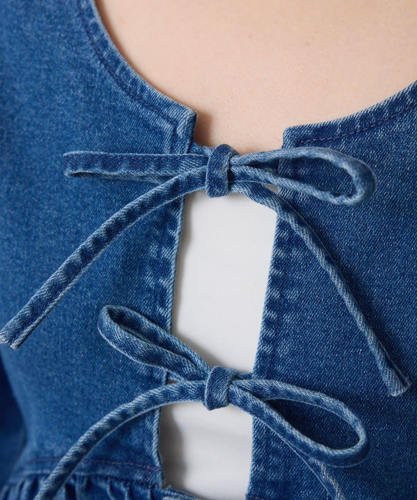 廓形很女性化,但牛仔布料給人的感覺不會太甜美。