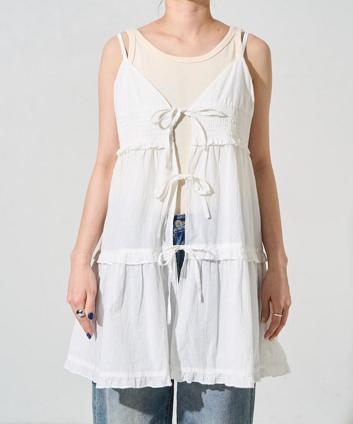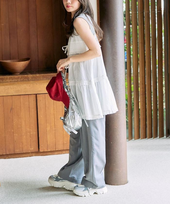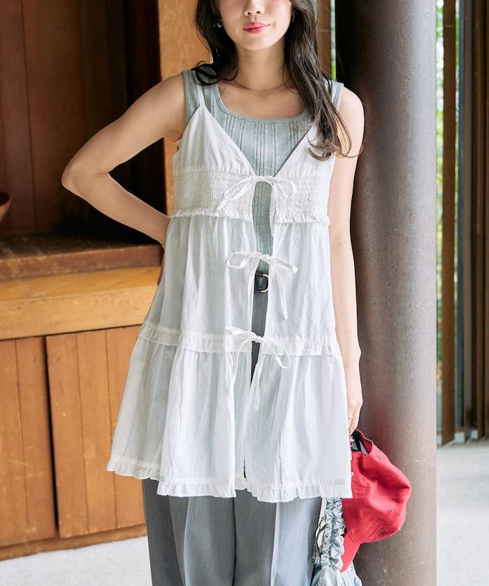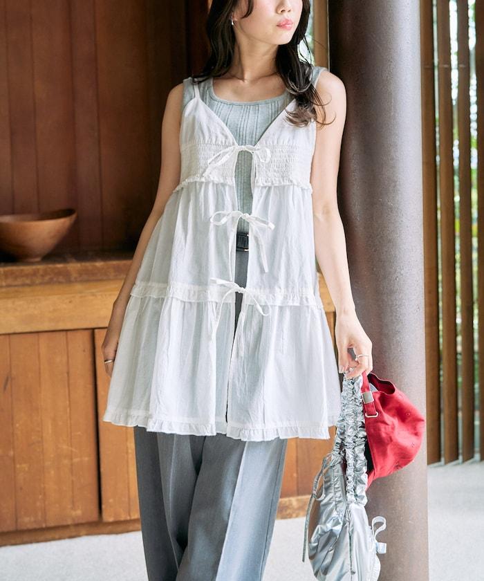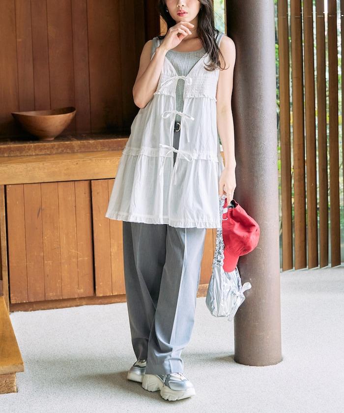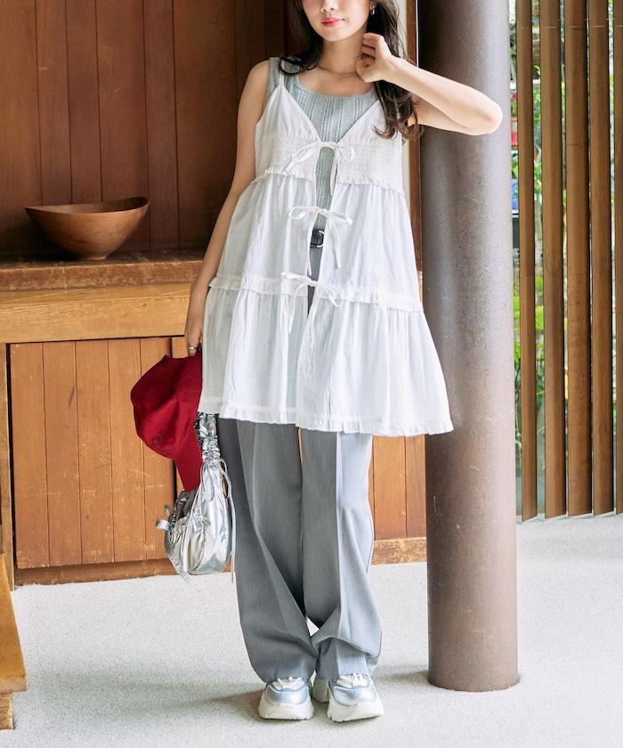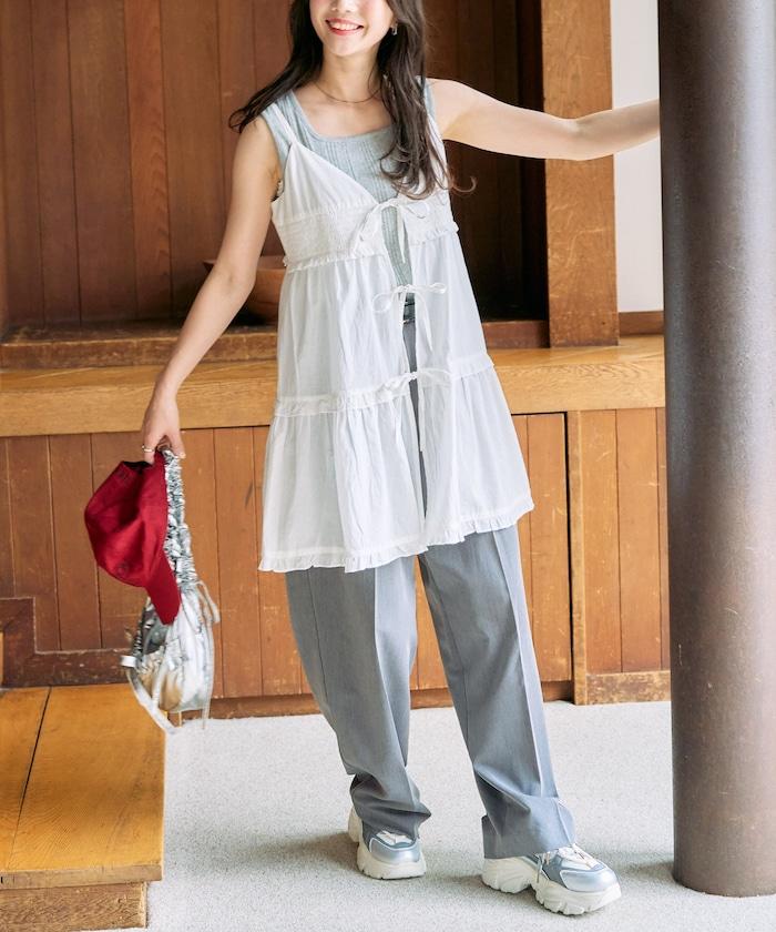 給人甜美印象的流蘇吊帶半身裙適合搭配休閒褲!