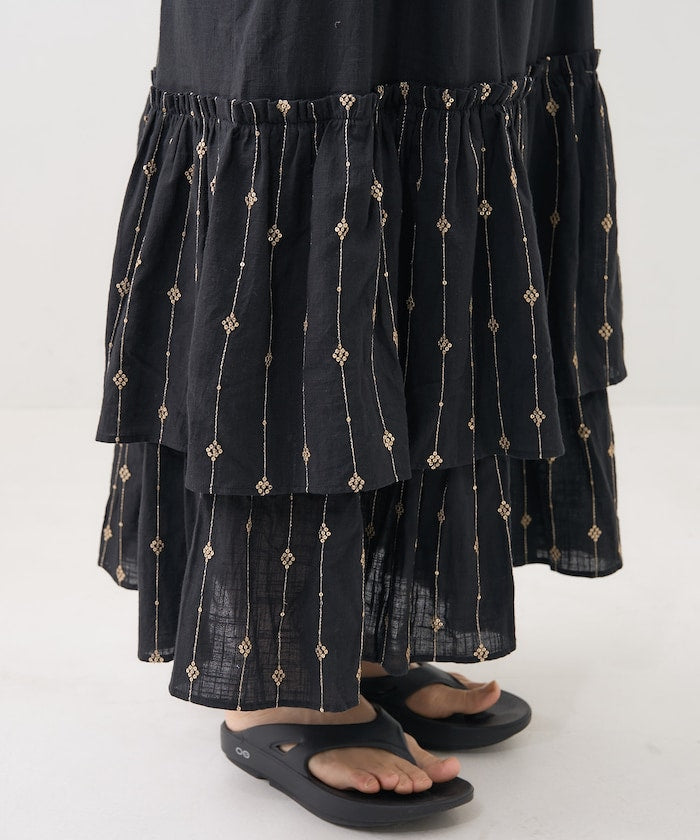 這款連衣裙使用印度特有的薄片線進行刺繡和亮片裝飾。