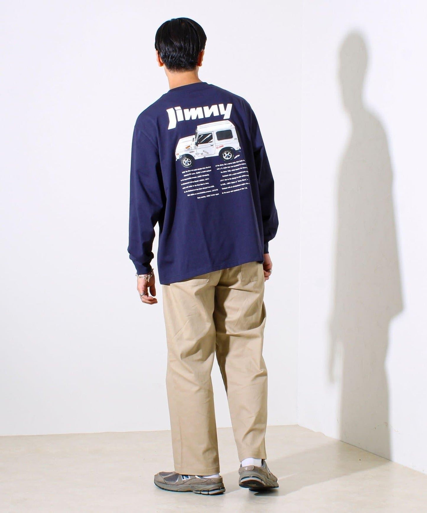 吉姆尼的正面以單點刺繡的形式繡在胸前,背面則是以往車型的插圖和說明。