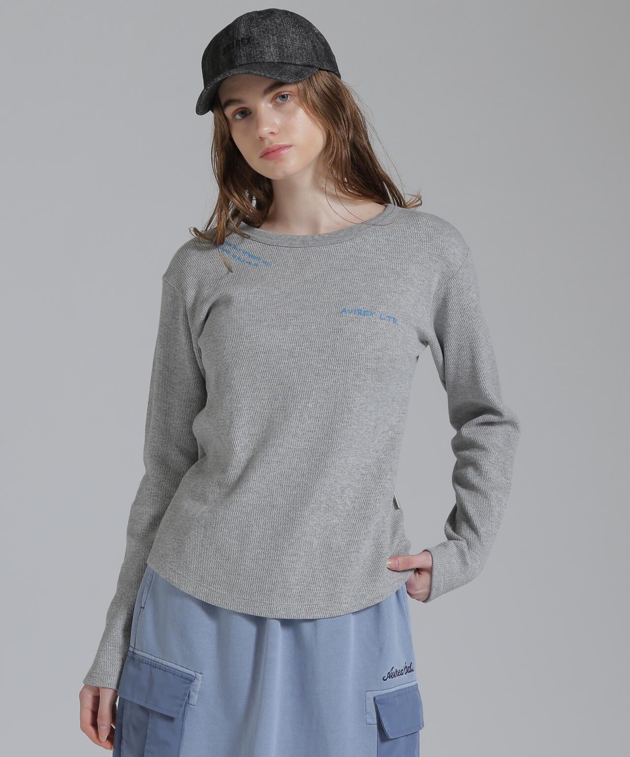 AVIREX 官方直營店] 2025 春季新款多色印花蜂巢華夫格T恤 - 採用柔軟且富有彈性的蜂巢華夫格面料的長袖T恤 - 以生動的刺繡風格印花為主 - 稍微沿身體線條設計、下襬呈圓形,輪廓優美。推薦造型簡潔的輪廓與裙裝和寬鬆的下裝非常搭配。還可搭配簡單的軍裝造型。AVIREX WOMAN] 該系列將正宗軍裝的功能性和設計感投射到女式休閒裝上。作為一個獨特而永恆的女裝品牌,它以智慧、自由、好奇和高貴著稱。