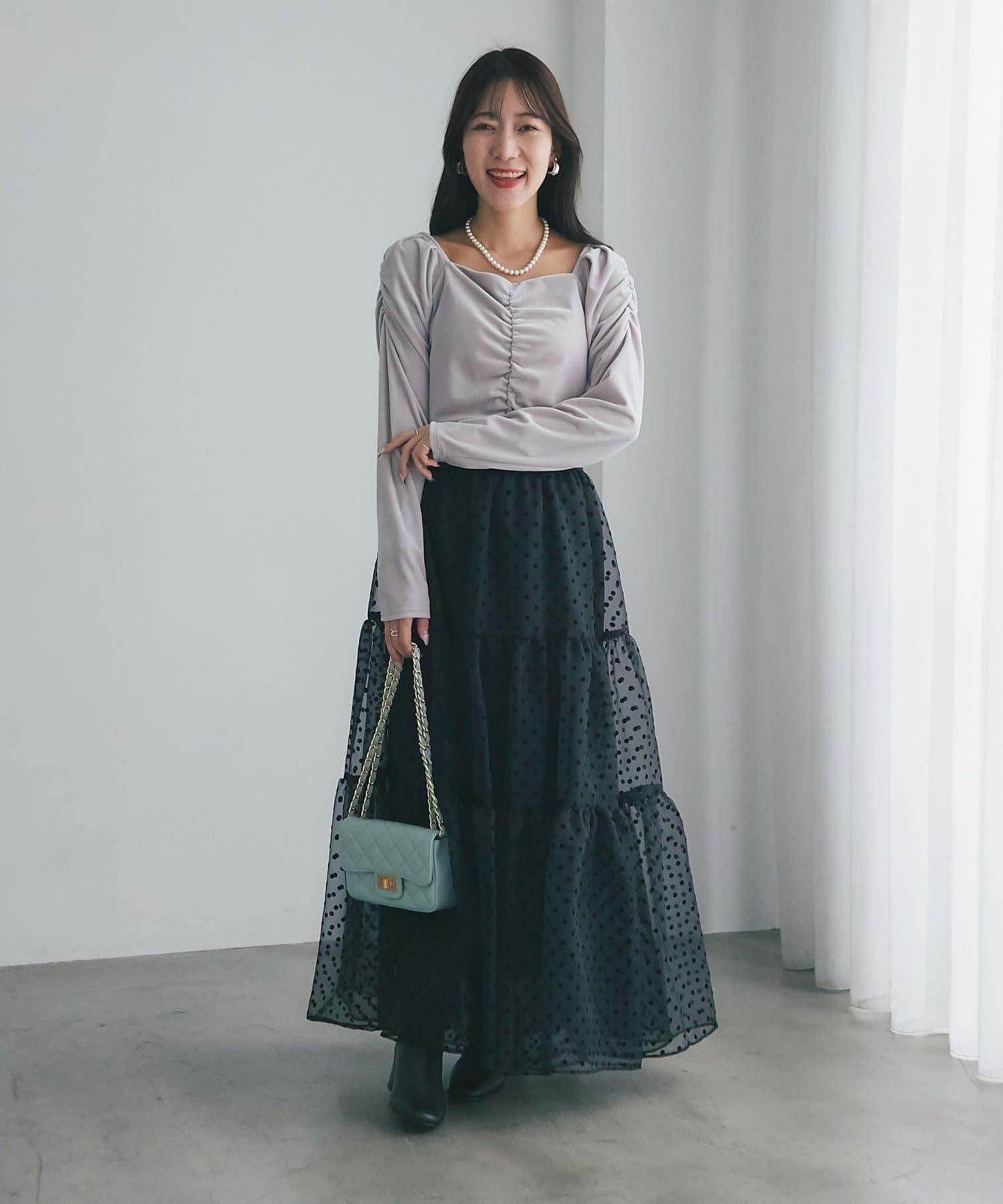 方形領口和褶皺細節讓肩部看起來更美,給臉部周圍留下乾淨利落的印象。