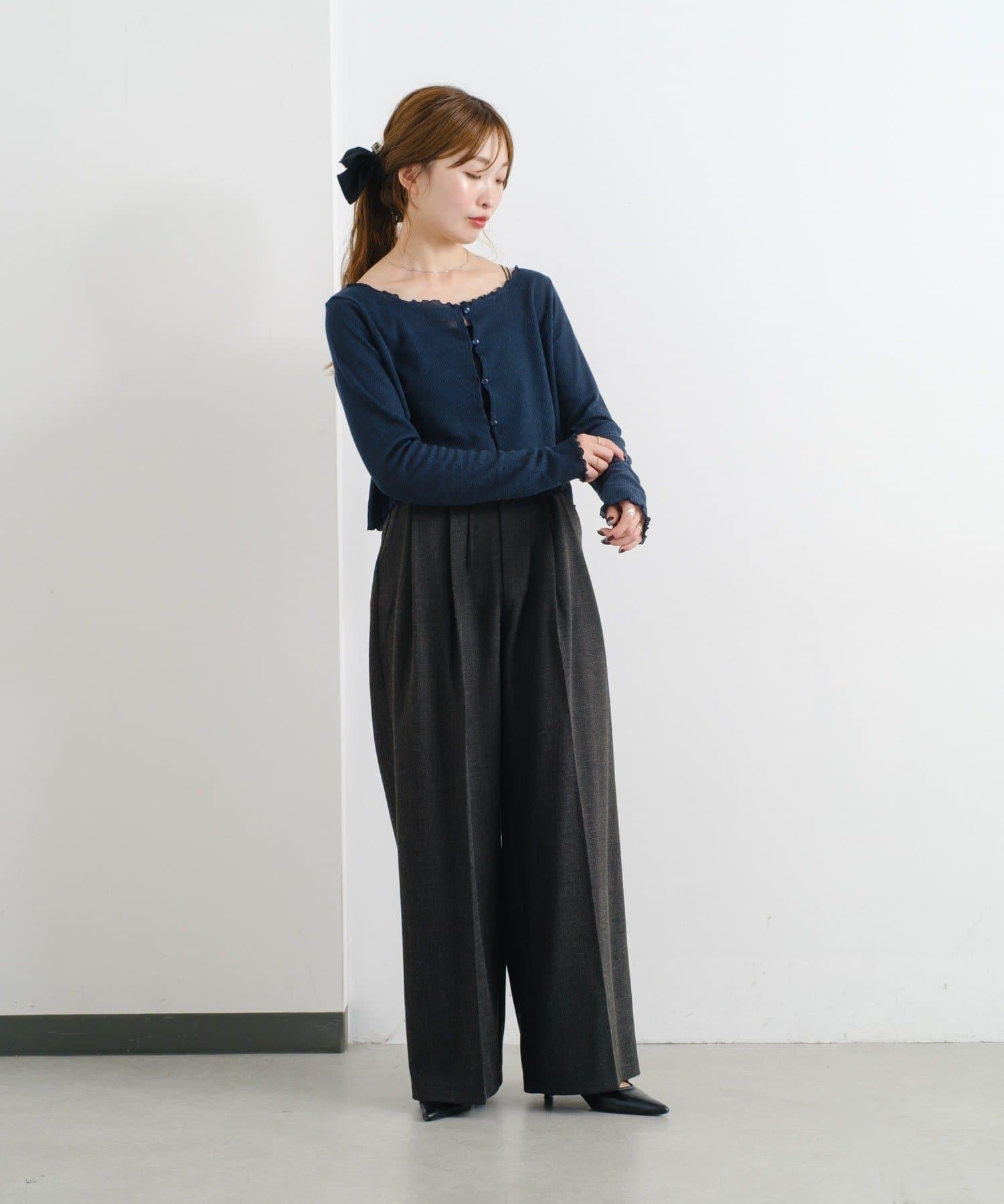 輕鬆休閒褲,腰部緞帶寬鬆整齊。