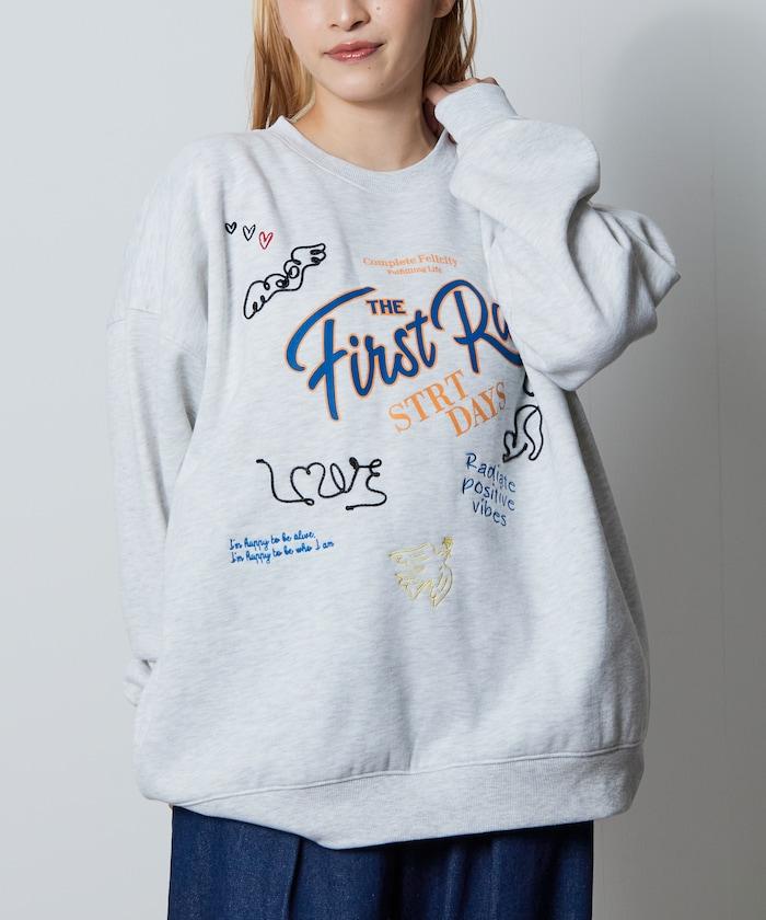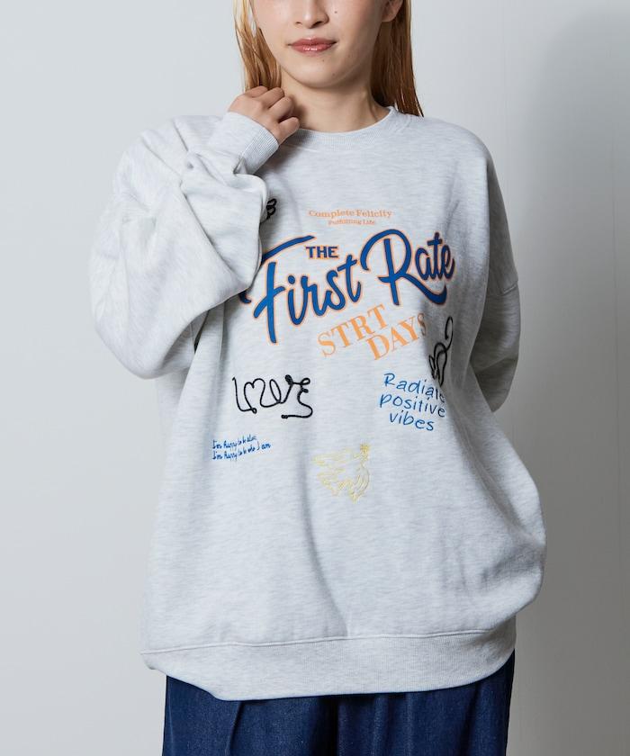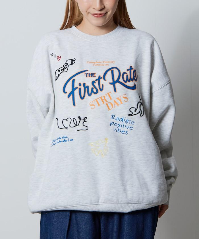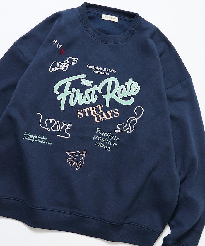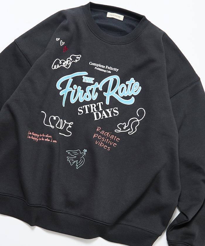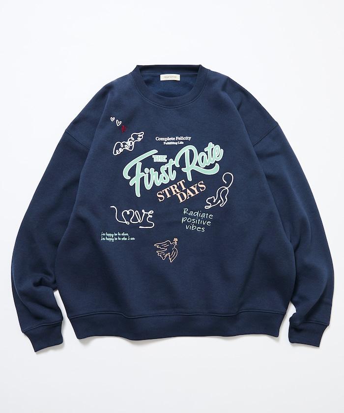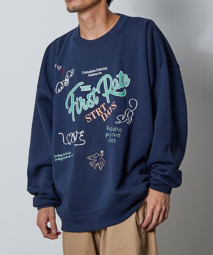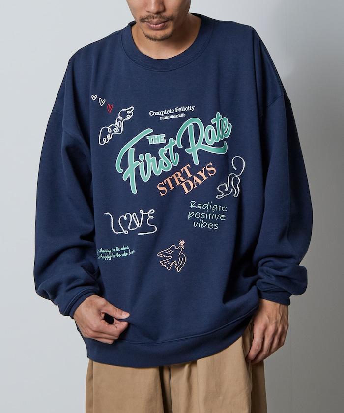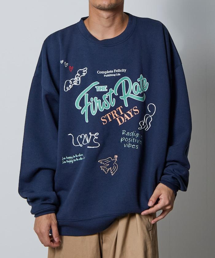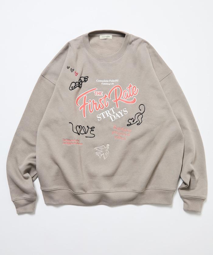寬鬆版型 繩繡設計 印花 圓領衛衣 / First Rate