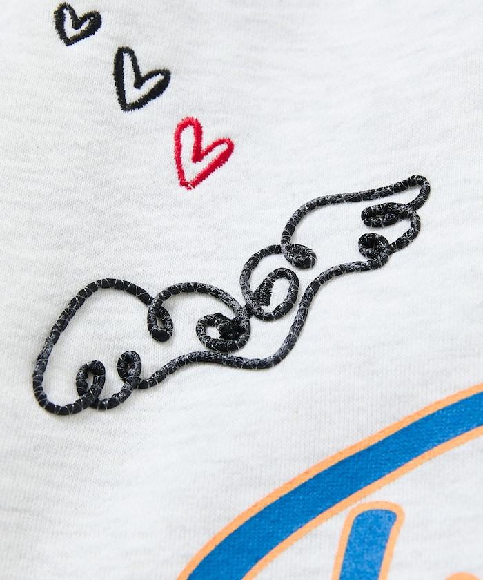 寬鬆版型印花圓領運動衫,帶繩索刺繡設計