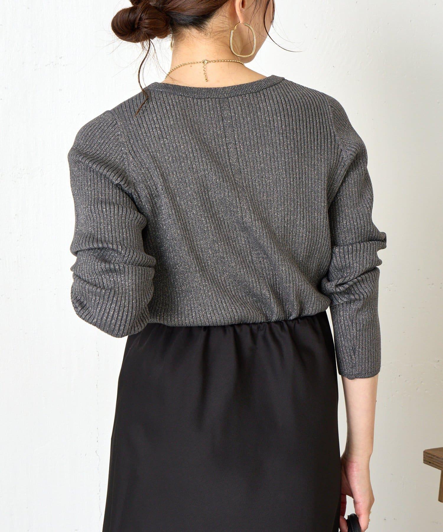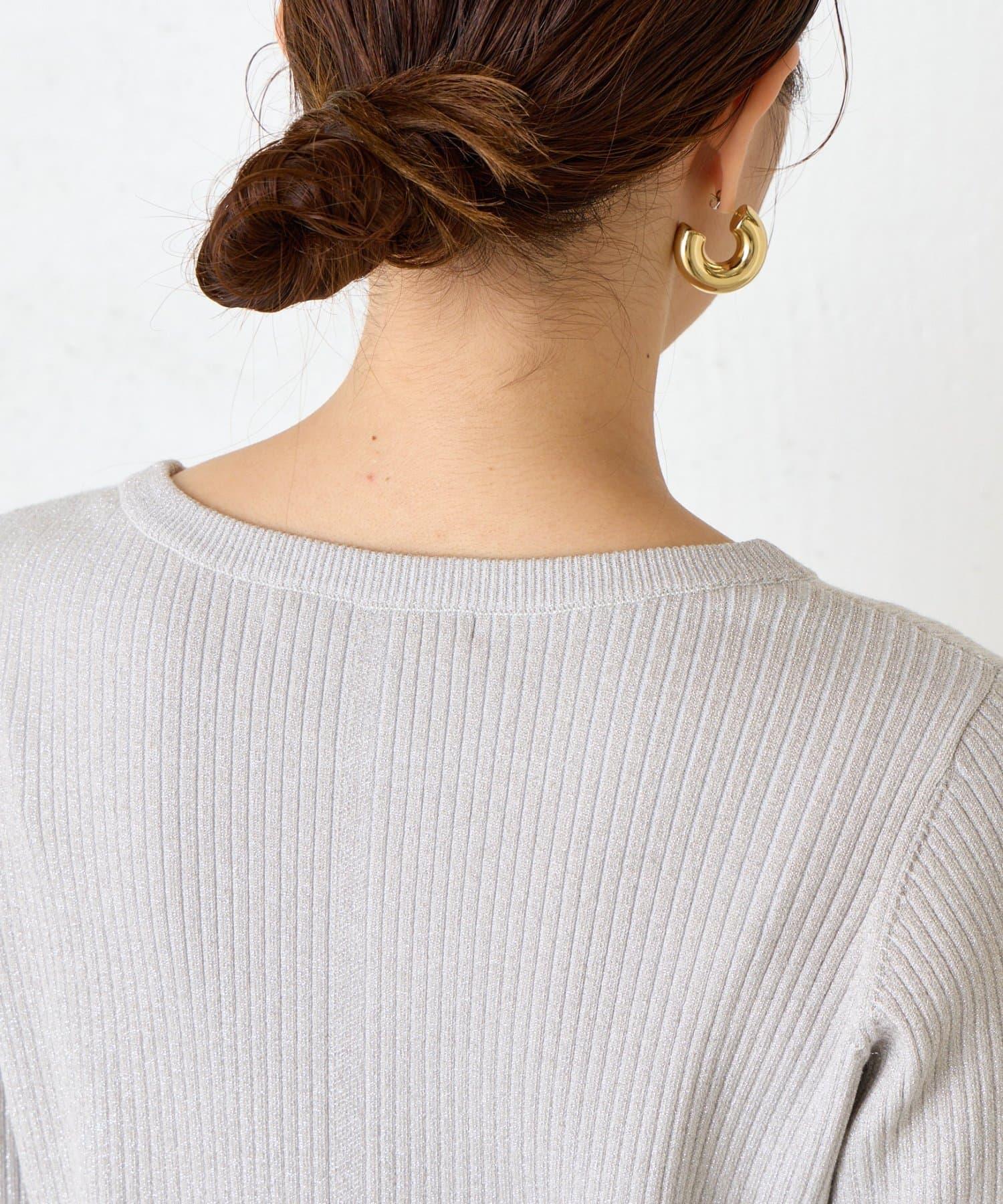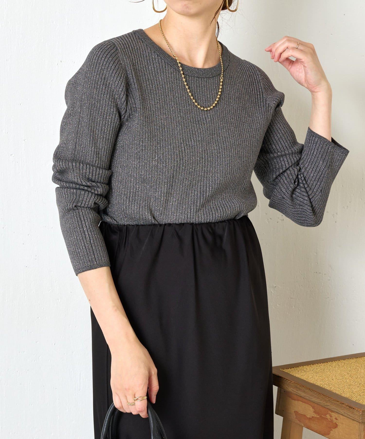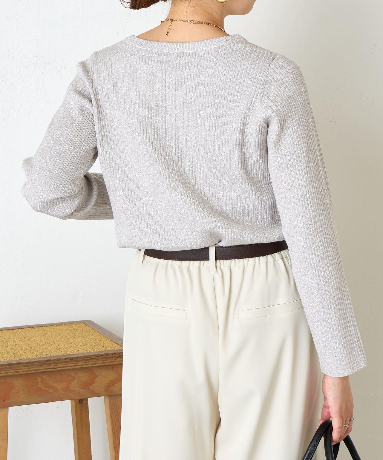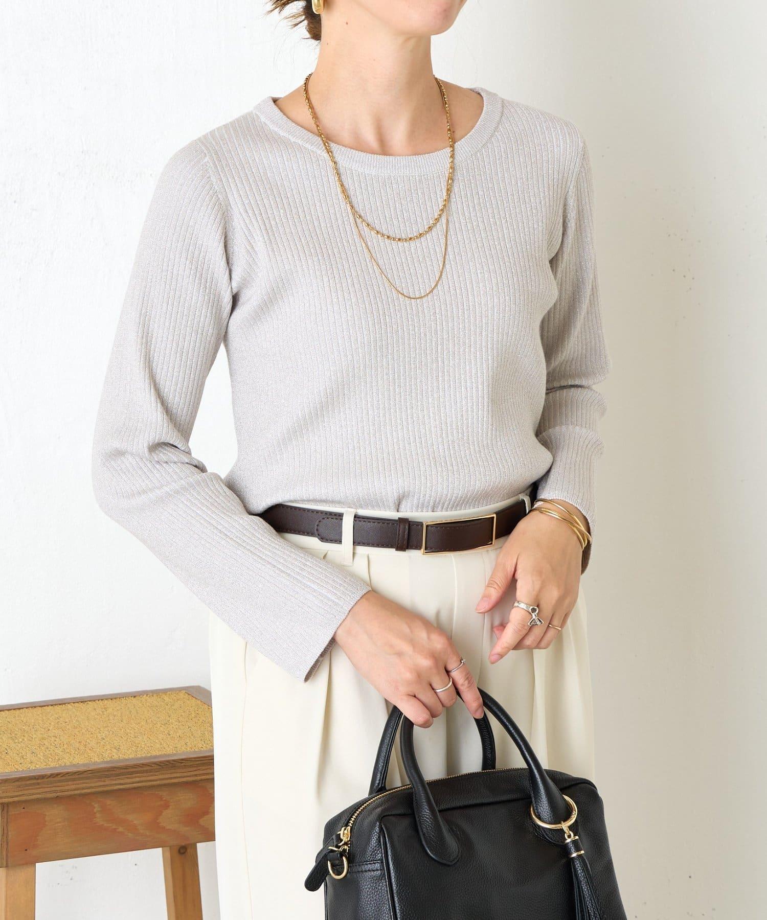優雅的羅紋針織上衣,帶有彈性和精緻的交織薄片。