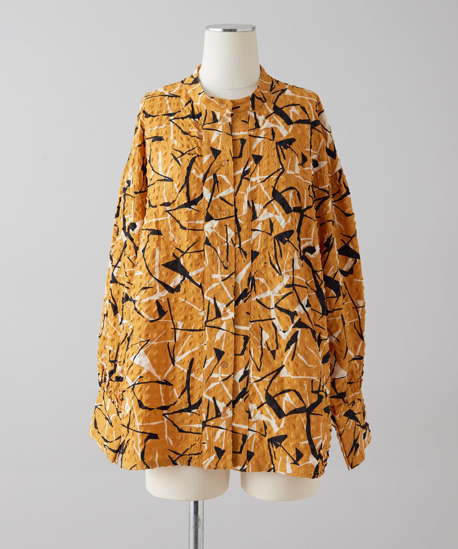 單件時尚上衣,袖子寬大,佈滿圖案。