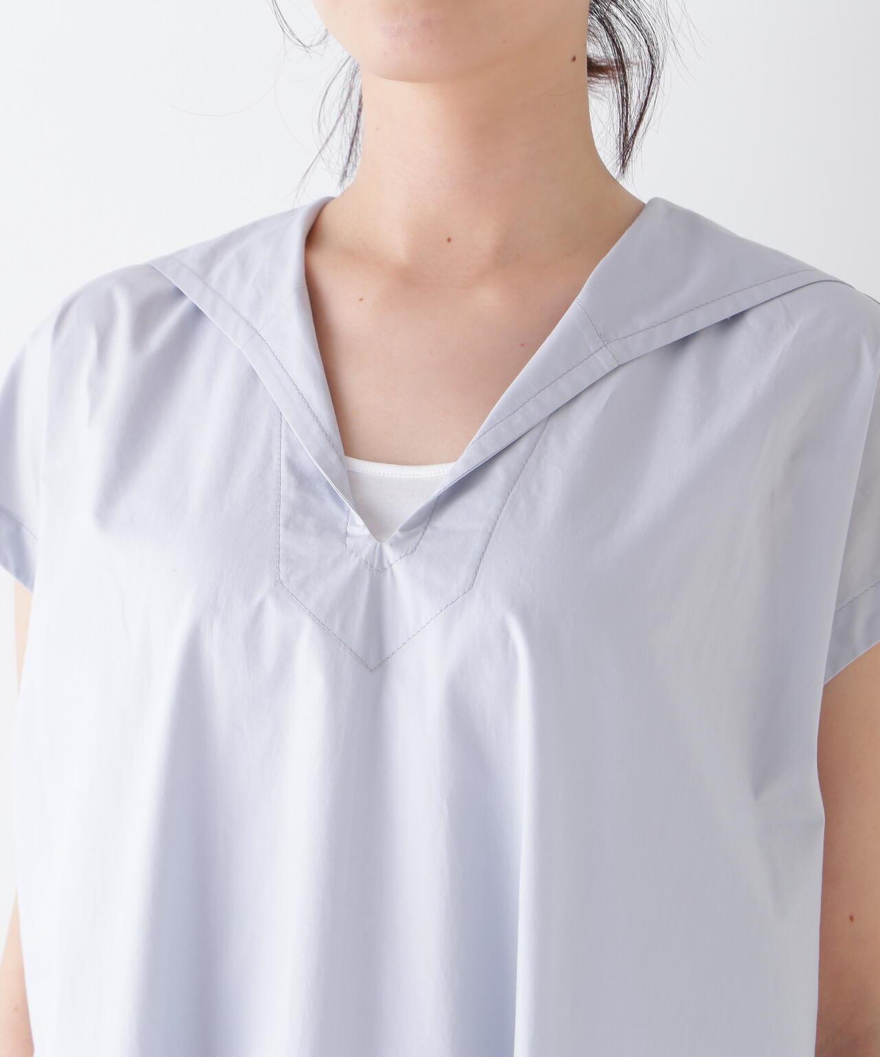 清新水手領成人夏裝 [設計要點] 清新水手領夏裝。領子既有舒適感,又不失童趣。法式袖子覆蓋肩部。適度的 A 字廓形營造出成人休閒氛圍。面料織造密實,特殊洗水後期處理的豐富表現力是重點。建議搭配】建議單穿時搭配涼鞋或運動鞋,打造休閒的成人風。