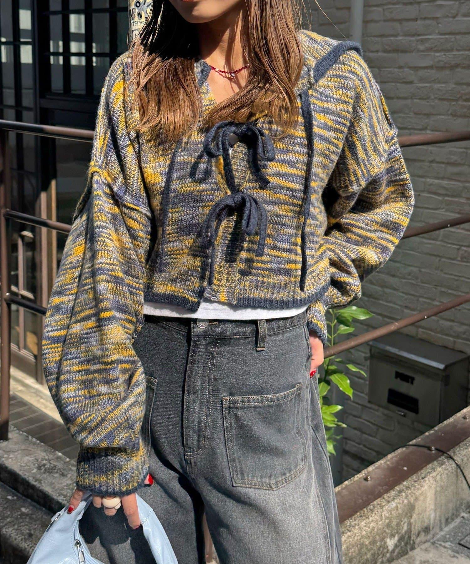前襟的絲帶和寬大的袖子增添了甜美的印象!
