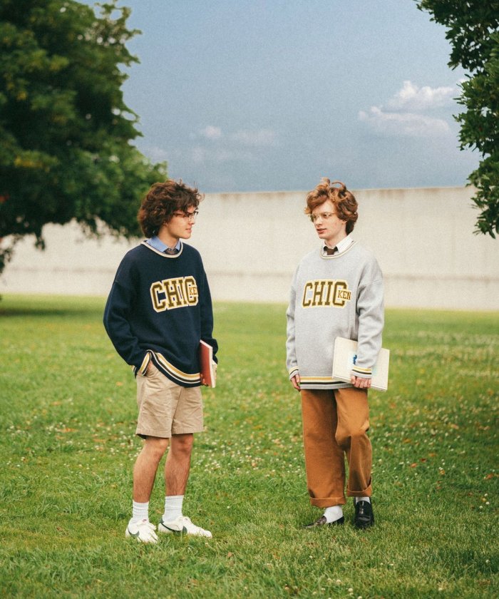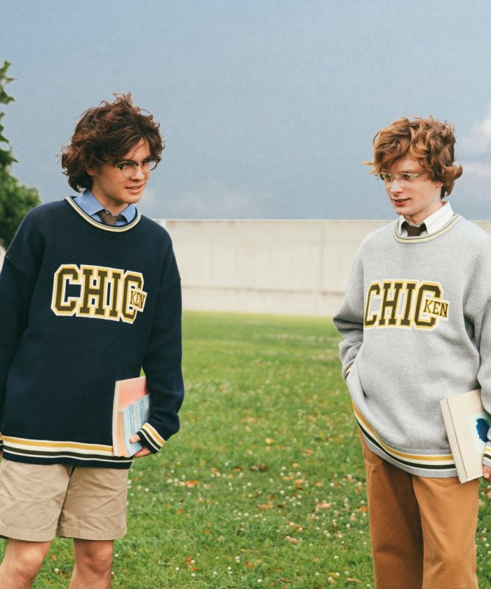 學院風格的 "CHICKEN "標誌被融入提花針織中。重點是👍眼看上去就像 "CHIC"。