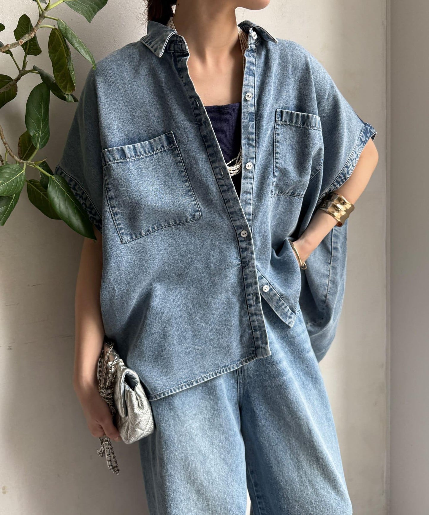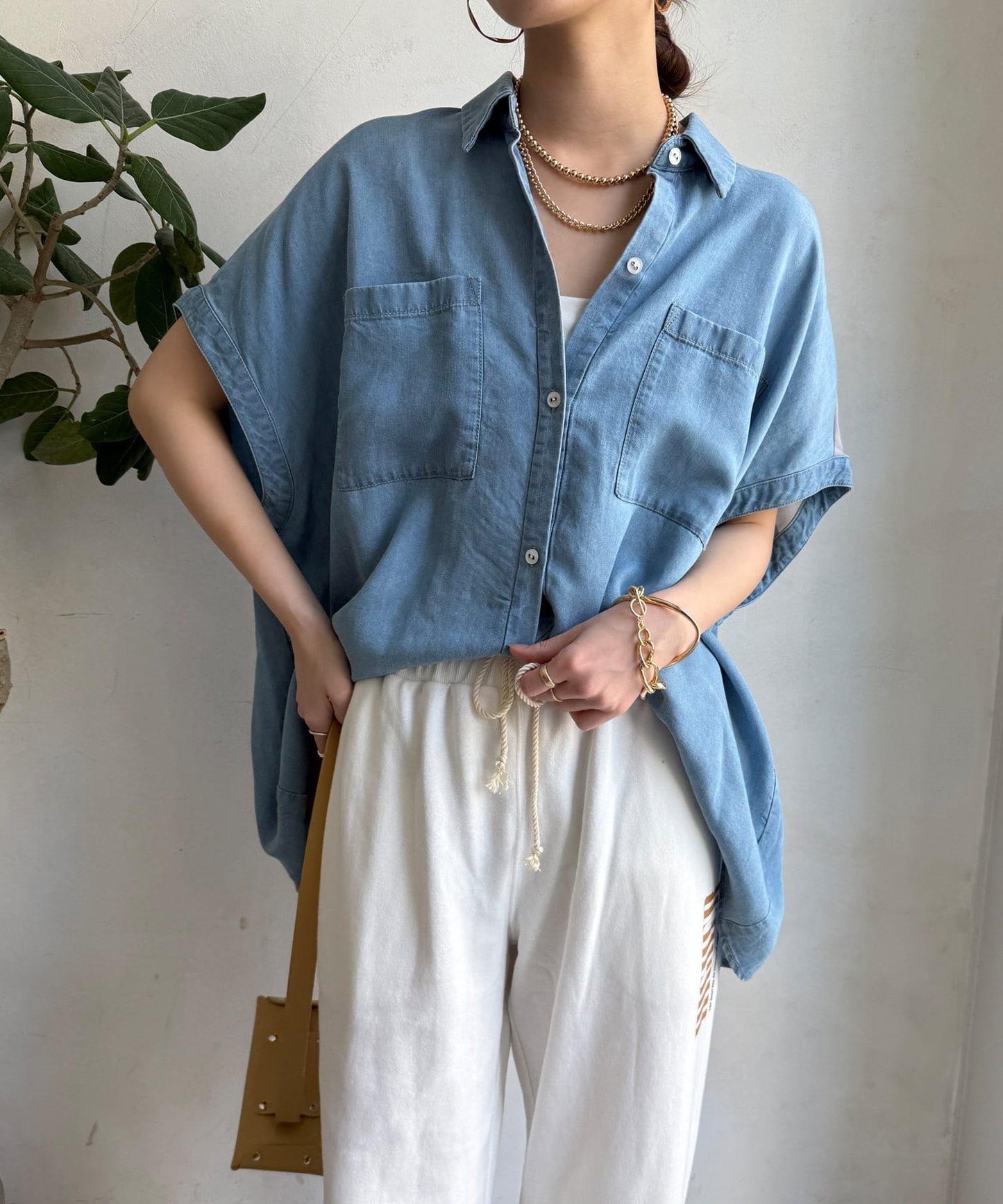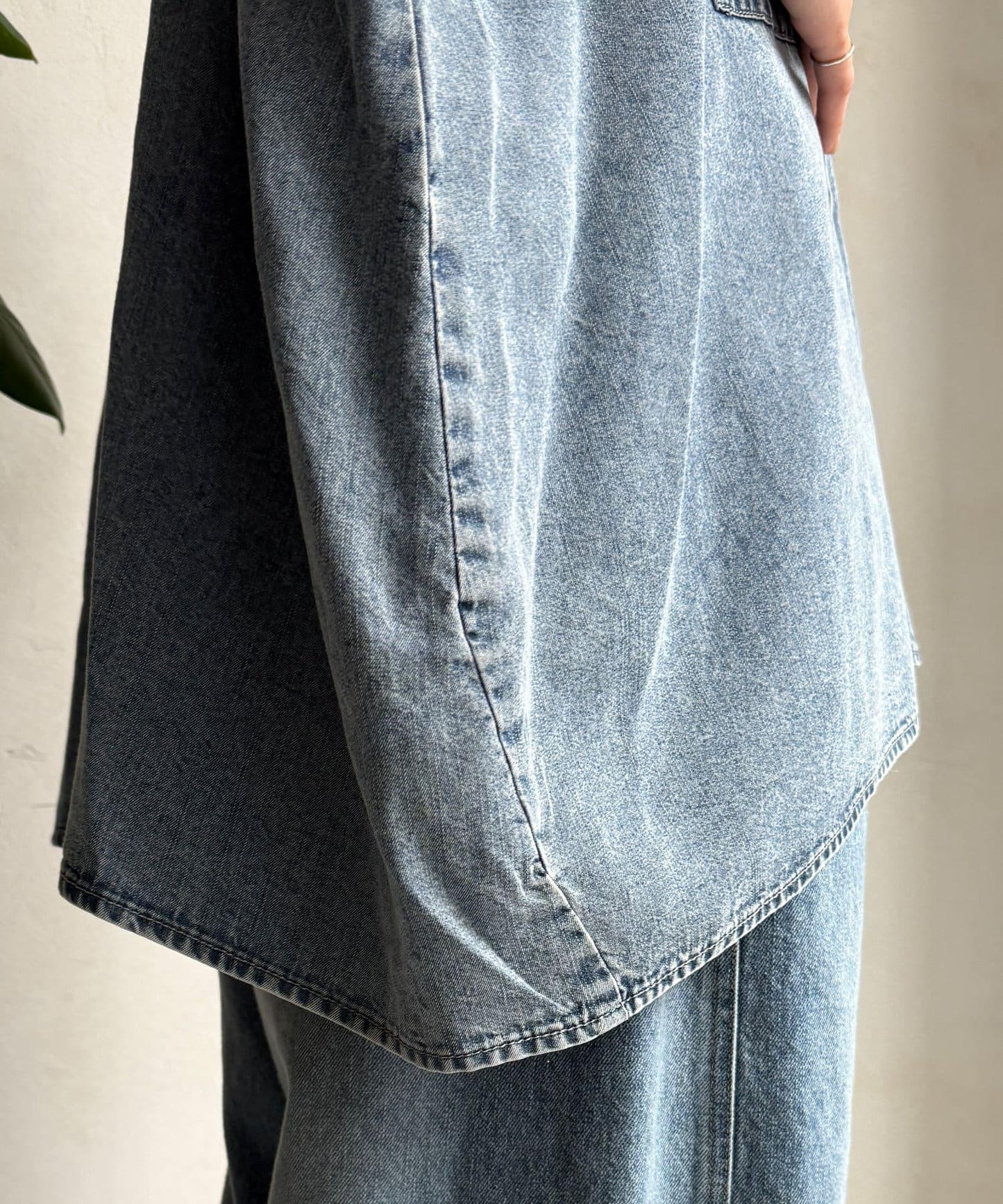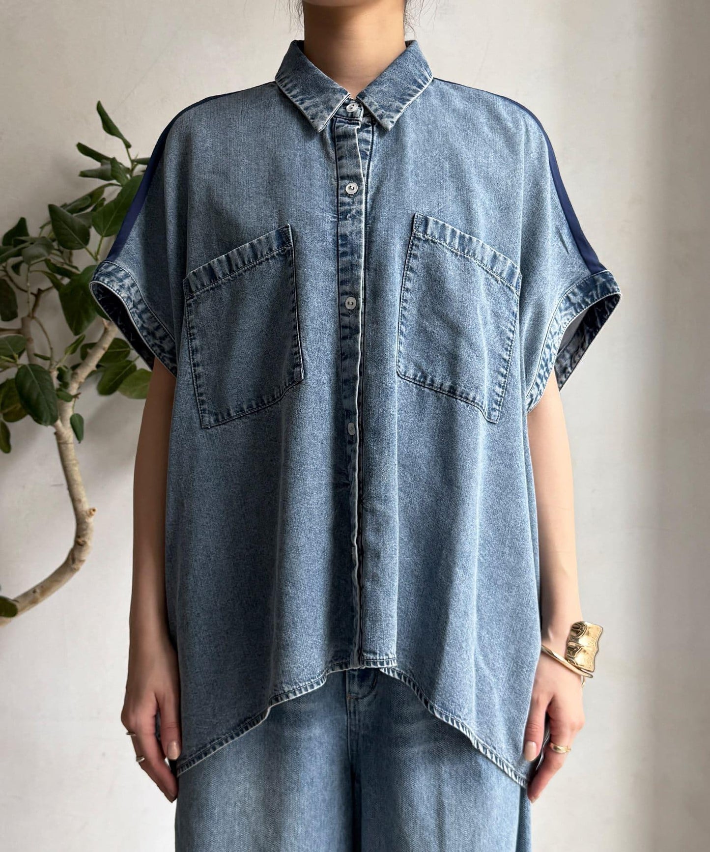 這款襯衫採用柔軟的天絲牛仔布製成,具有豐富而輕鬆的質感。