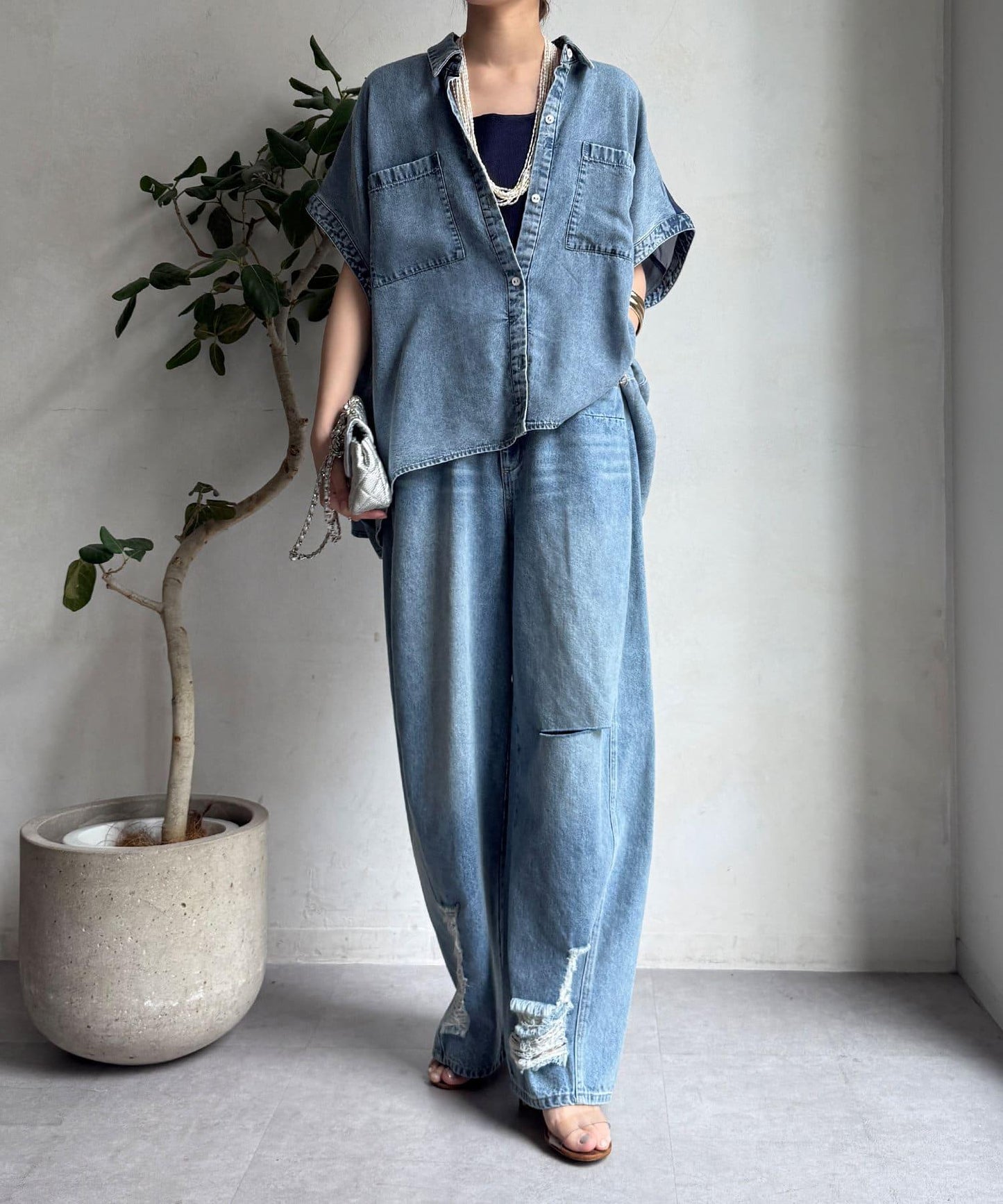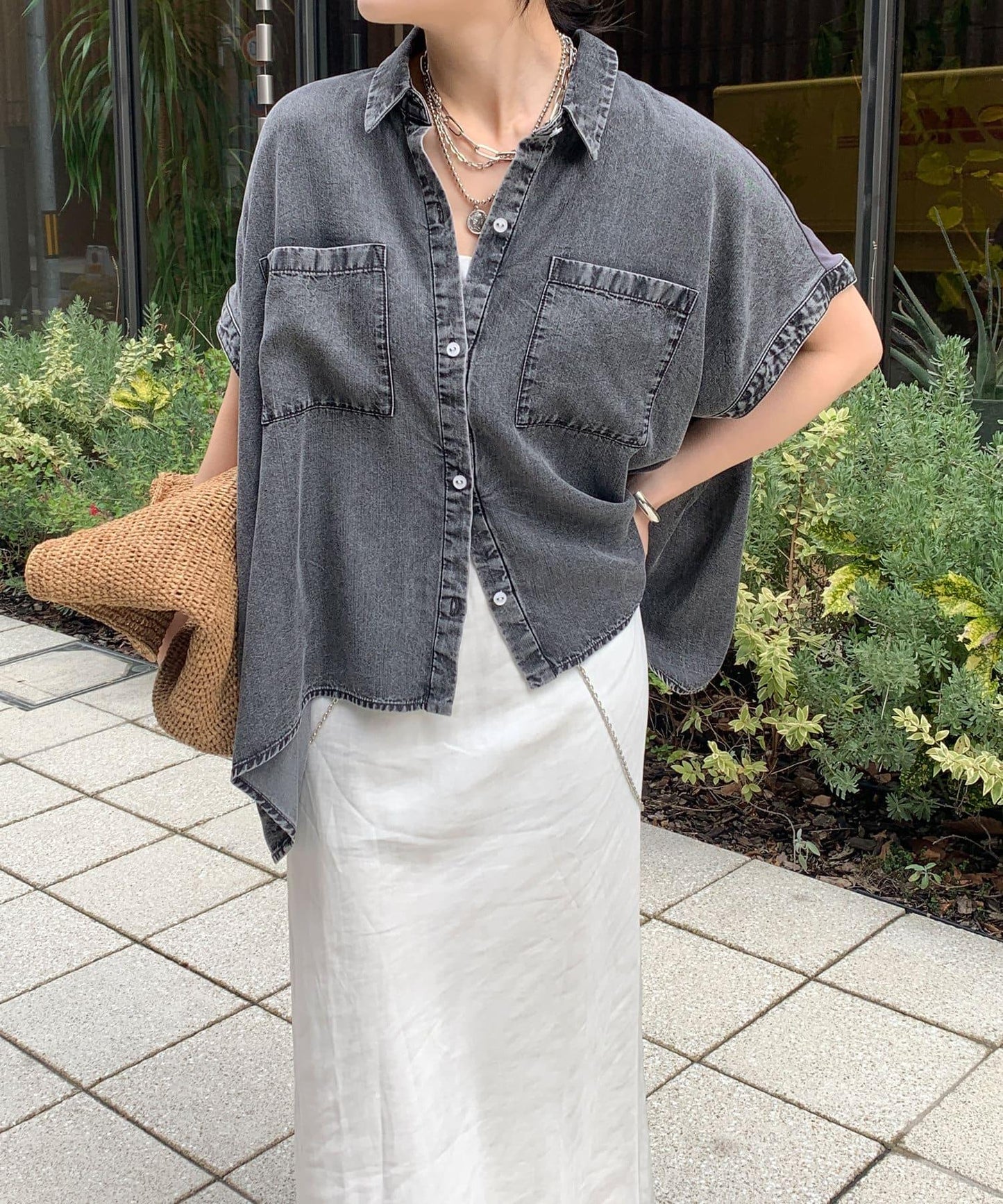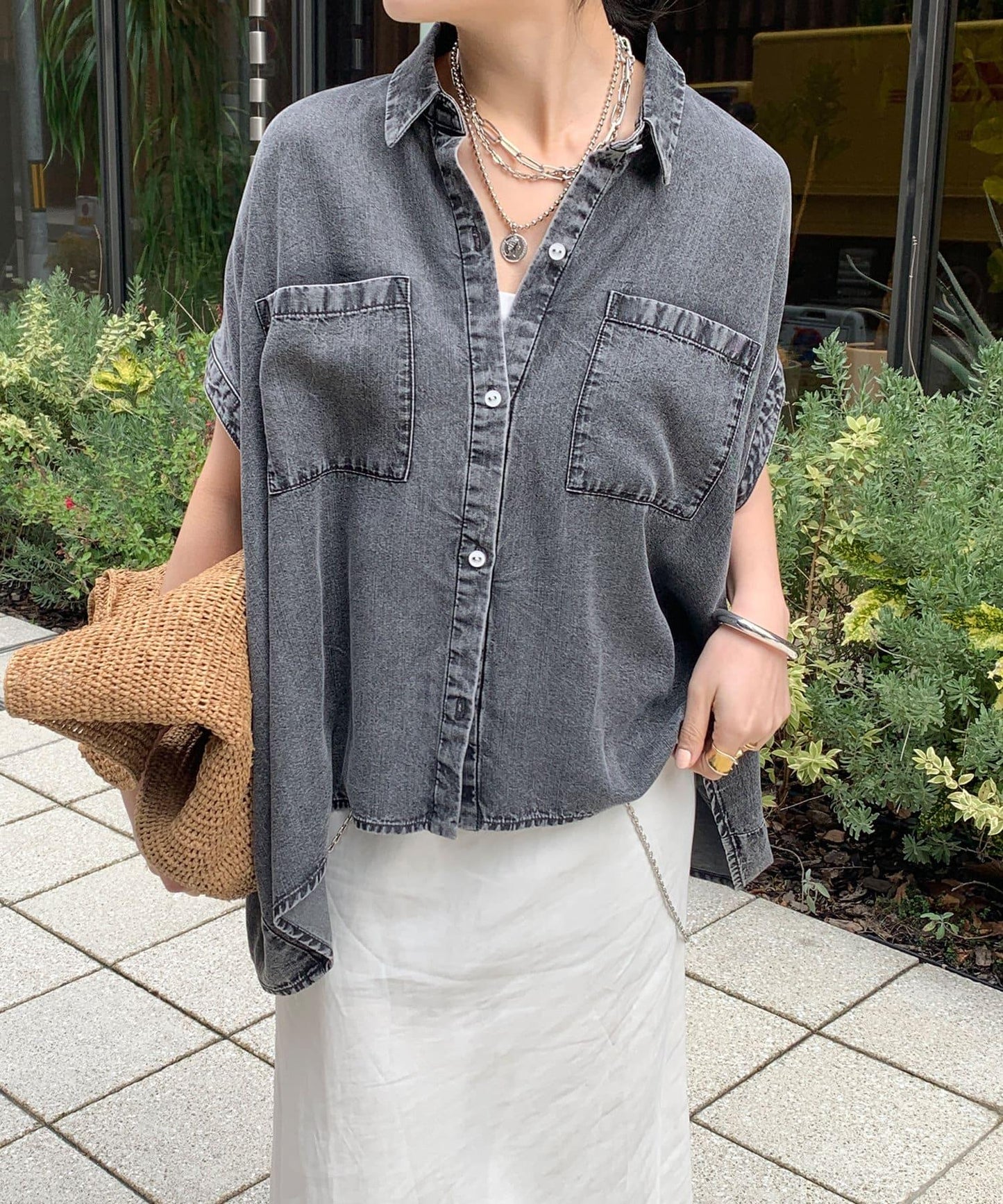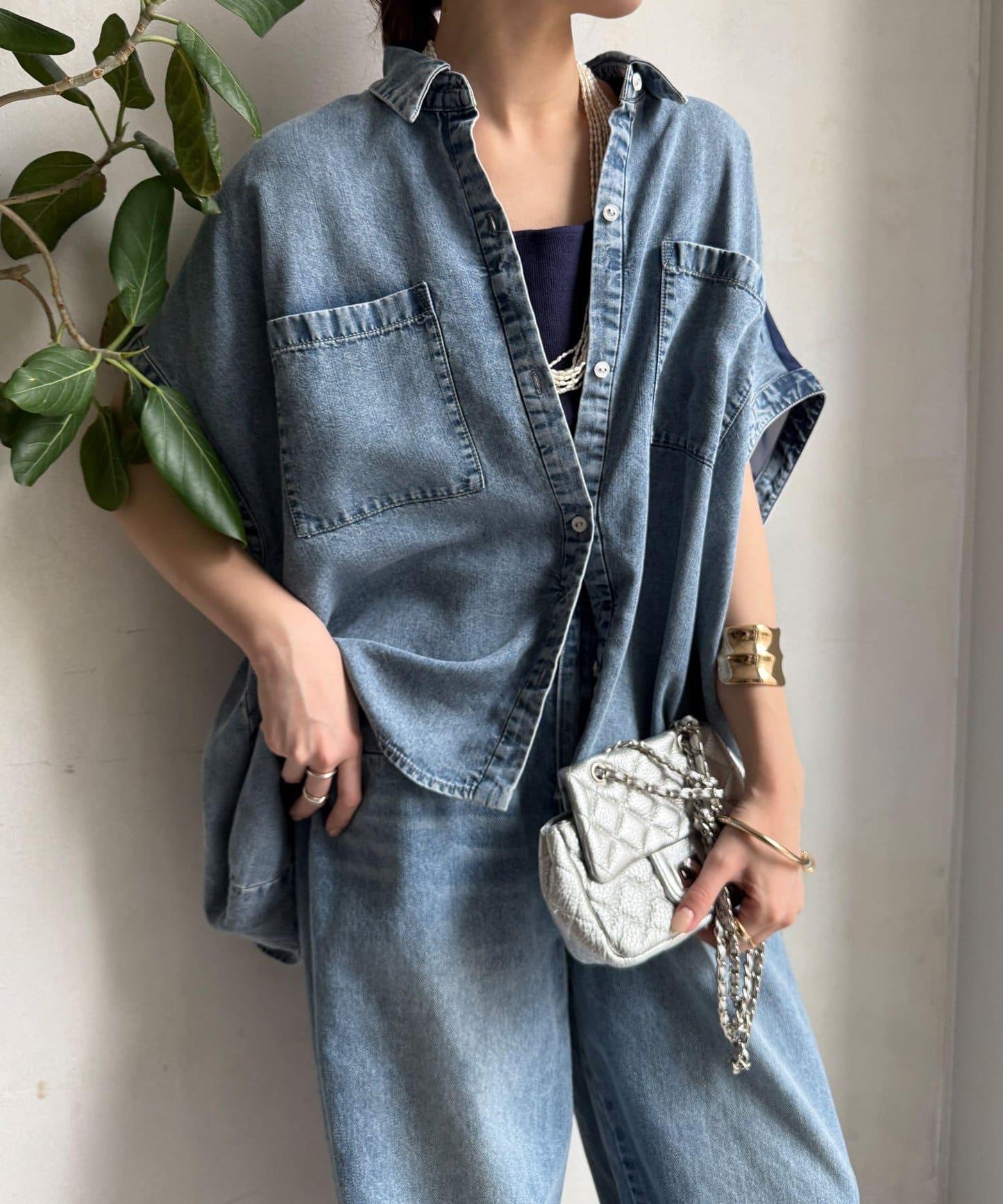 這款襯衫採用柔軟的天絲牛仔布製成,具有豐富而輕鬆的質感。