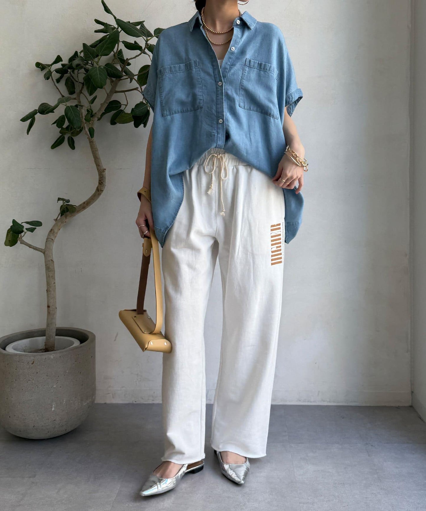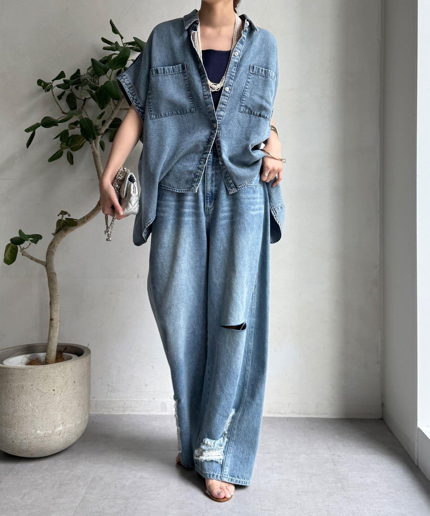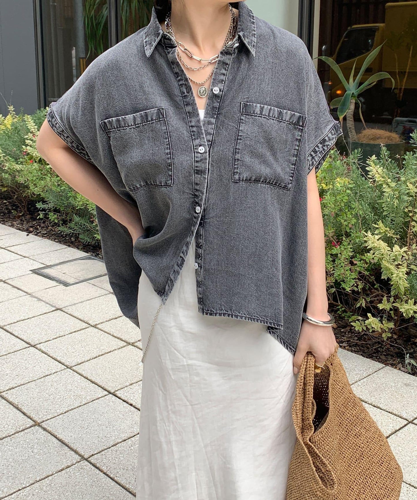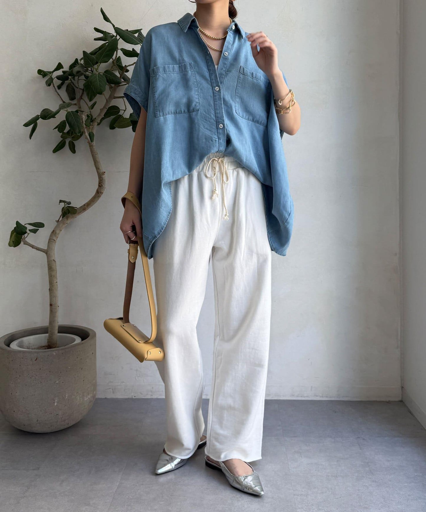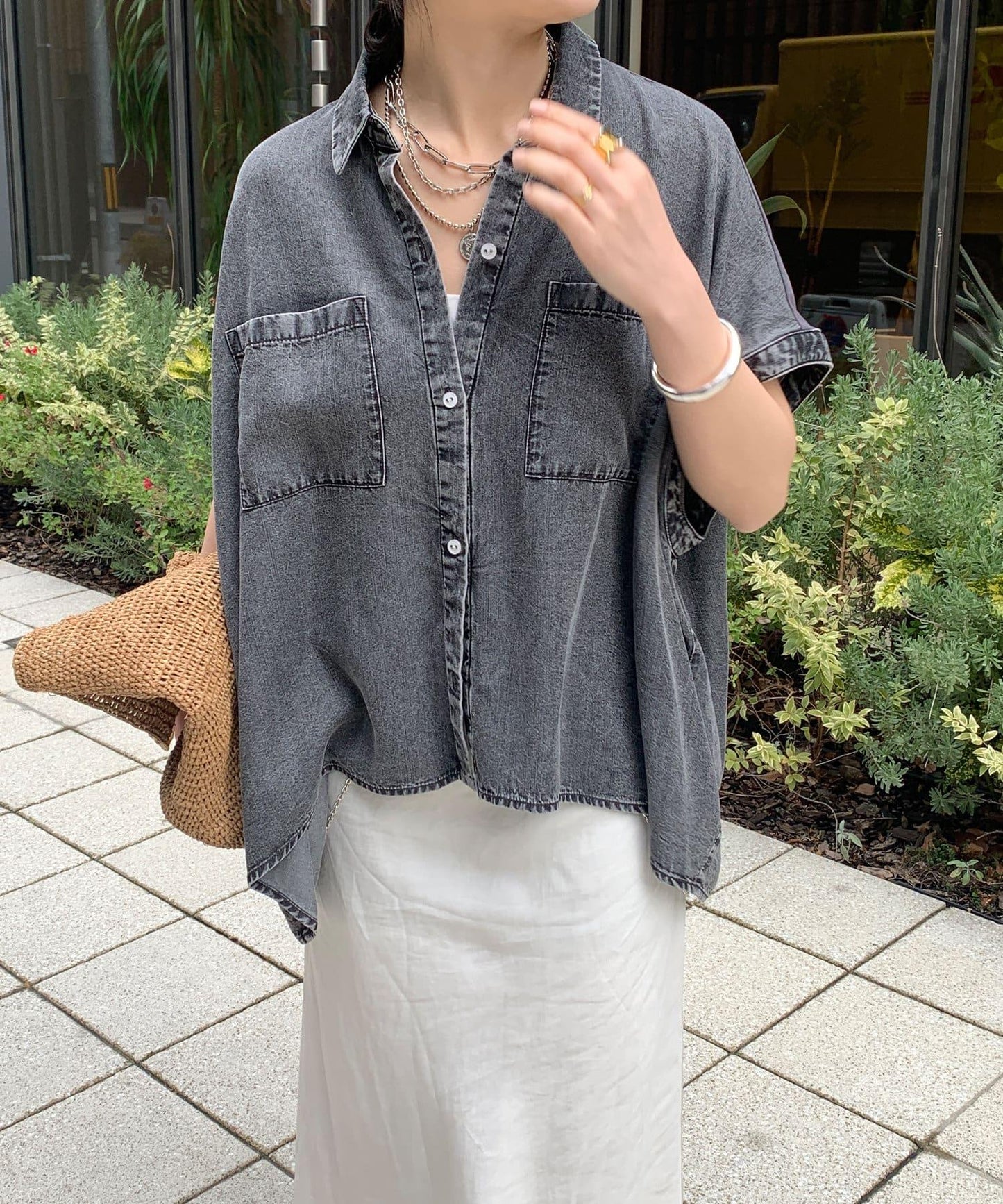 這款襯衫採用柔軟的天絲牛仔布製成,具有豐富而輕鬆的質感。