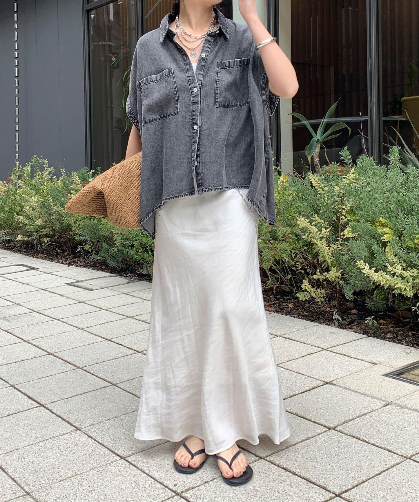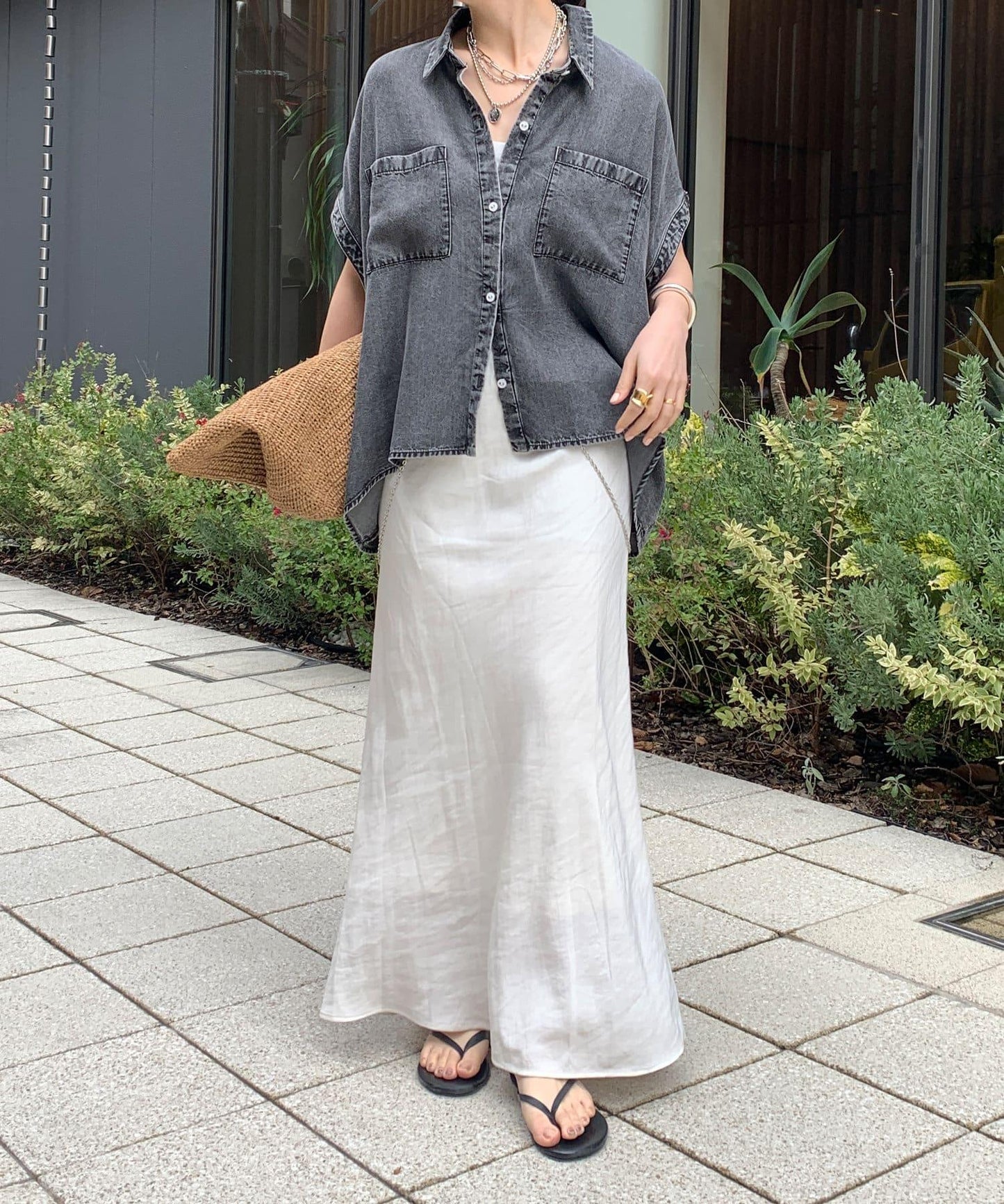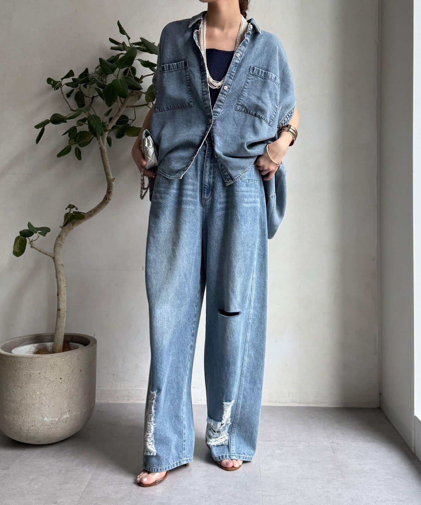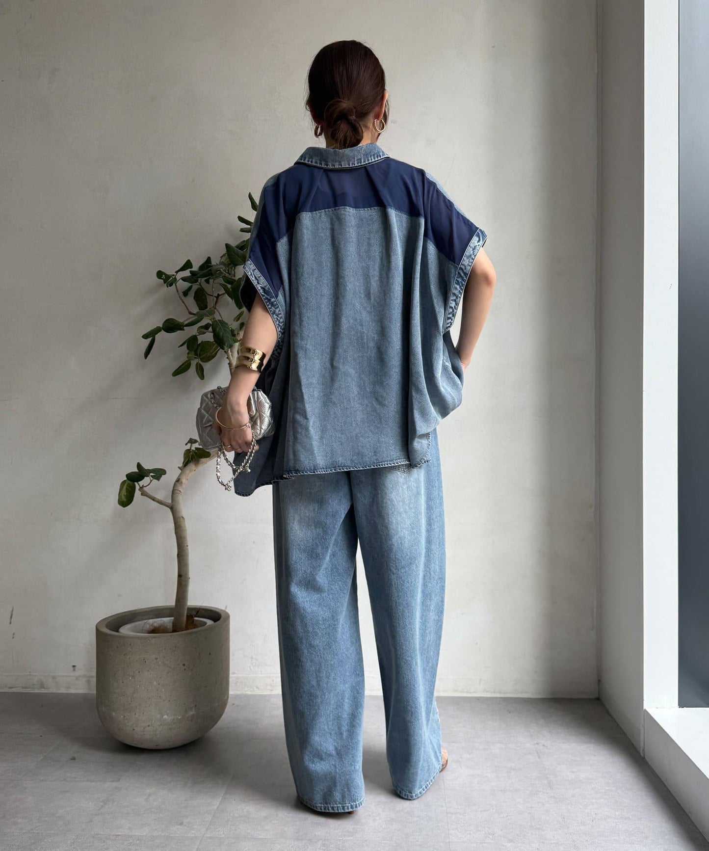 這款襯衫採用柔軟的天絲牛仔布製成,具有豐富而輕鬆的質感。