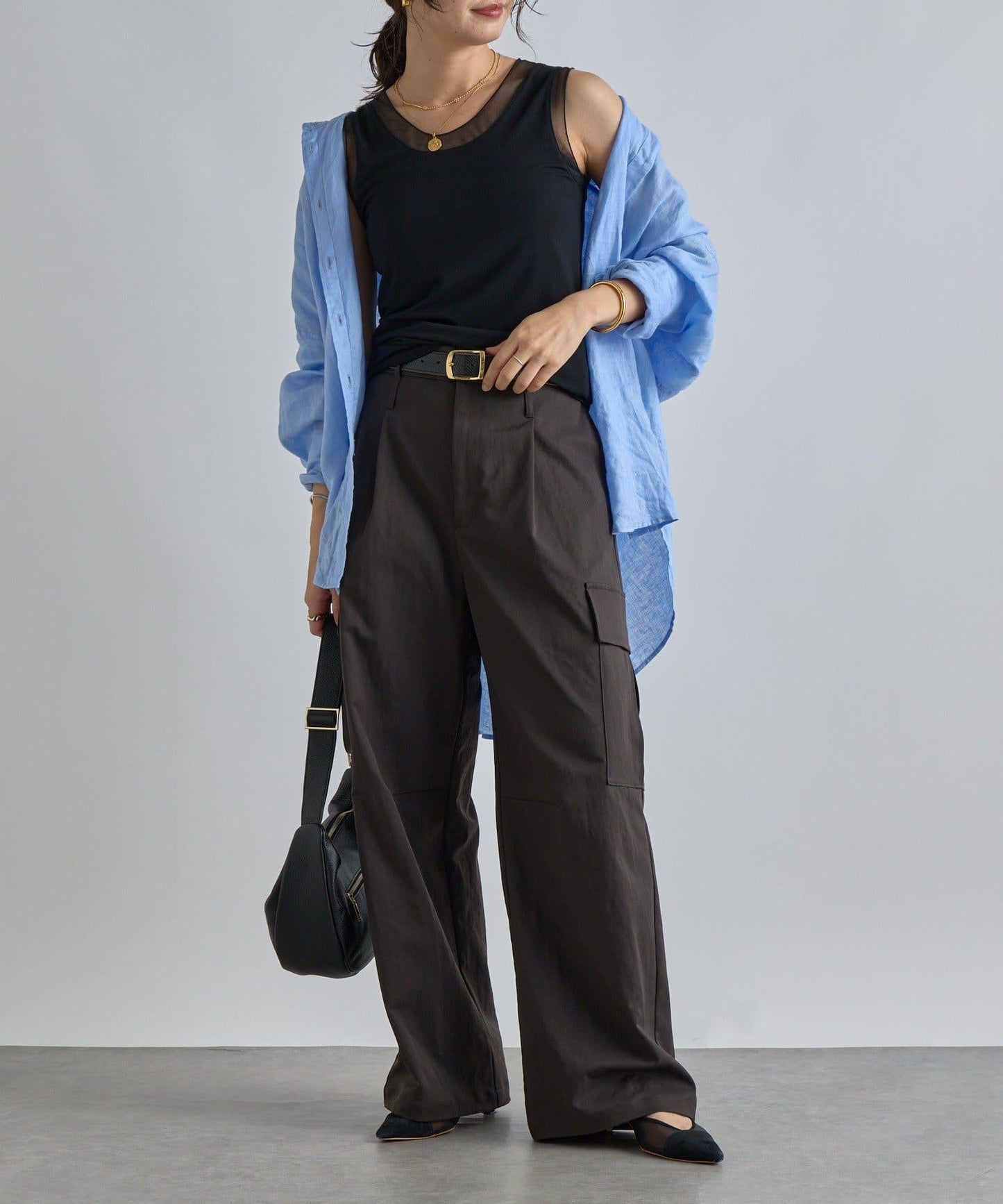 這款長褲從膝蓋以下到下襬都有一個柔和的弧度,給人一種模式化的印象。