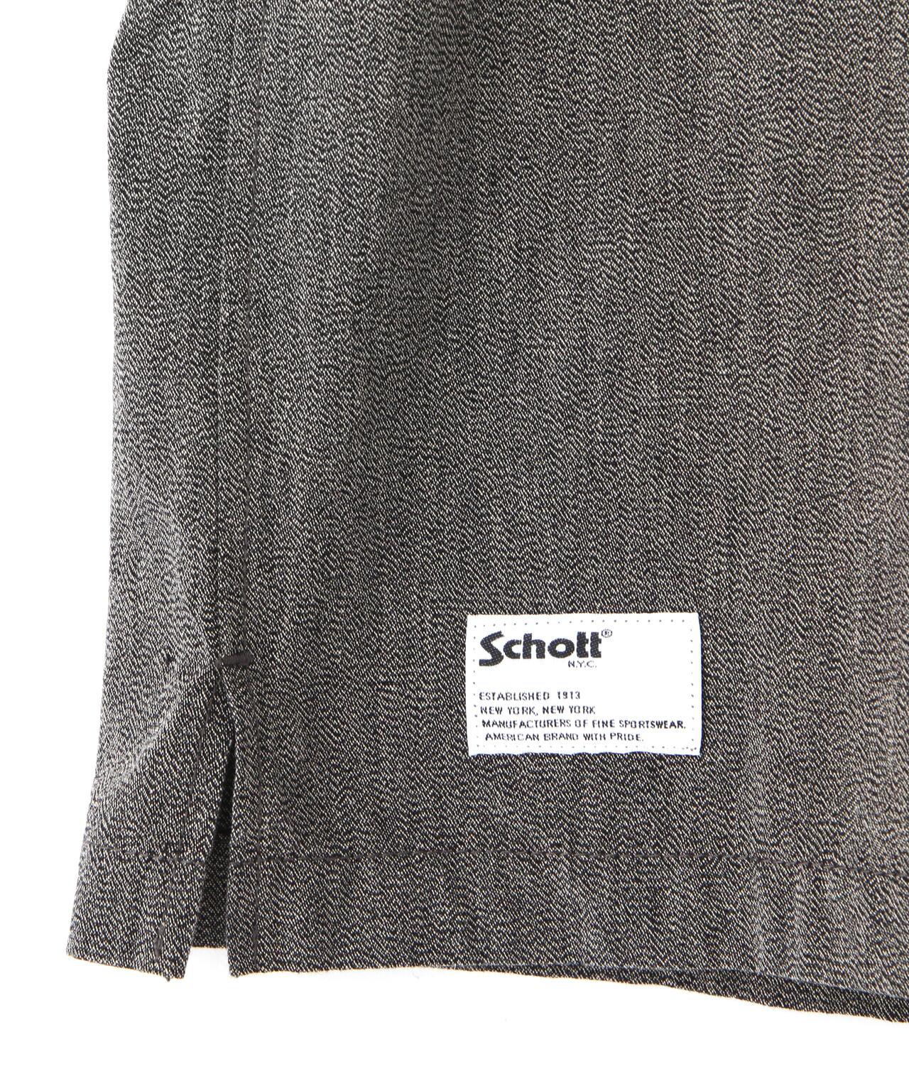 20 世紀 50 年代,美國工作服使用的棉質隱蔽材料。它是一種平紋織物,經紗中捻有彩色和白色紗線。當時的目的是在布料中顯示出細微的色差,使其在工作中弄髒時不易察覺。無廢料的簡潔開領襯衫 [肖特] 1913 年,歐文-肖特(Irving Schott)和傑克-肖特(Jack Schott)兄弟在紐約創立了肖特公司,該公司是騎手夾克的代名詞。 他們👍初是一家雨衣工廠,1928 年推出了 "Perfecto "系列騎手夾克,這是世界上👍款使用前拉鍊的夾克。 在當時只有紐扣夾克的時代,這是一款革命性的夾克。