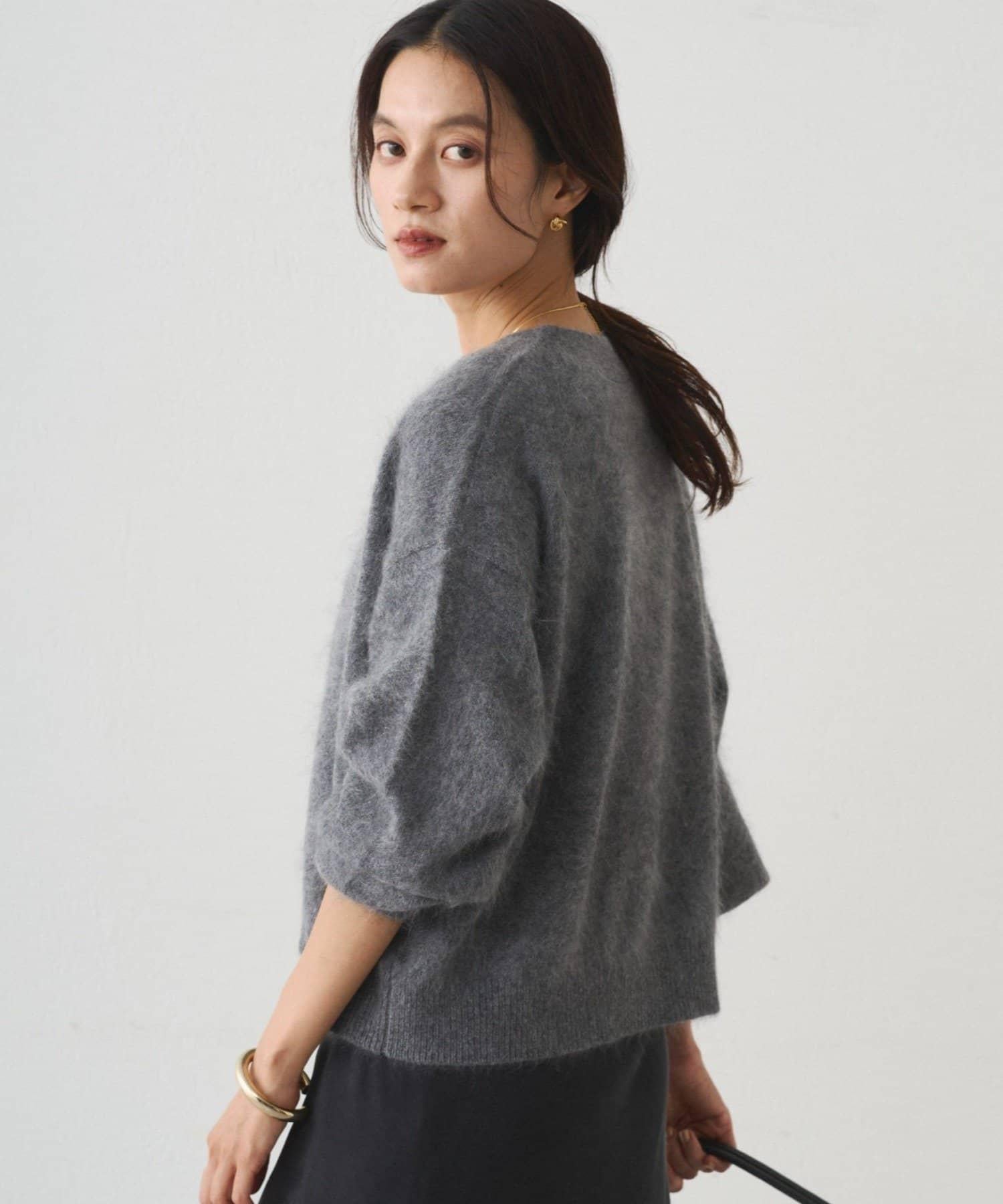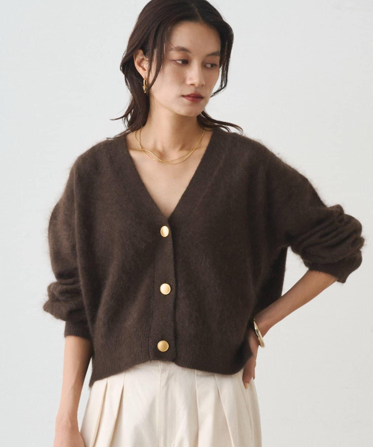 短款開衫,毛茸茸的針織面料,水貂毛處理。