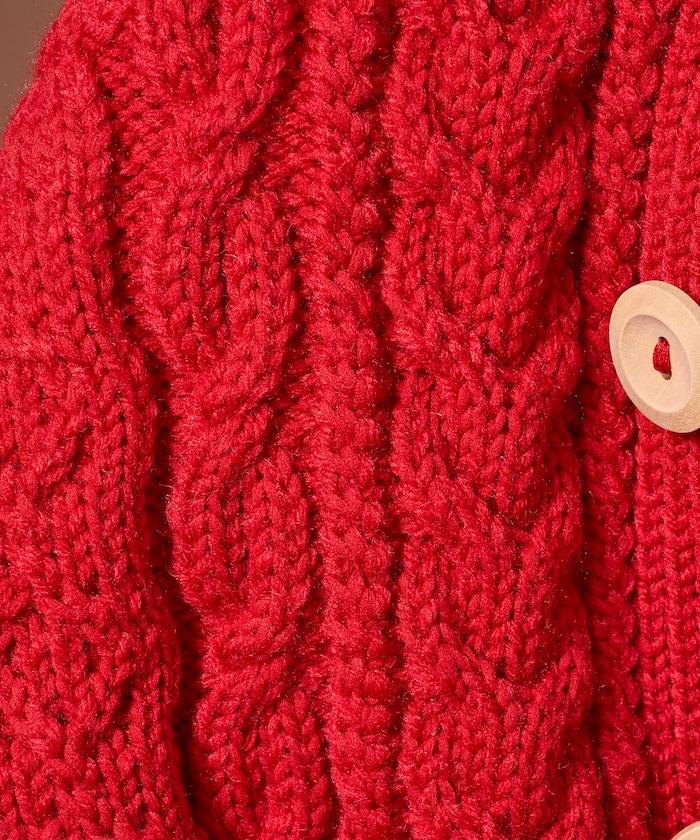 這款針織開衫再現了傳統的針織工藝,又稱阿蘭針織。