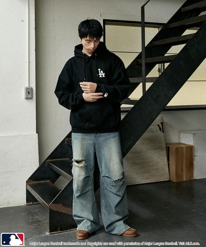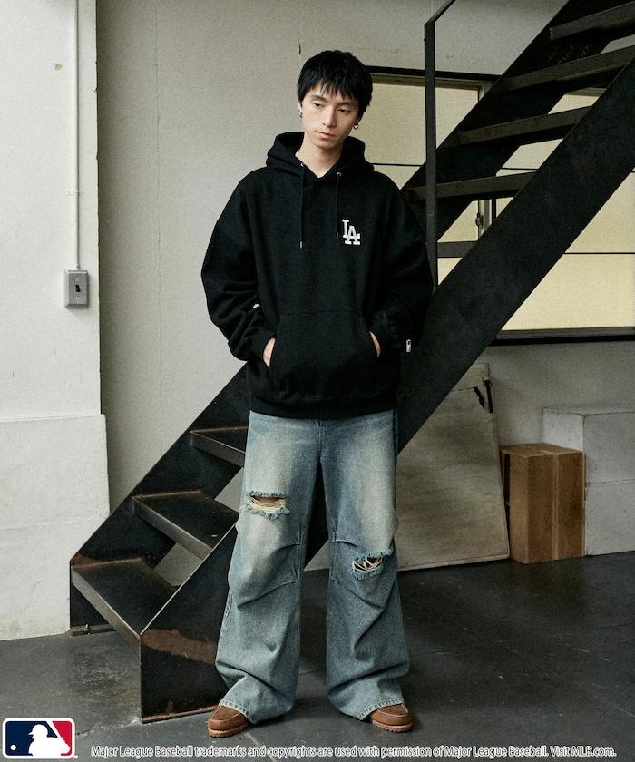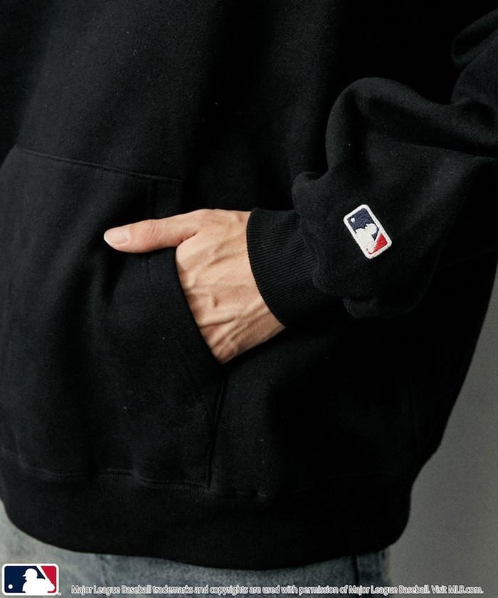 袖口和下襬採用羅紋設計,不會顯得邋遢。左袖上的 MLB 徽標貼布十分隨意。