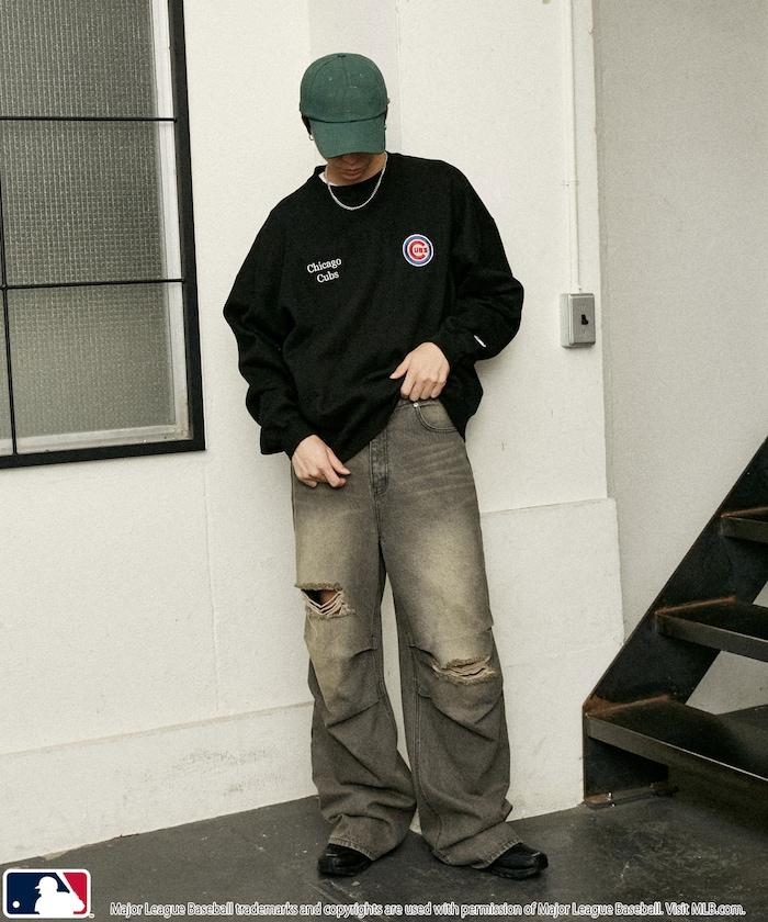 袖口和下襬採用羅紋設計,不會顯得邋遢。MLB 徽標貼布隨意地貼在左袖上。