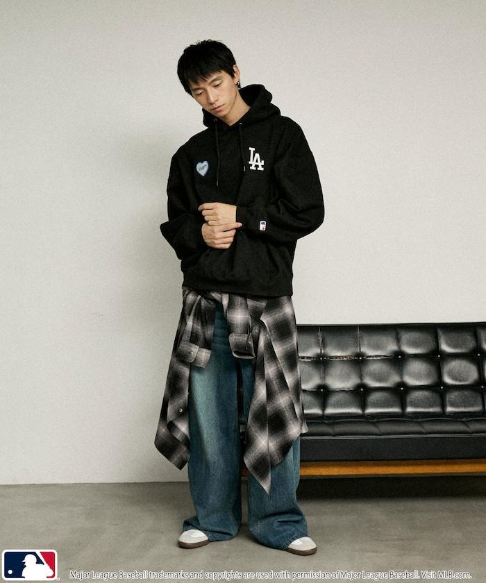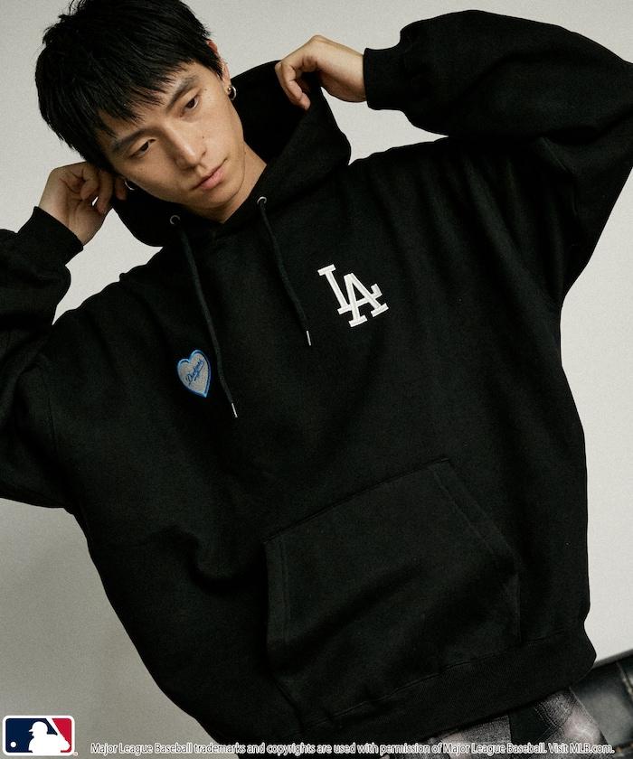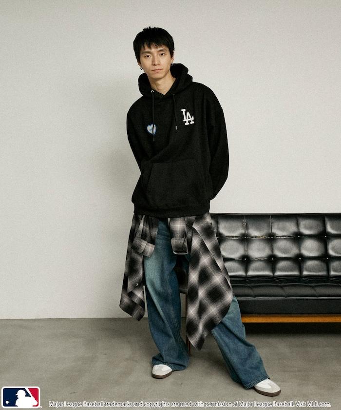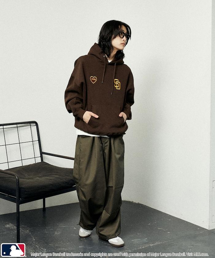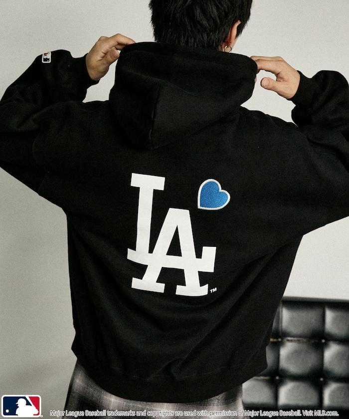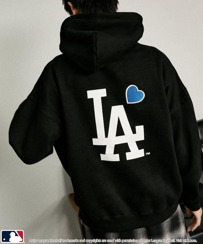這款帶有可愛心形徽標的限量版連帽衫是專為 MLB 訂製的。