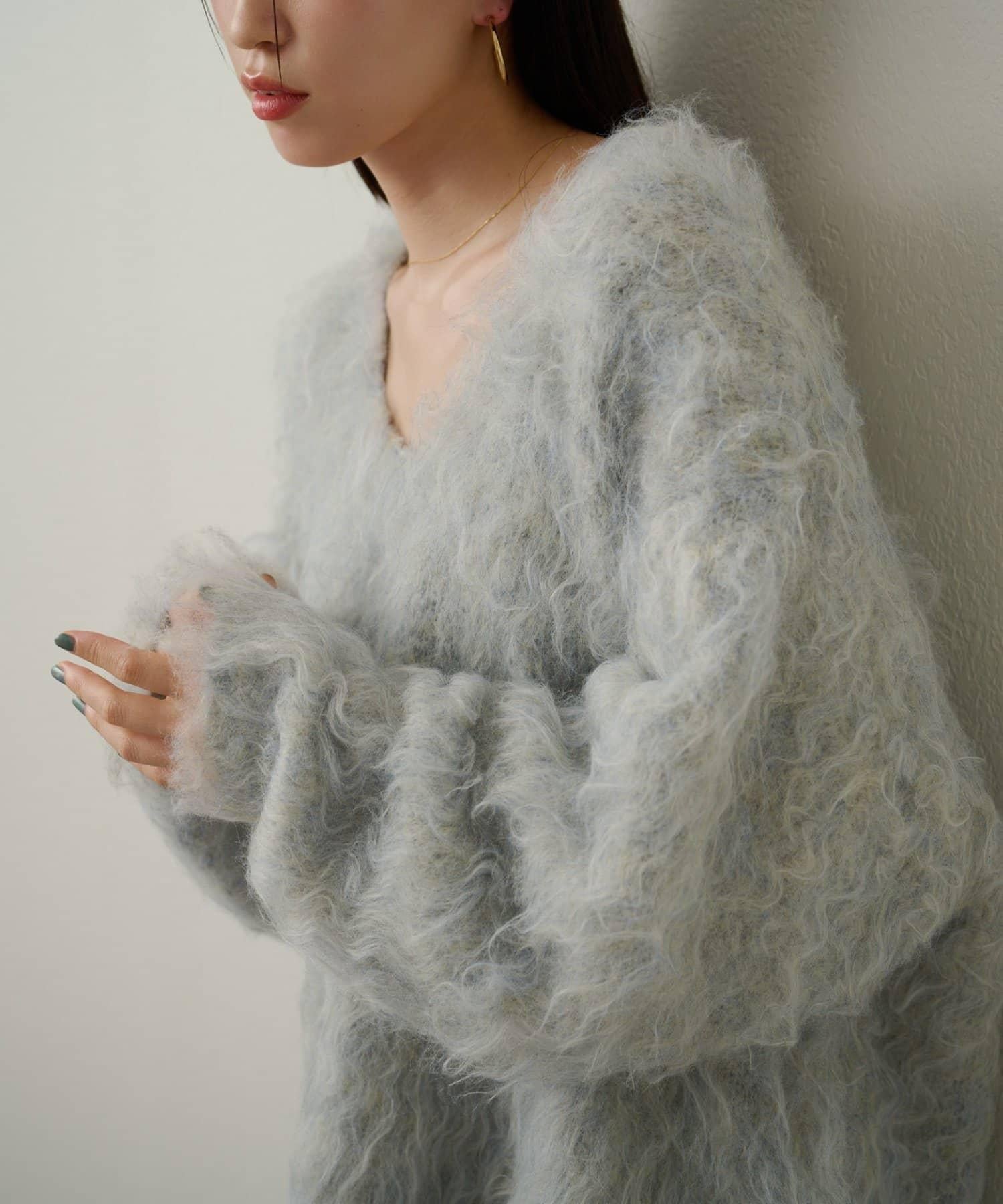 凸起的 V 形針織套頭衫,面料蓬鬆宜人。