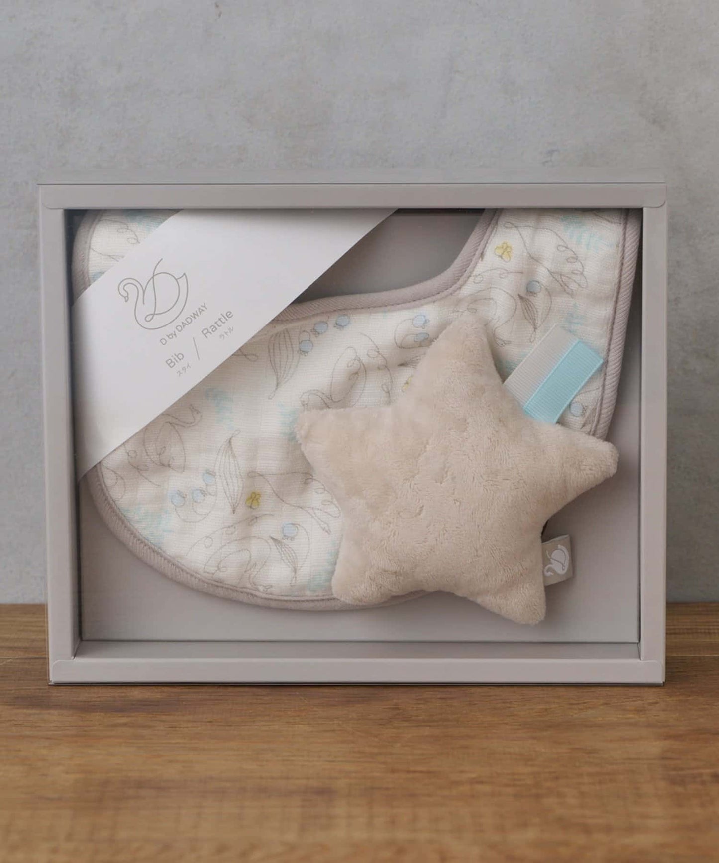 一套裝在盒子裡的嬰兒胸針和撥浪鼓,是慶祝新生兒誕生的👍選擇。