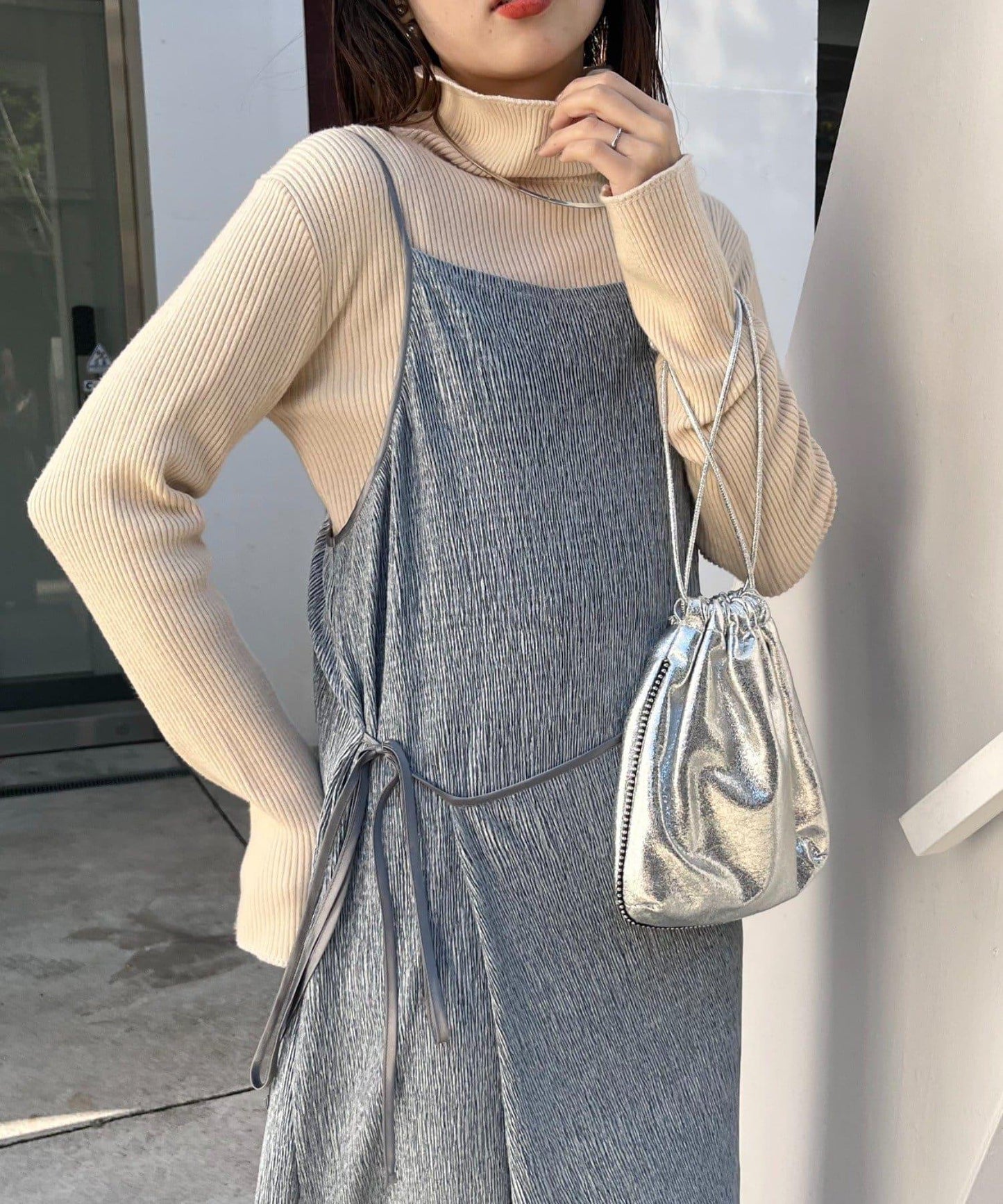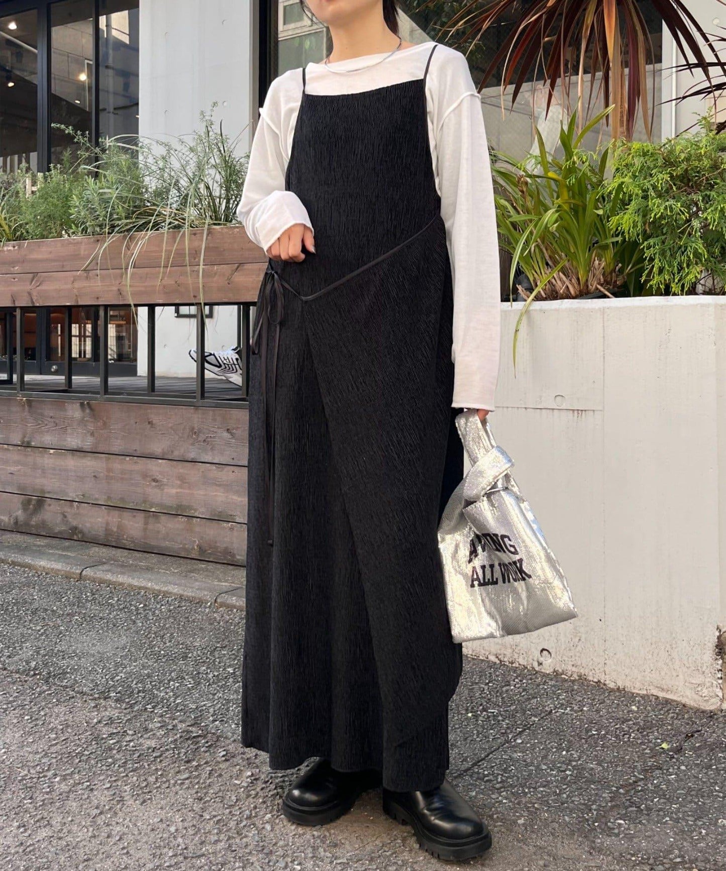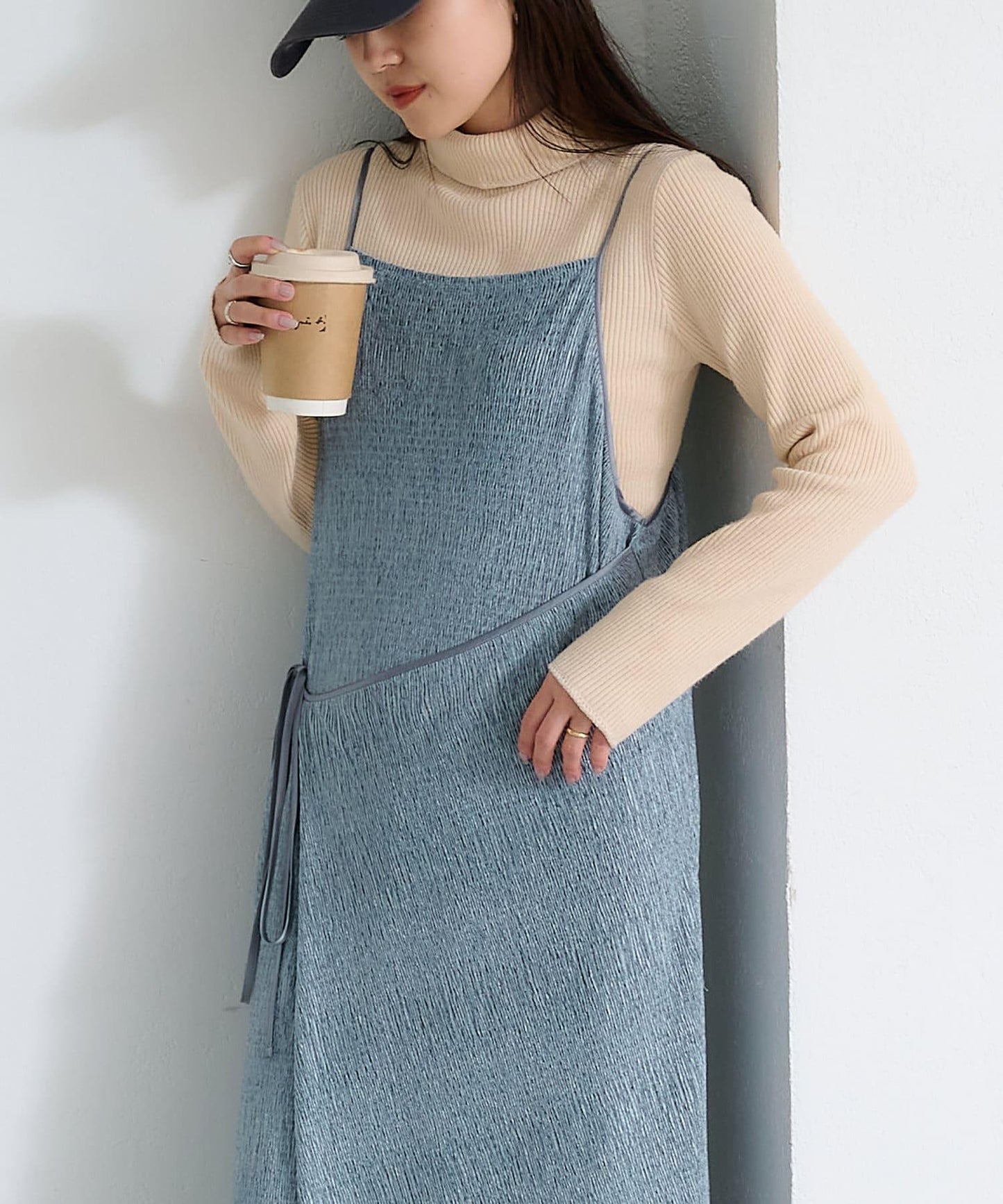 單件式連衣裙,採用時髦的裹身設計,單穿也很好看。