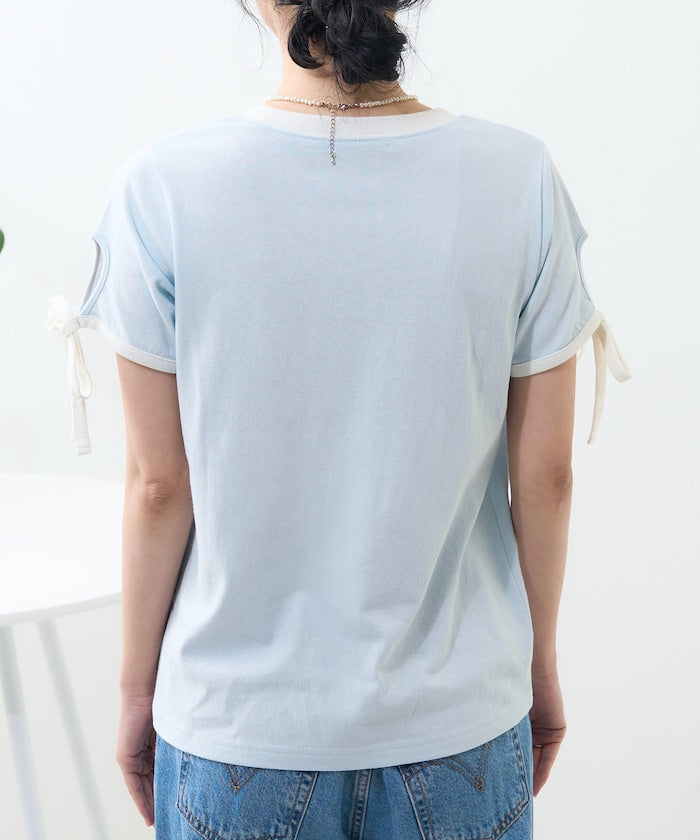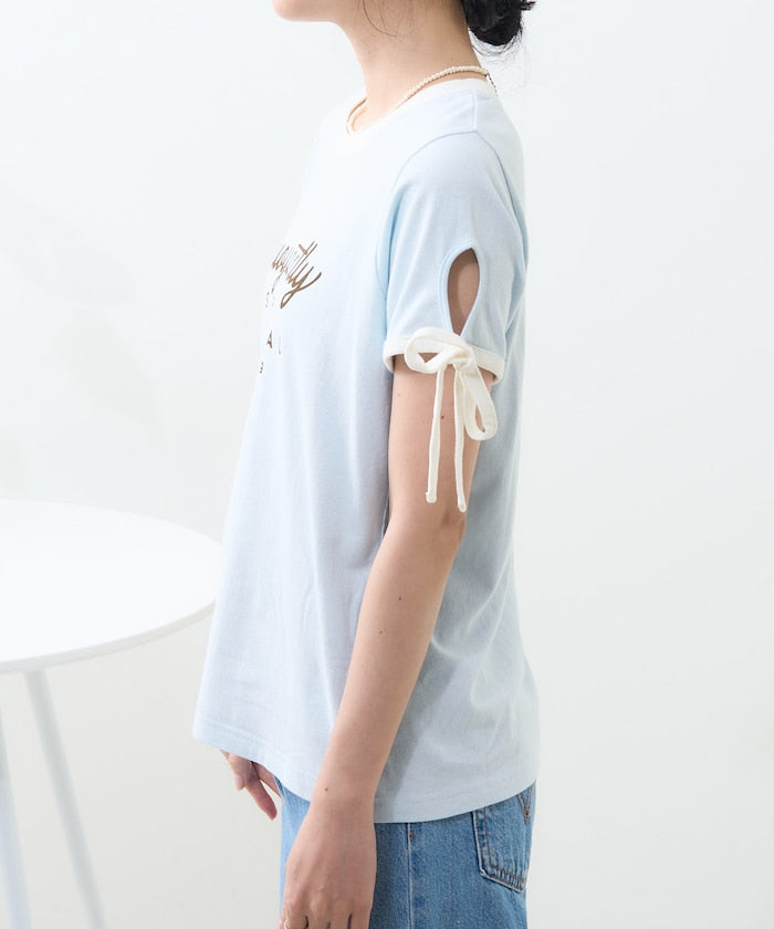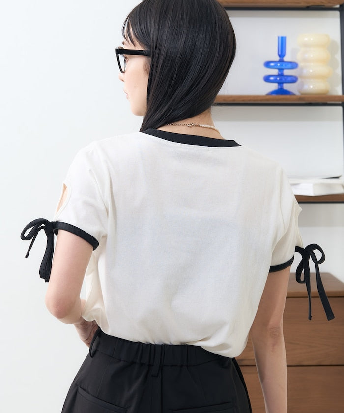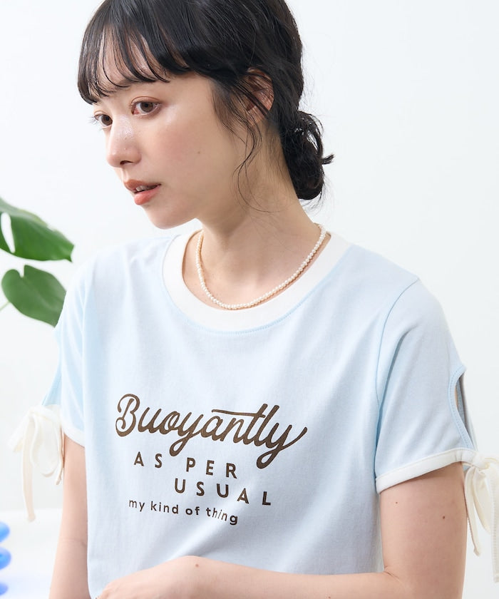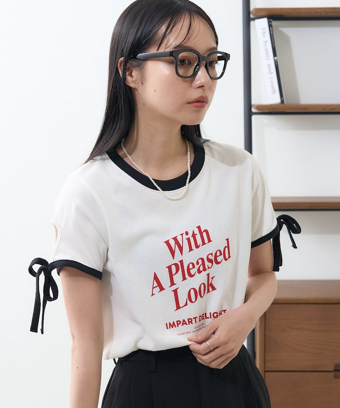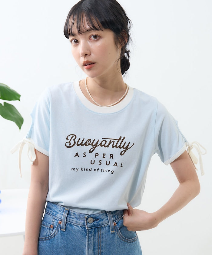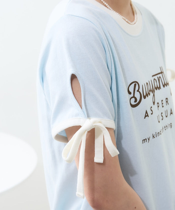 帶有絲帶設計的醒目徽標環形 T 恤。