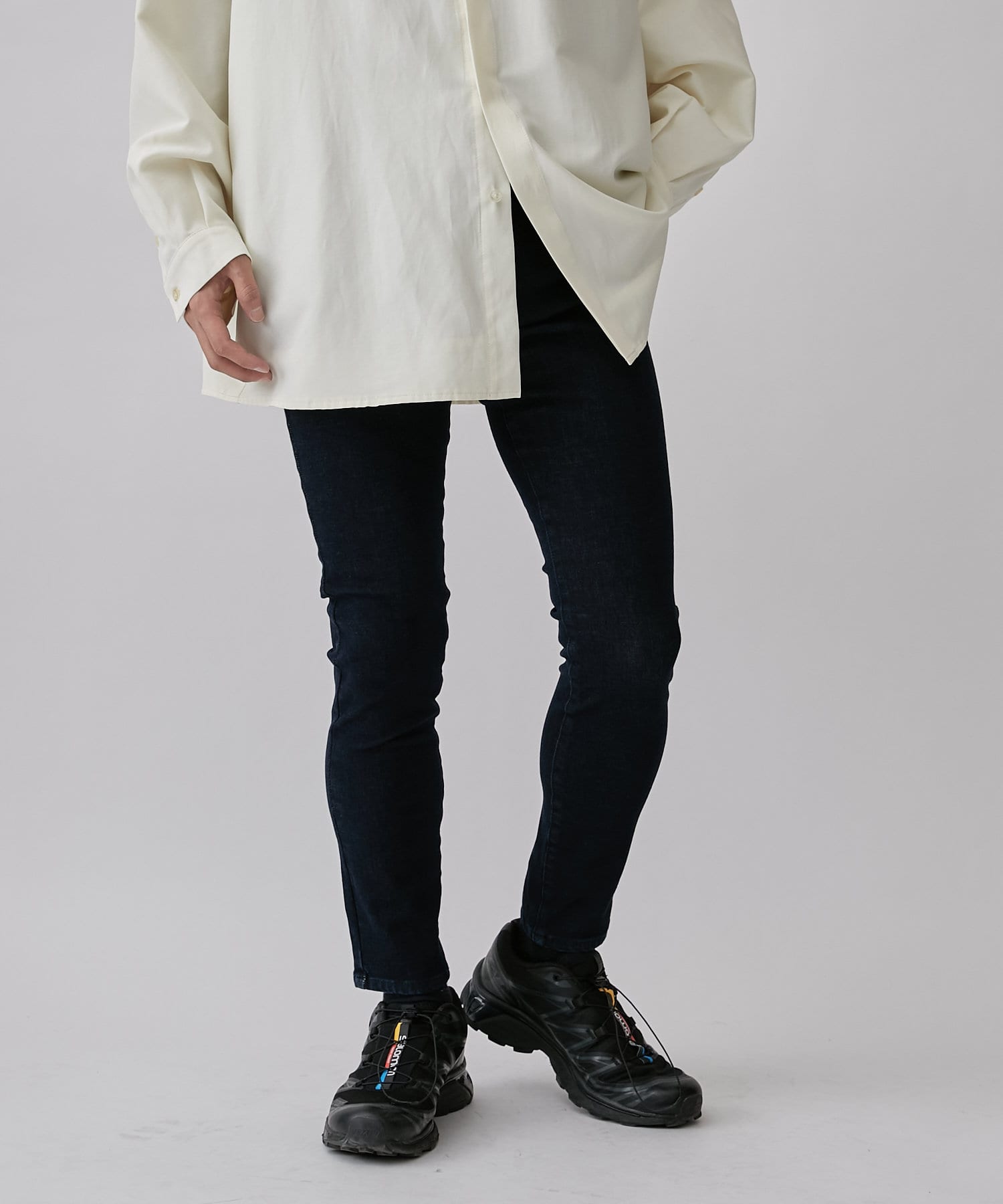 利用彈力的優勢,整體輪廓比傳統的緊身牛仔褲更纖細。