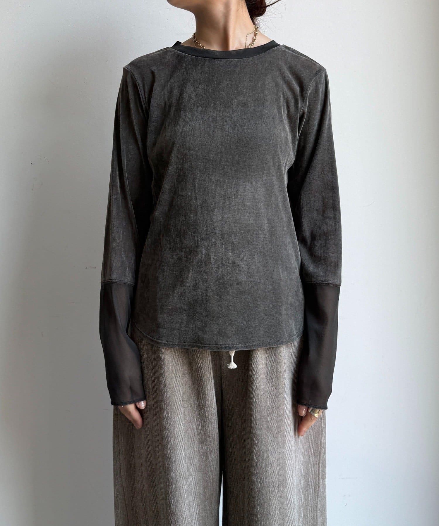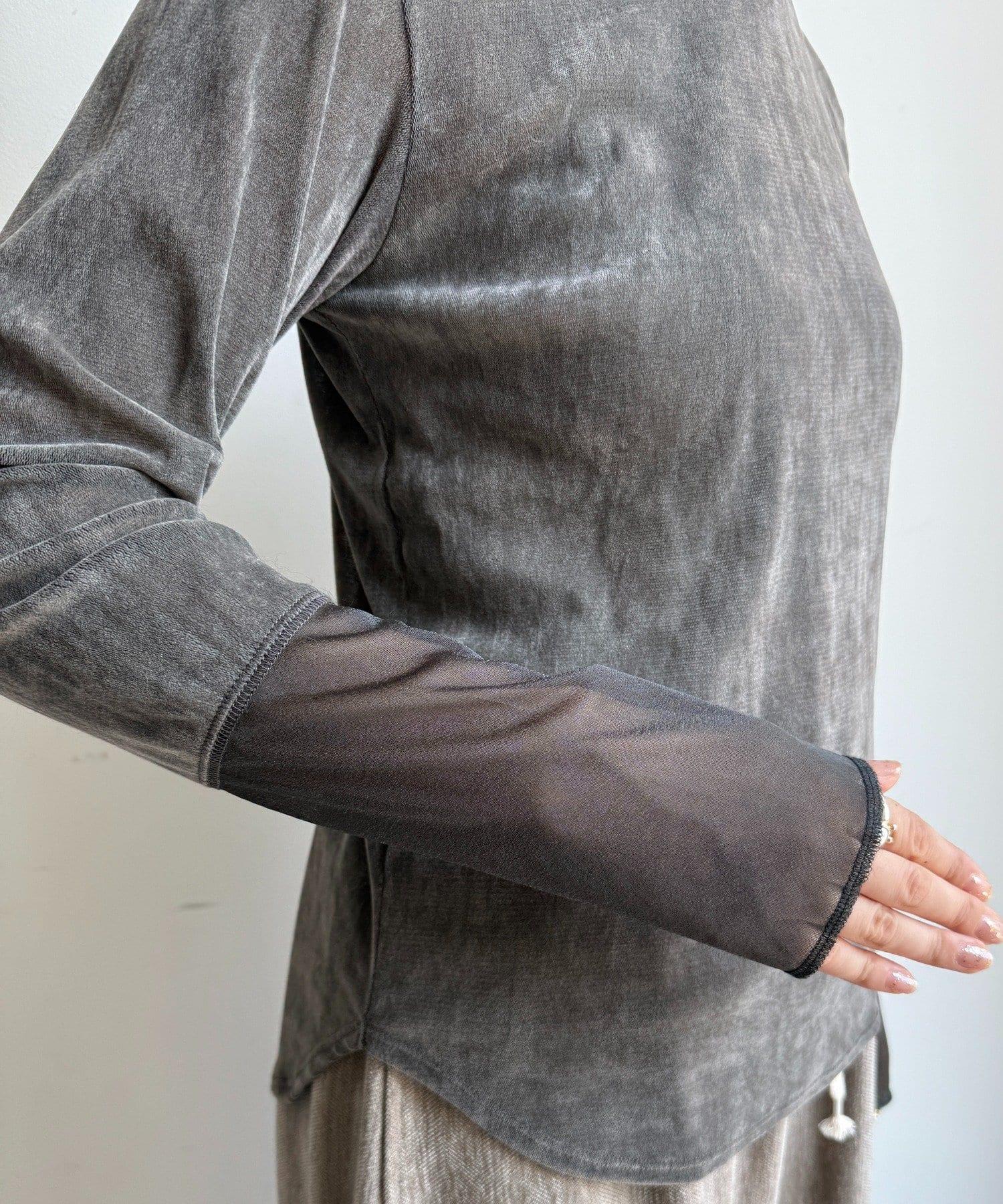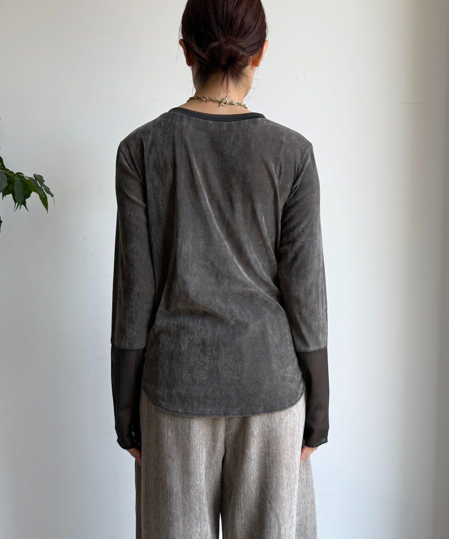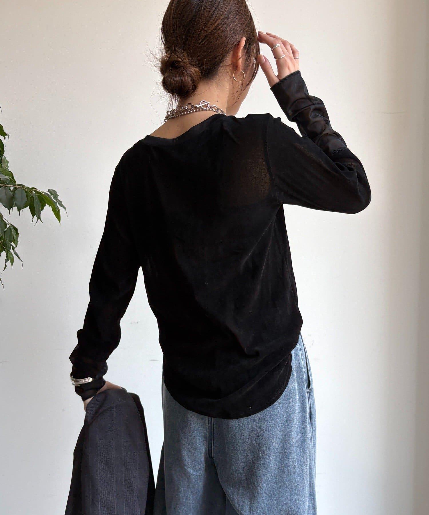 網紗植絨拼接透視T恤