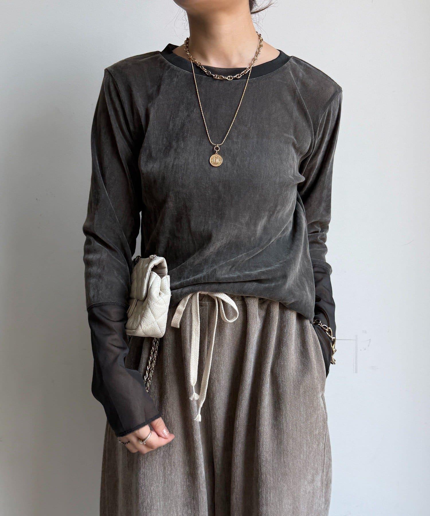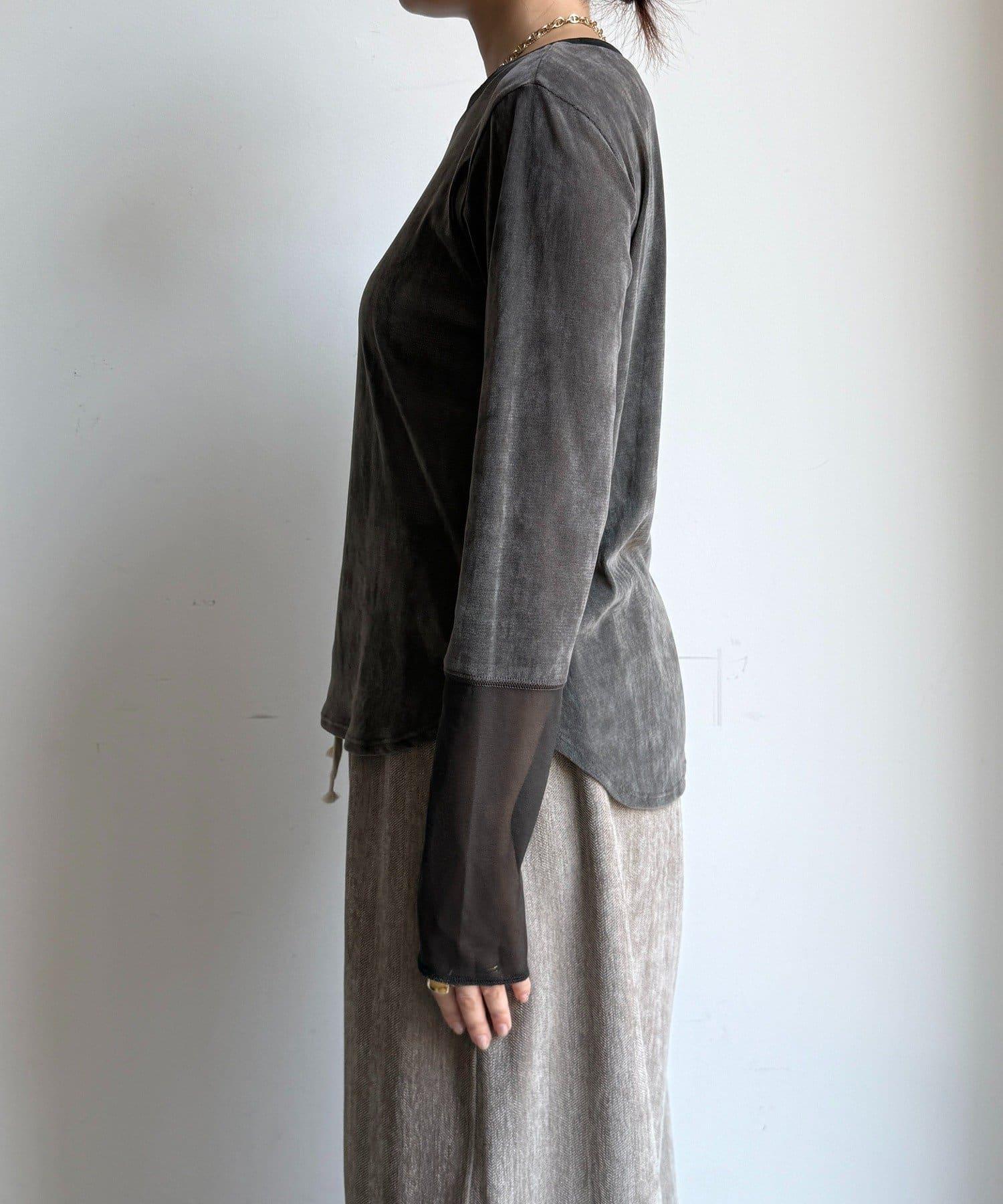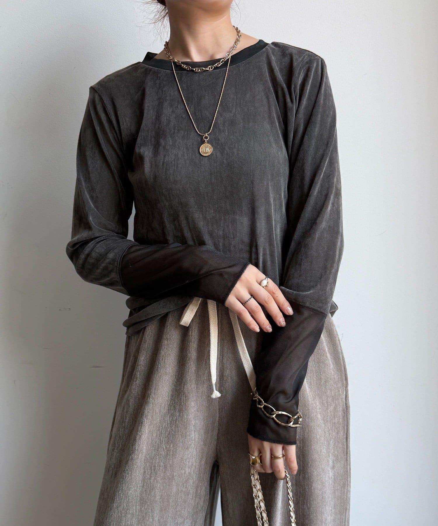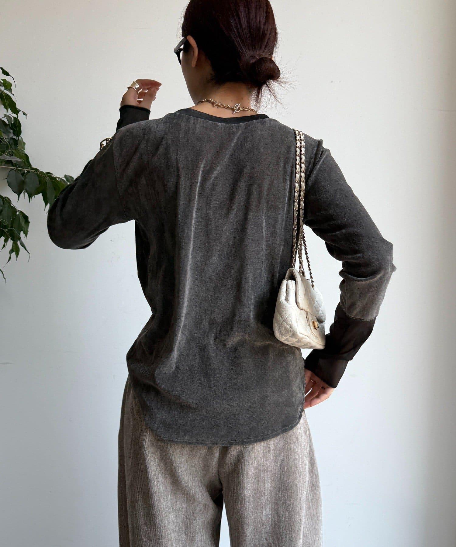 網紗植絨拼接透視T恤