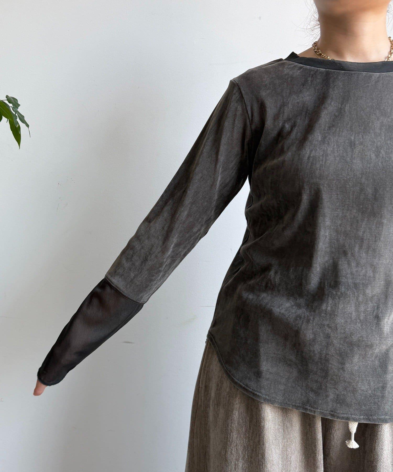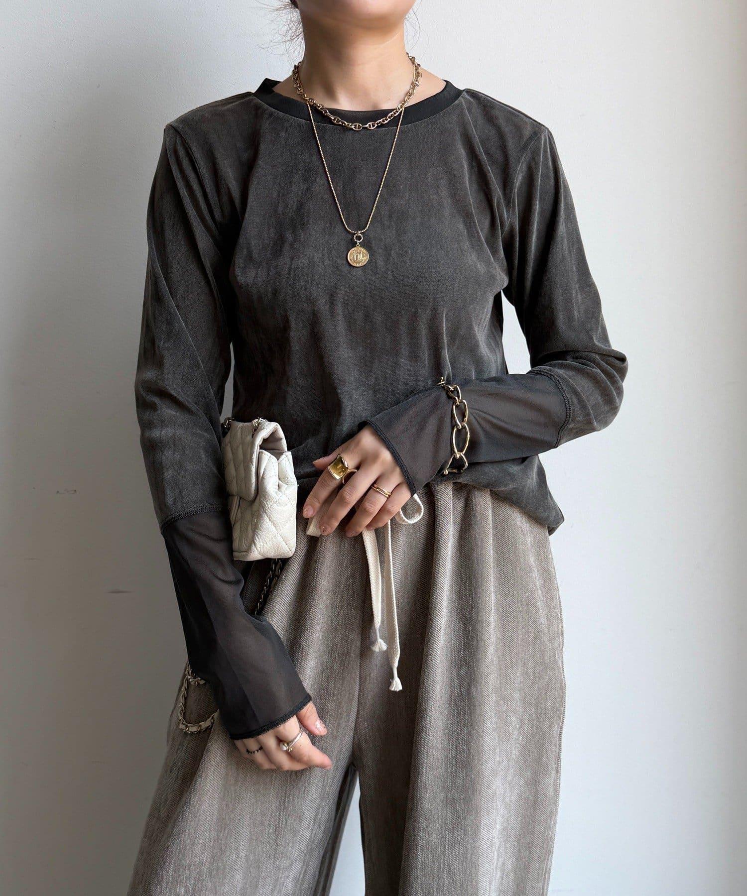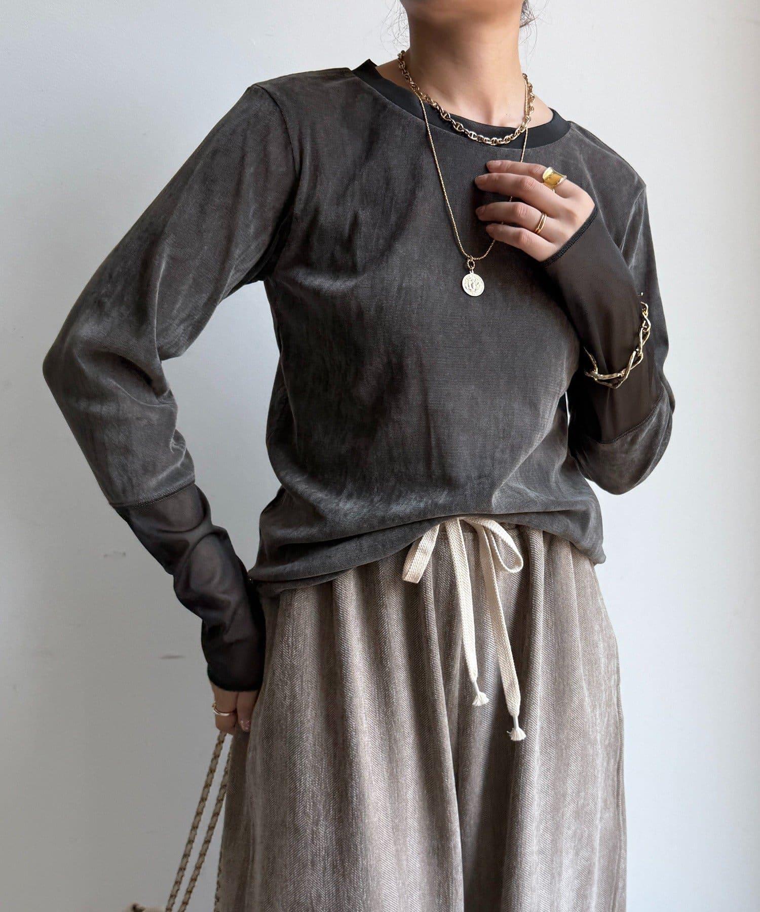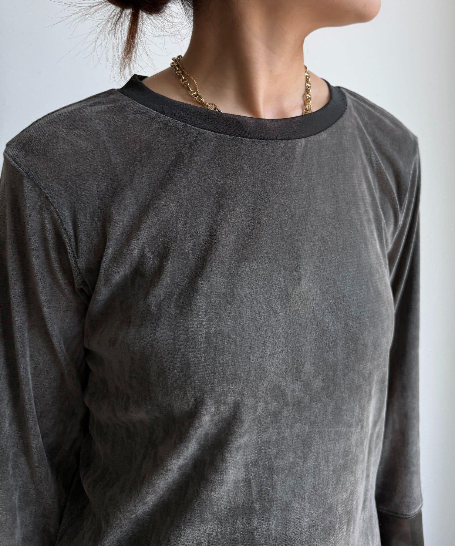 網紗植絨拼接透視T恤