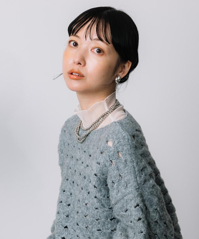 在襯衫和休閒褲的搭配中加入蓬鬆的針織衫,增添女人味。
