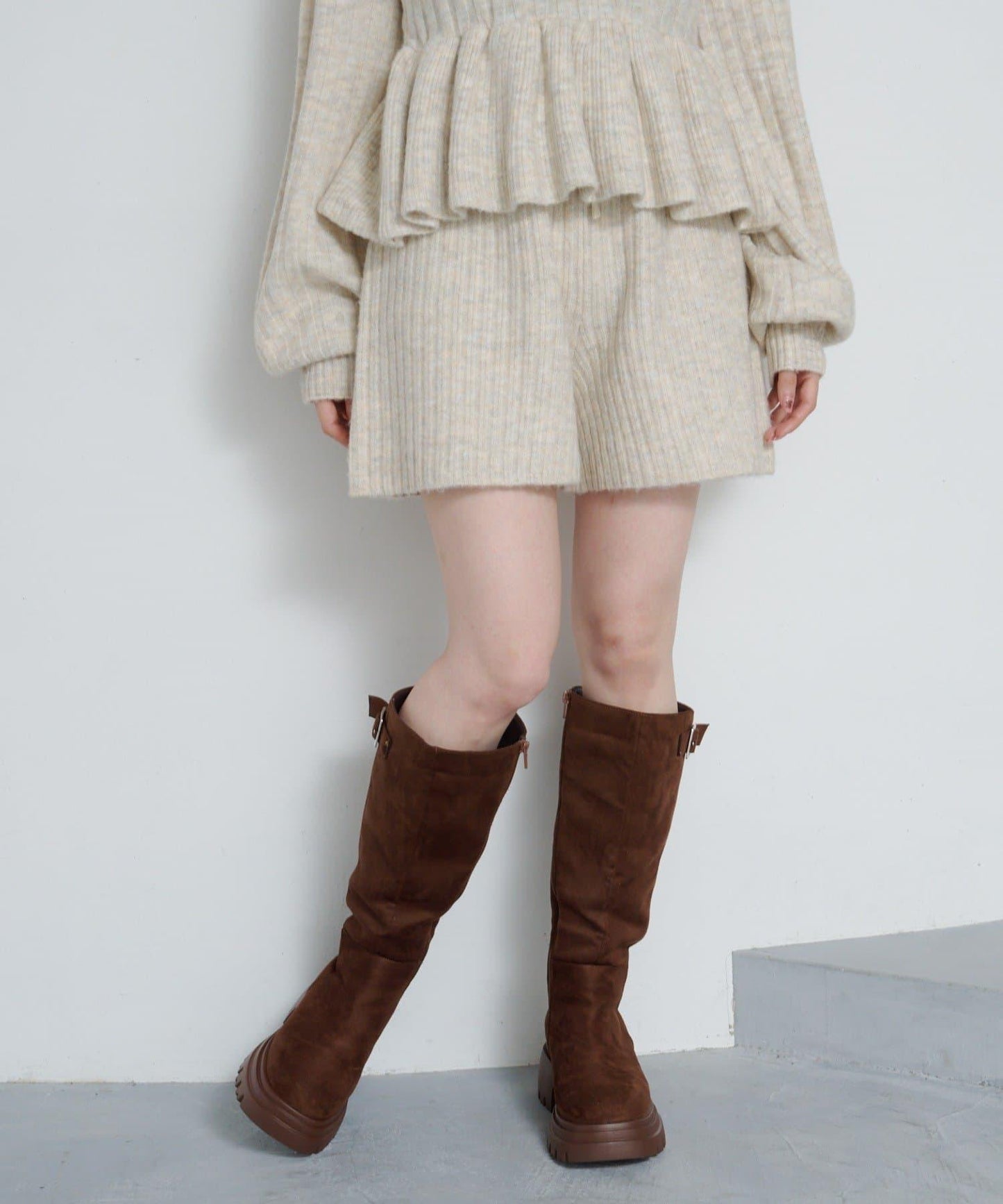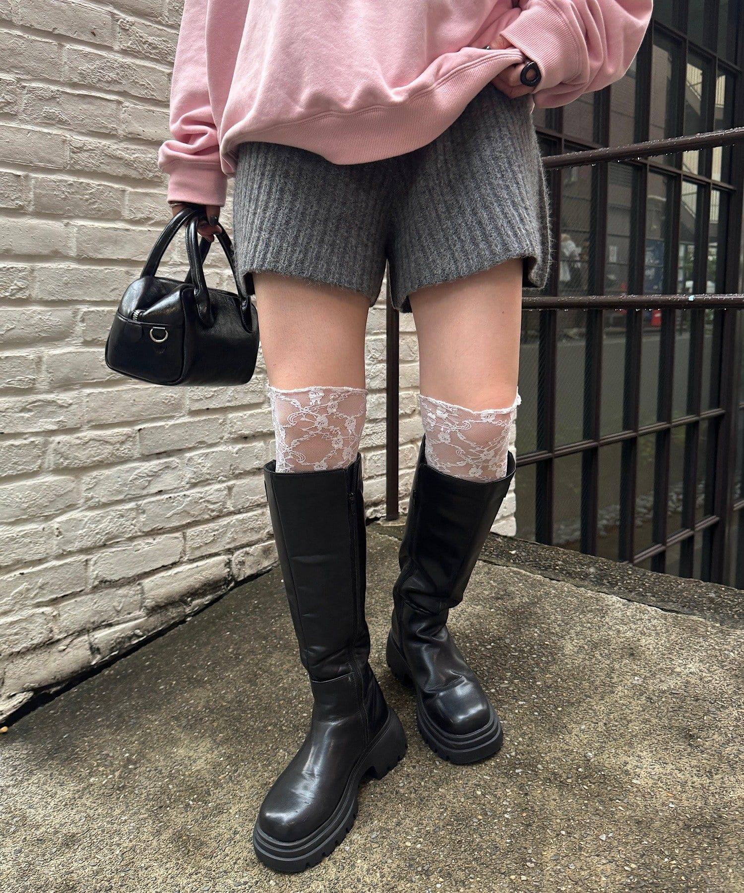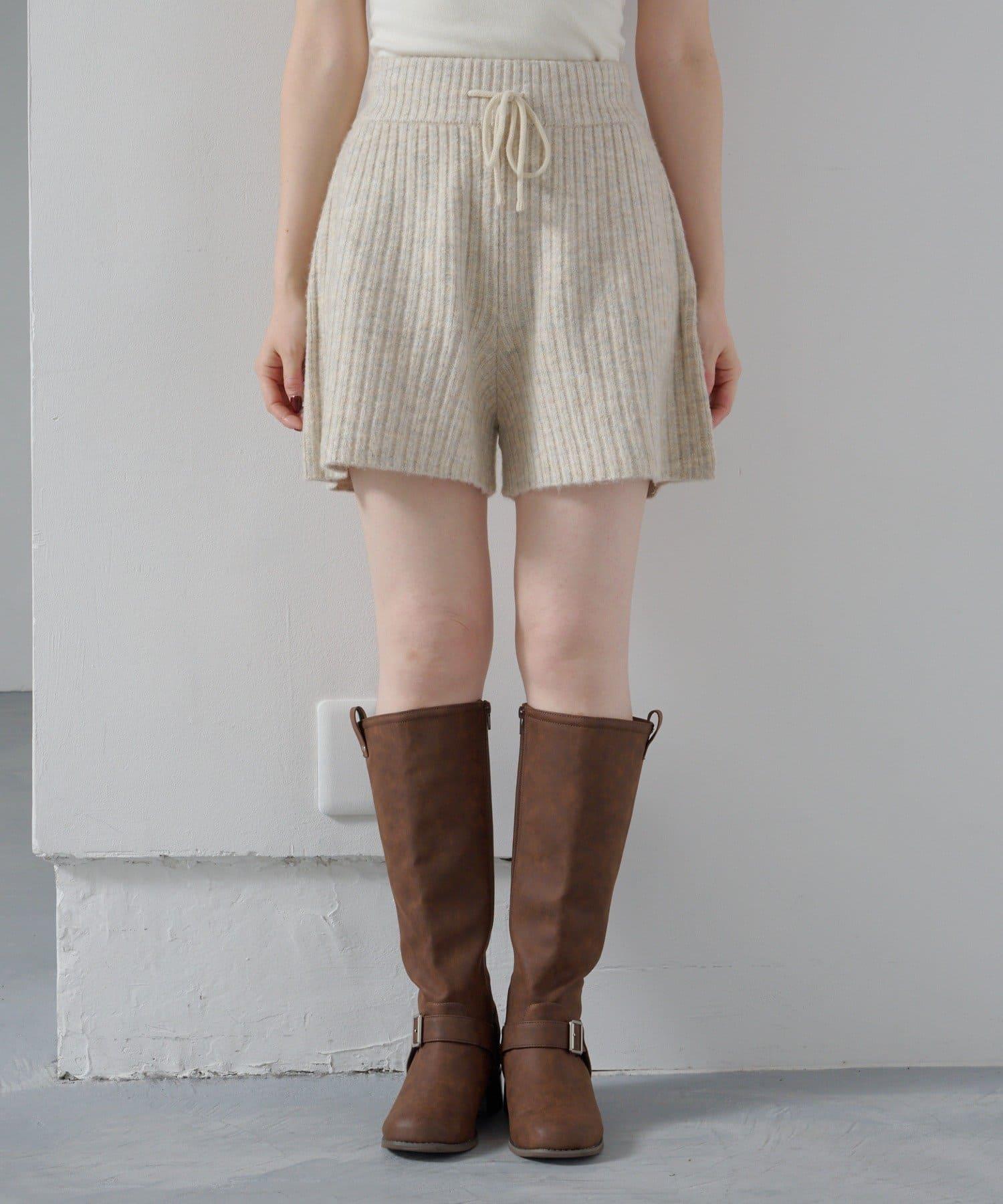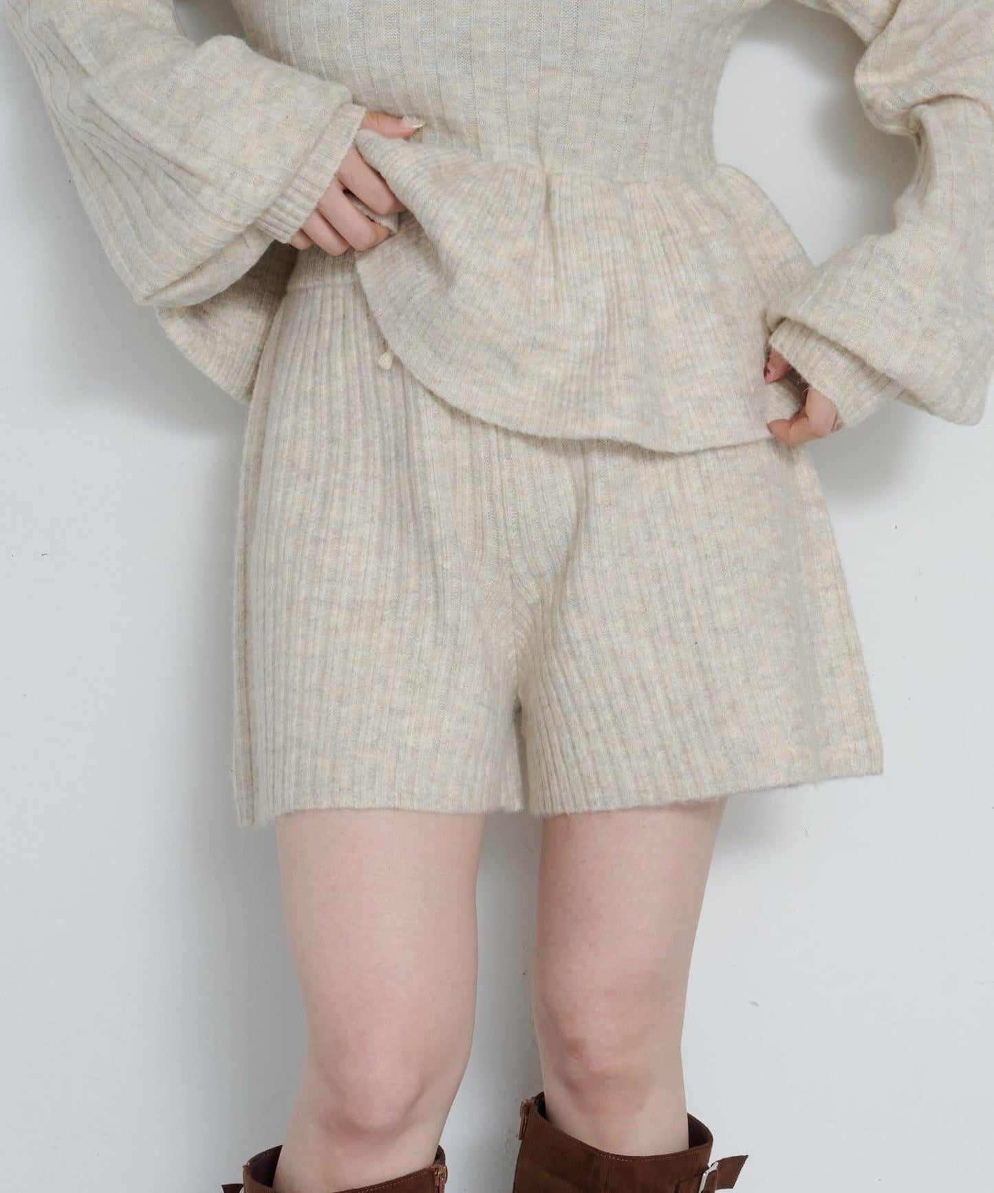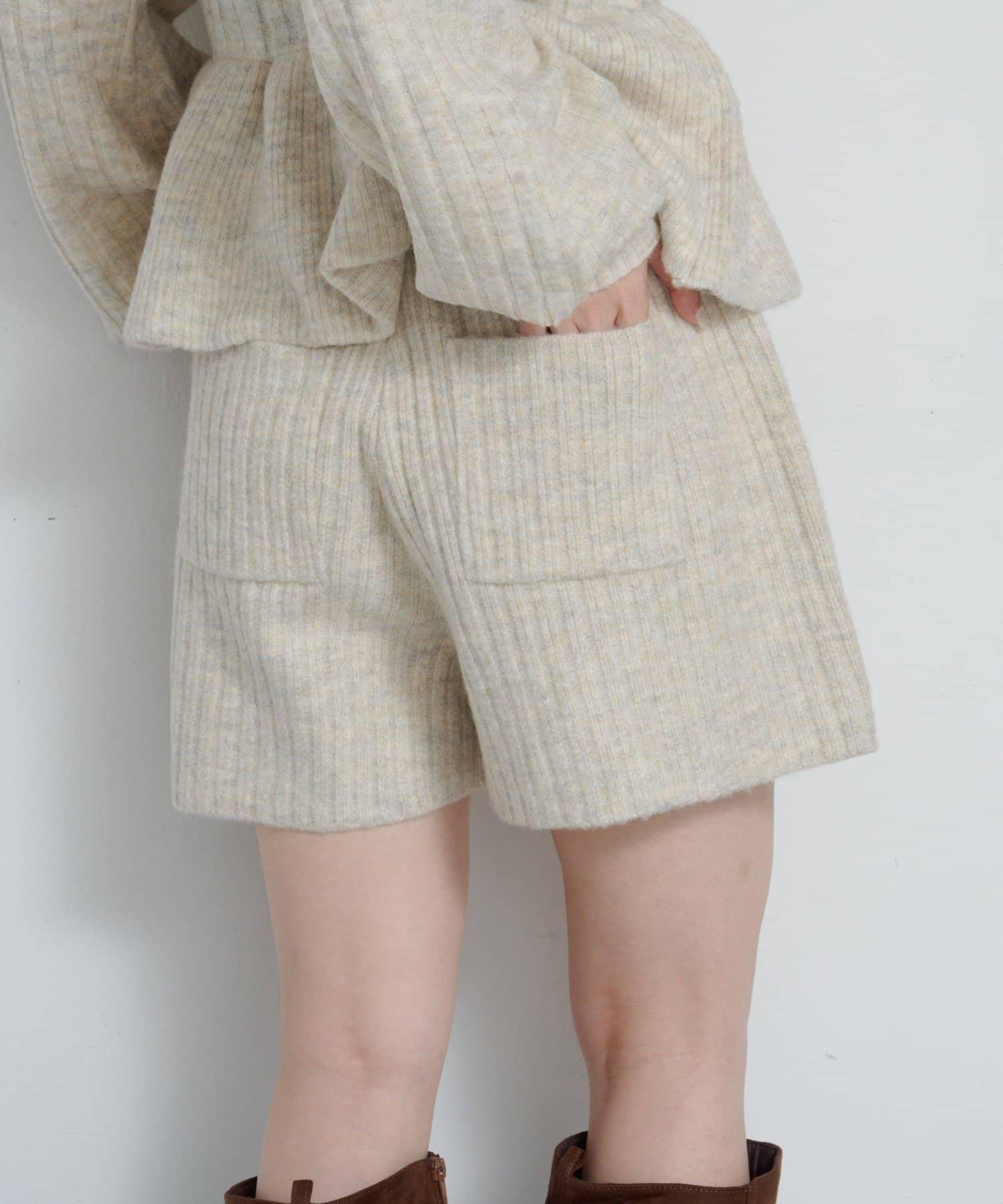 羅紋針織短褲,質地柔軟蓬鬆。