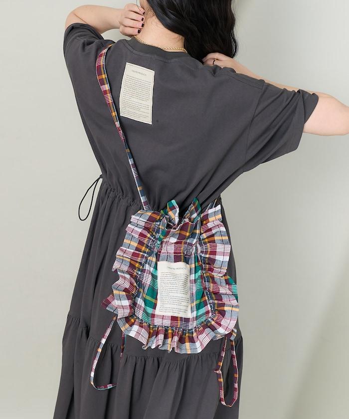 聯名 馬德拉斯格紋 荷葉邊肩揹包